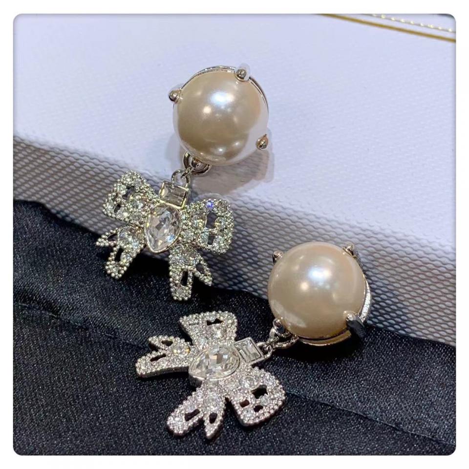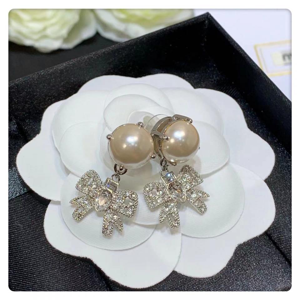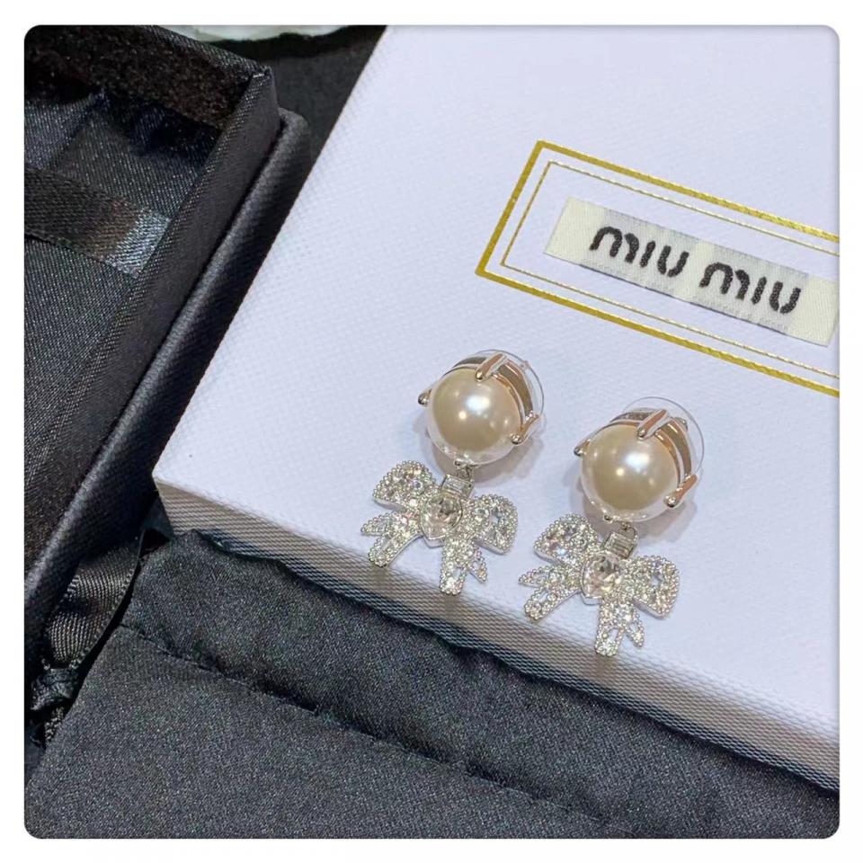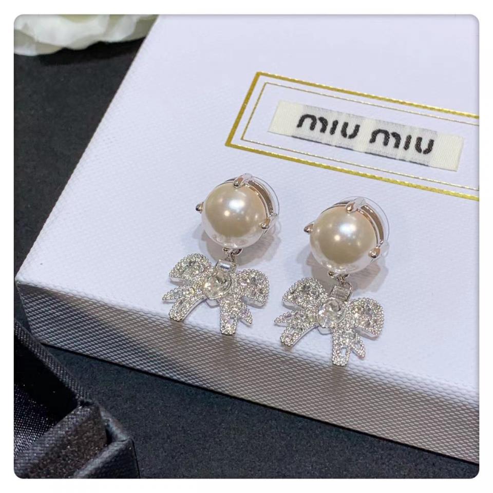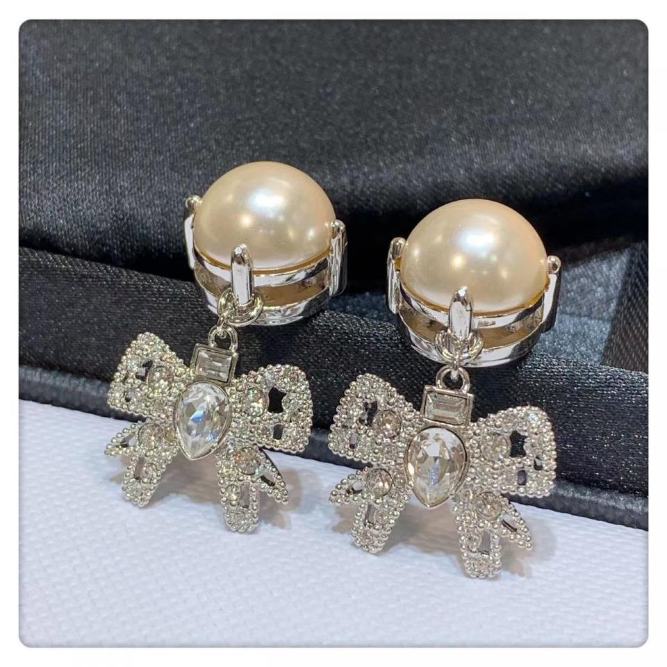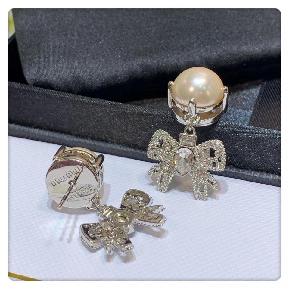 2021秋冬 Miu家珍珠蝴蝶結滿鑽耳環