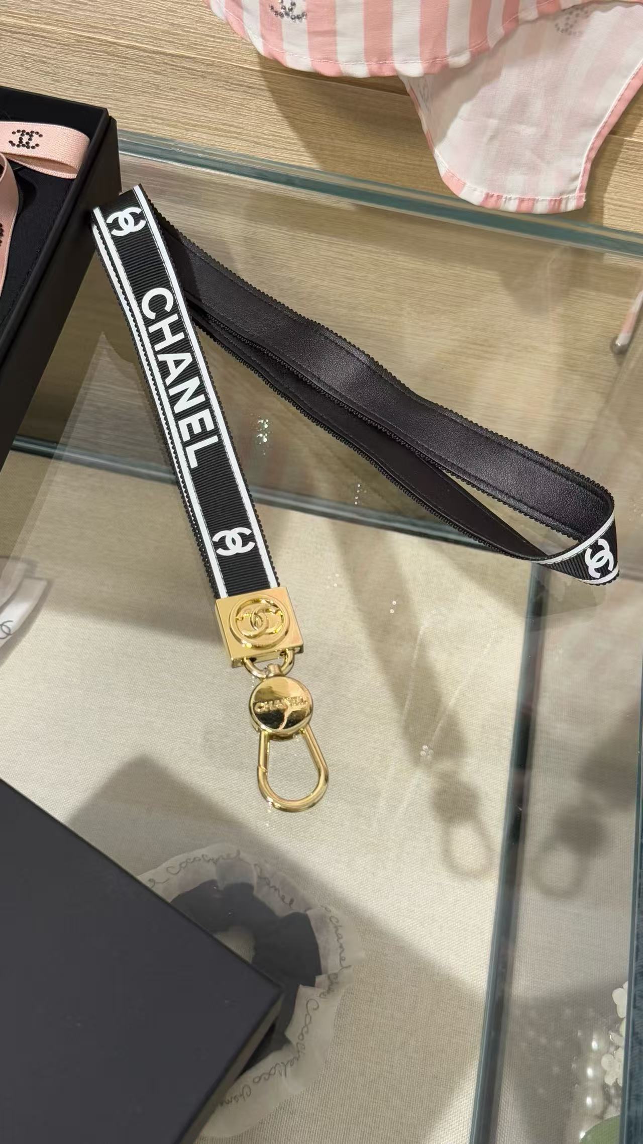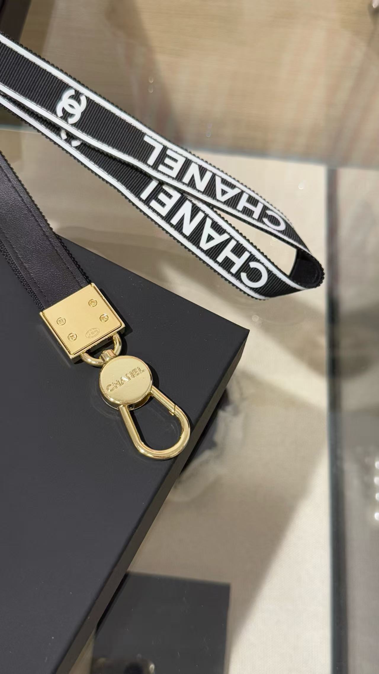2025早秋 C家 黑金織帶字母手機掛繩