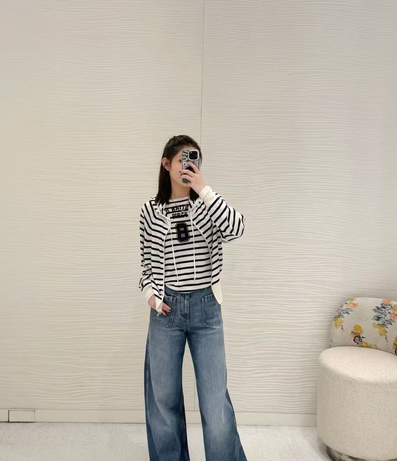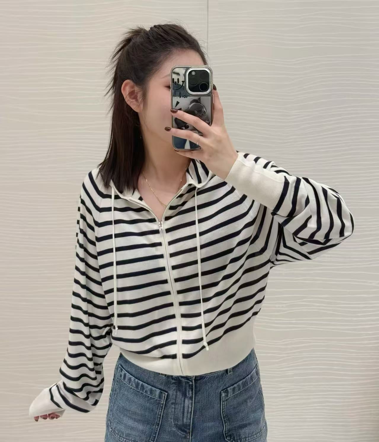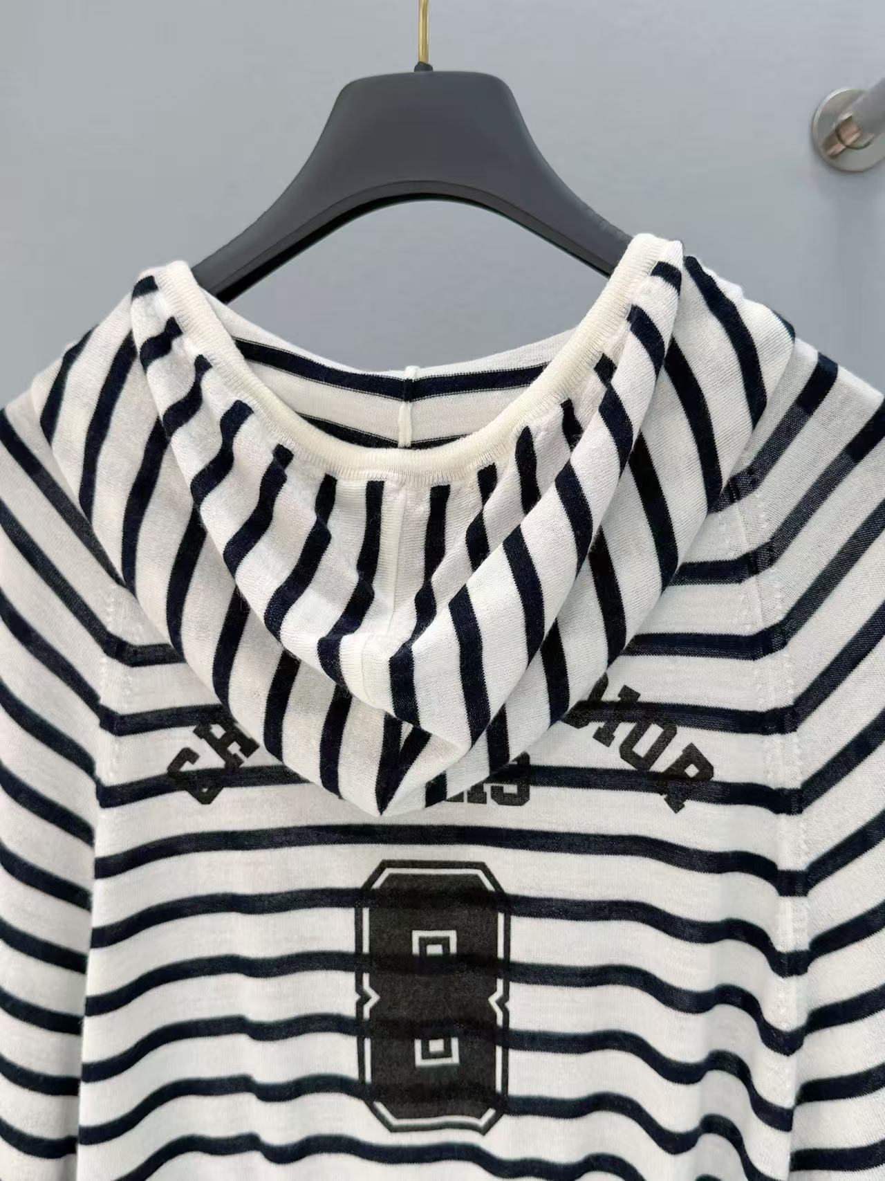 經典黑白條紋設計簡約耐看,連帽版型加後背字母點綴,休閒感直接拉滿,短款剪裁超顯腿長、顯瘦,輕鬆拉出好比例,搭配高腰褲、高腰裙或牛仔褲都超級有型!