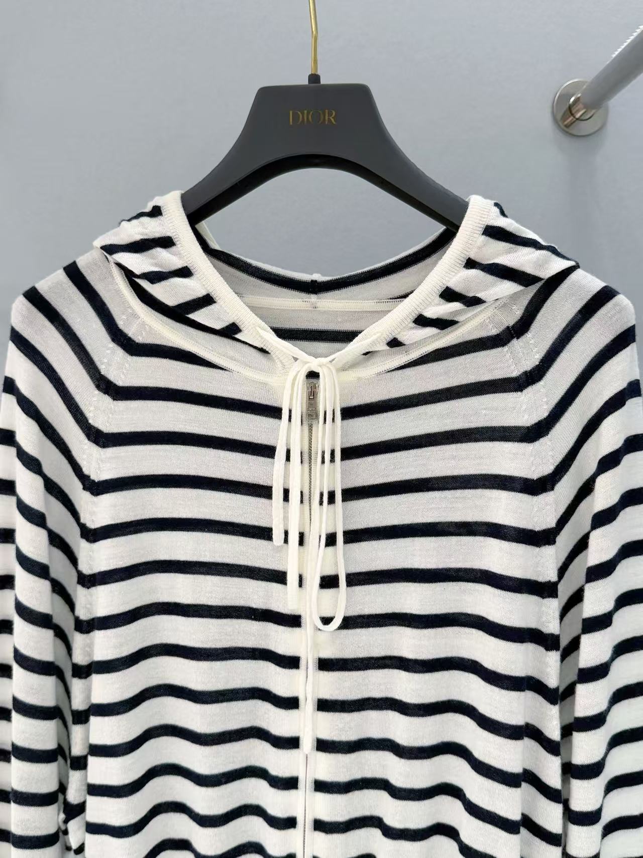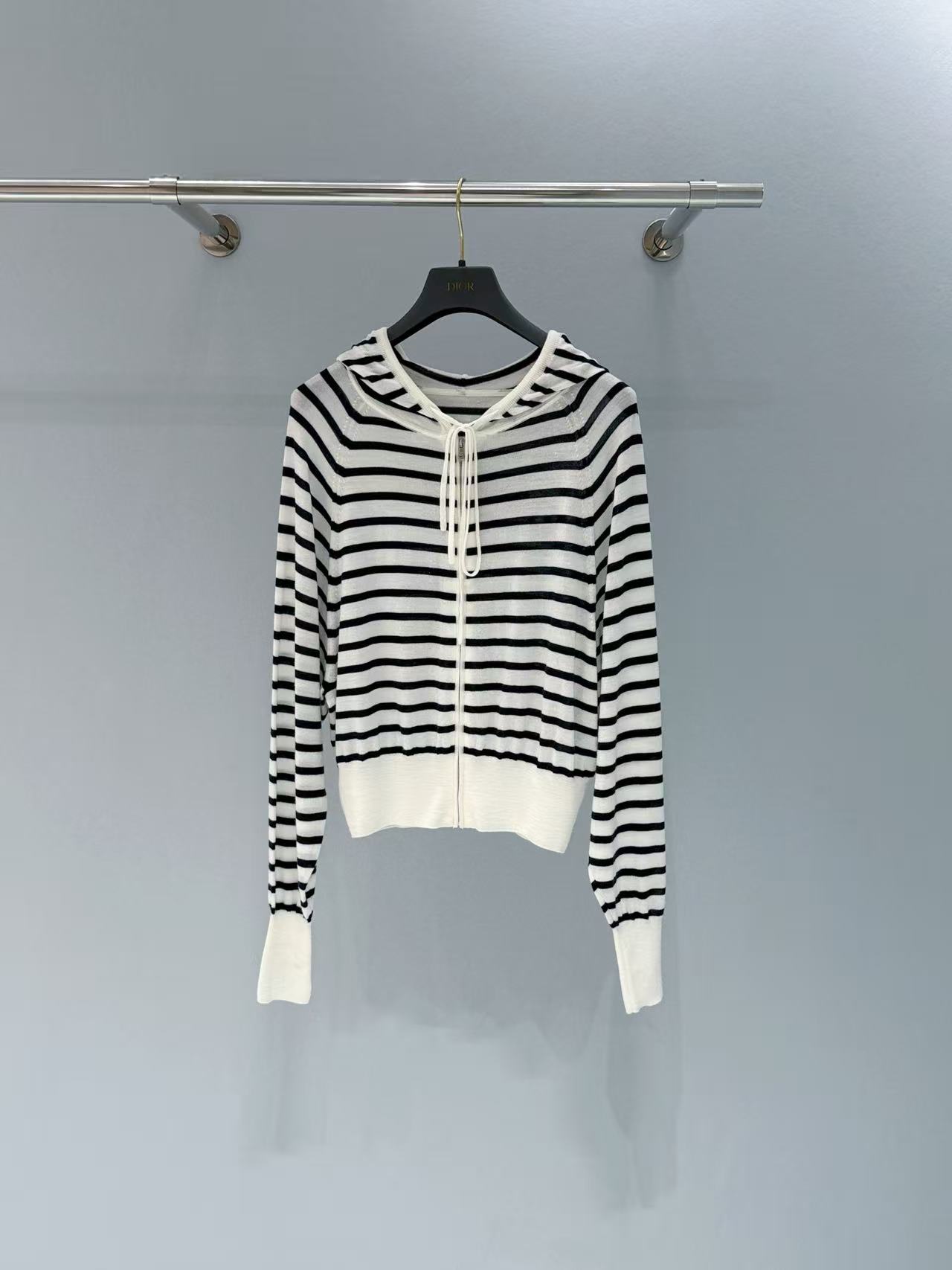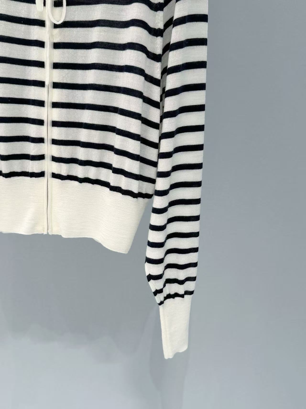 2025早春D家 條紋連帽拉鏈針織外套