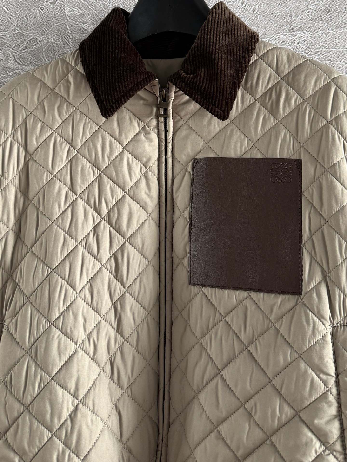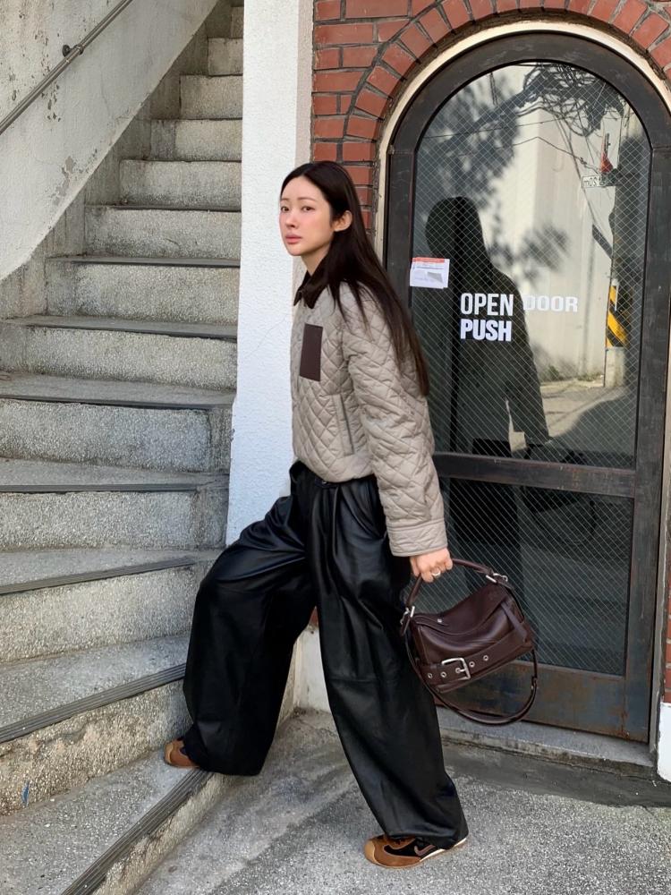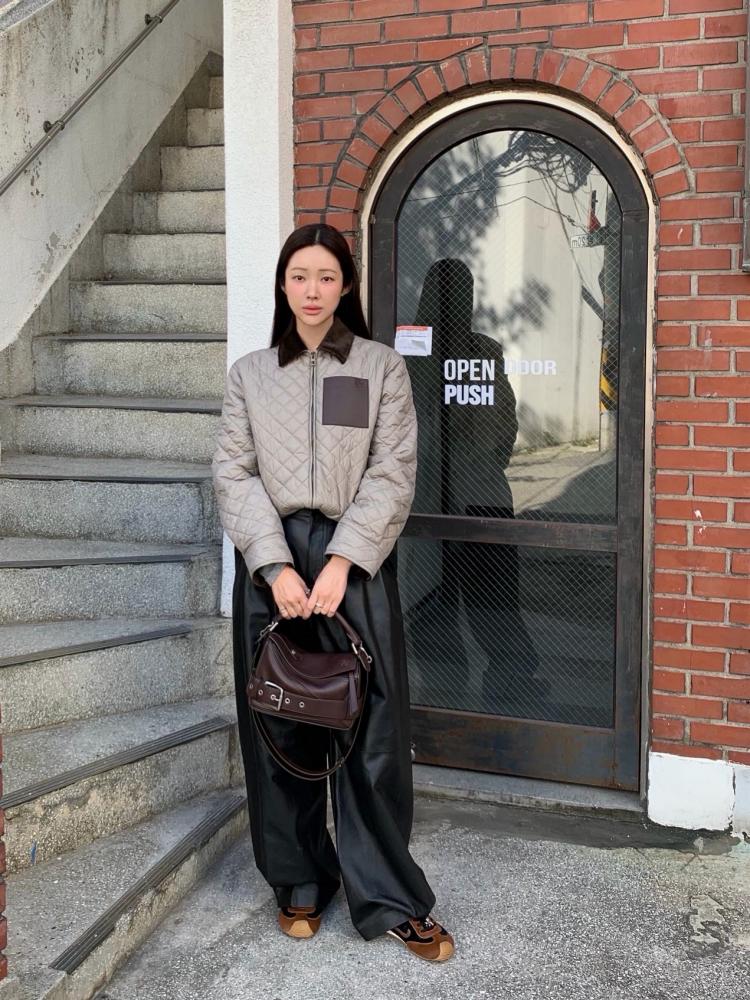 這款菱格皮標棉服外套,是那種一穿上就能感受到高級質感的單品。輕盈、保暖、時髦兼具,經典皮牌設計更讓整體辨識度加倍。