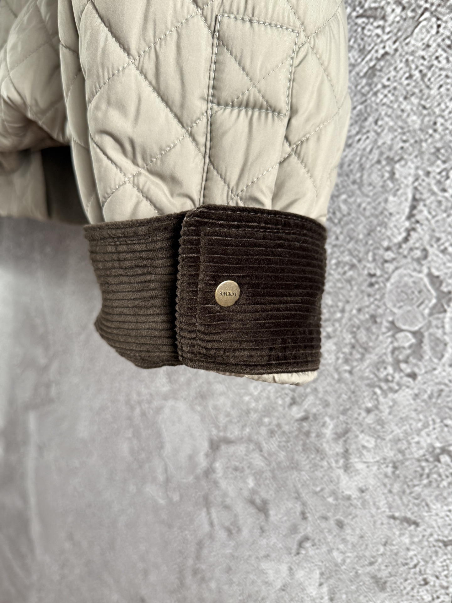 領口與袖口內側拼接燈芯絨布,帶來細膩的溫暖觸感,兼具視覺層次與舒適度。