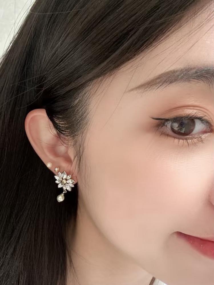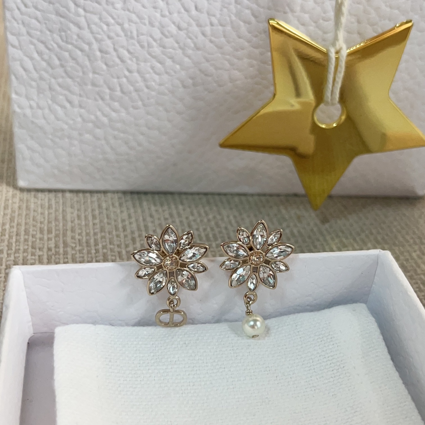 2026早春新品 D家 滿鑽雛菊吊CD珠耳釘