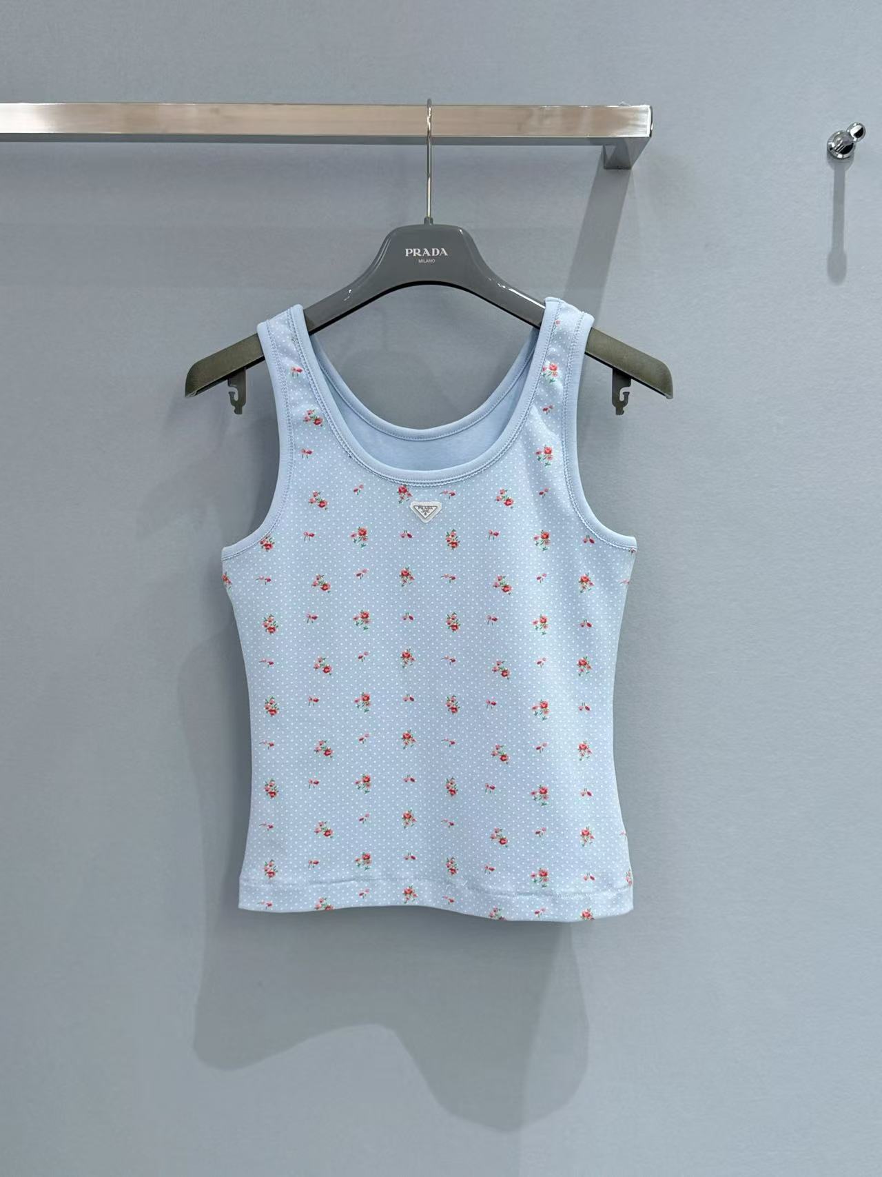 淺藍、純白與小紅花的交織設計 賦予了整件衣服極強的層次感,而領口與肩帶處的同色羅紋包邊,更是把精緻的少女靈魂直接拉滿。