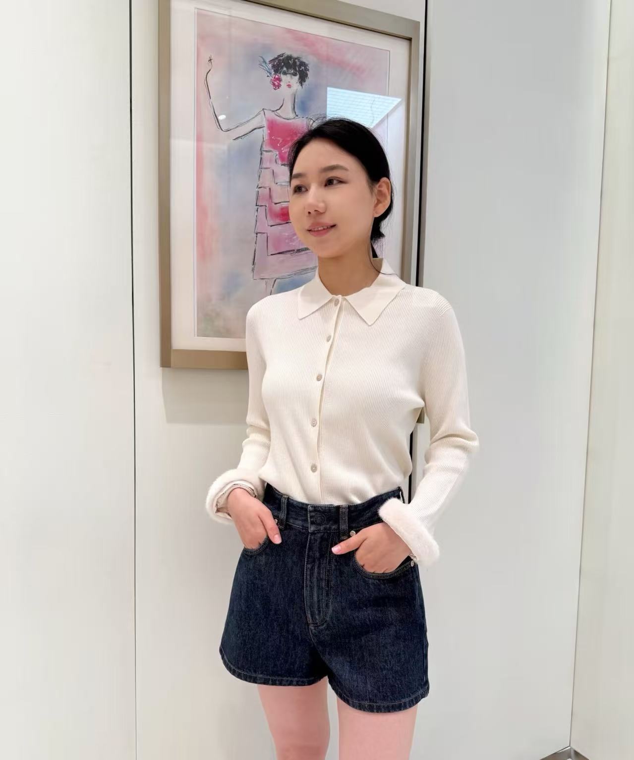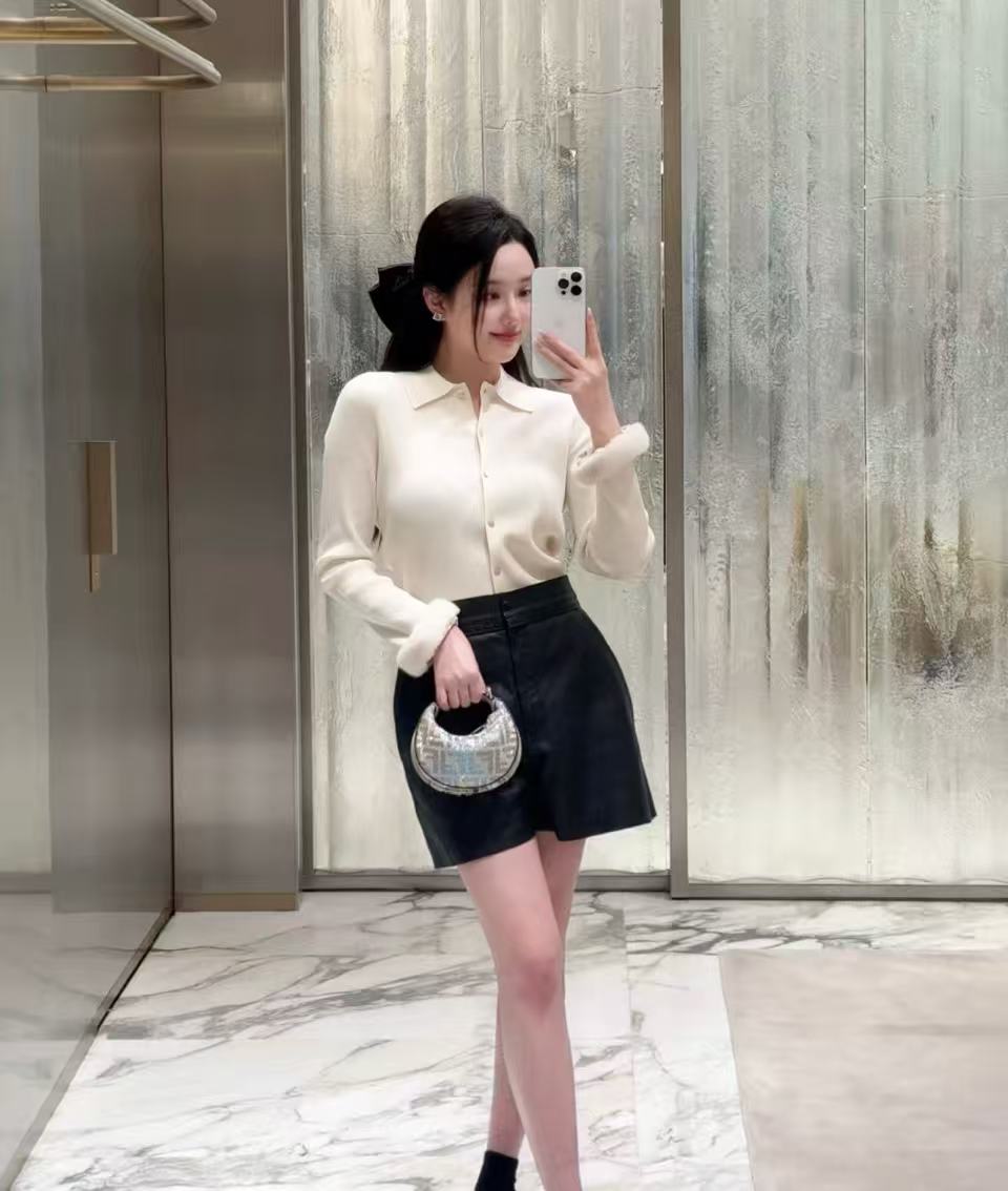 2025秋冬 FD家 米白針織POLO領小開衫