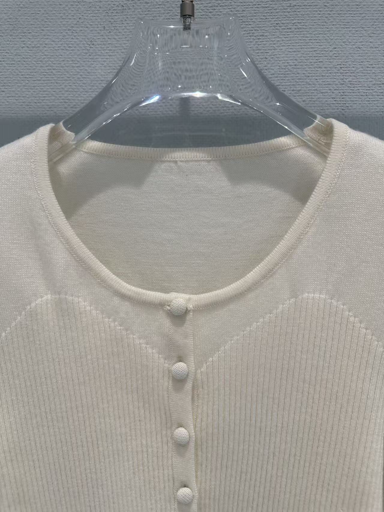 這次分享的 2026 早春系列針織衫,選用了極具知性美感的奶油白色調,平衡了品牌一貫的冷冽,轉而呈現出一種優雅且富有張力的陰柔美。