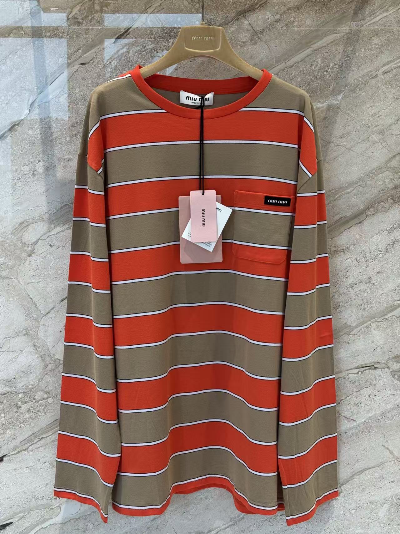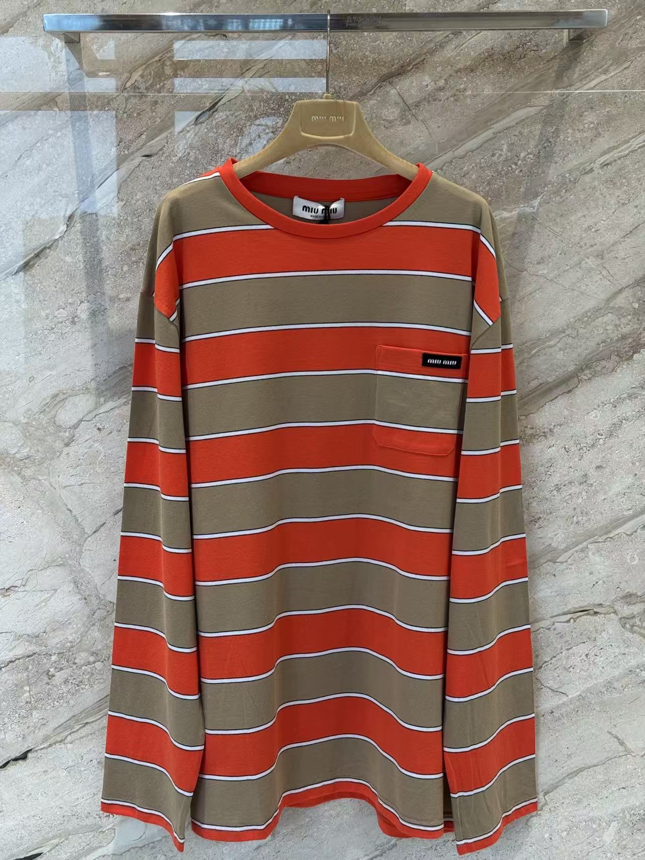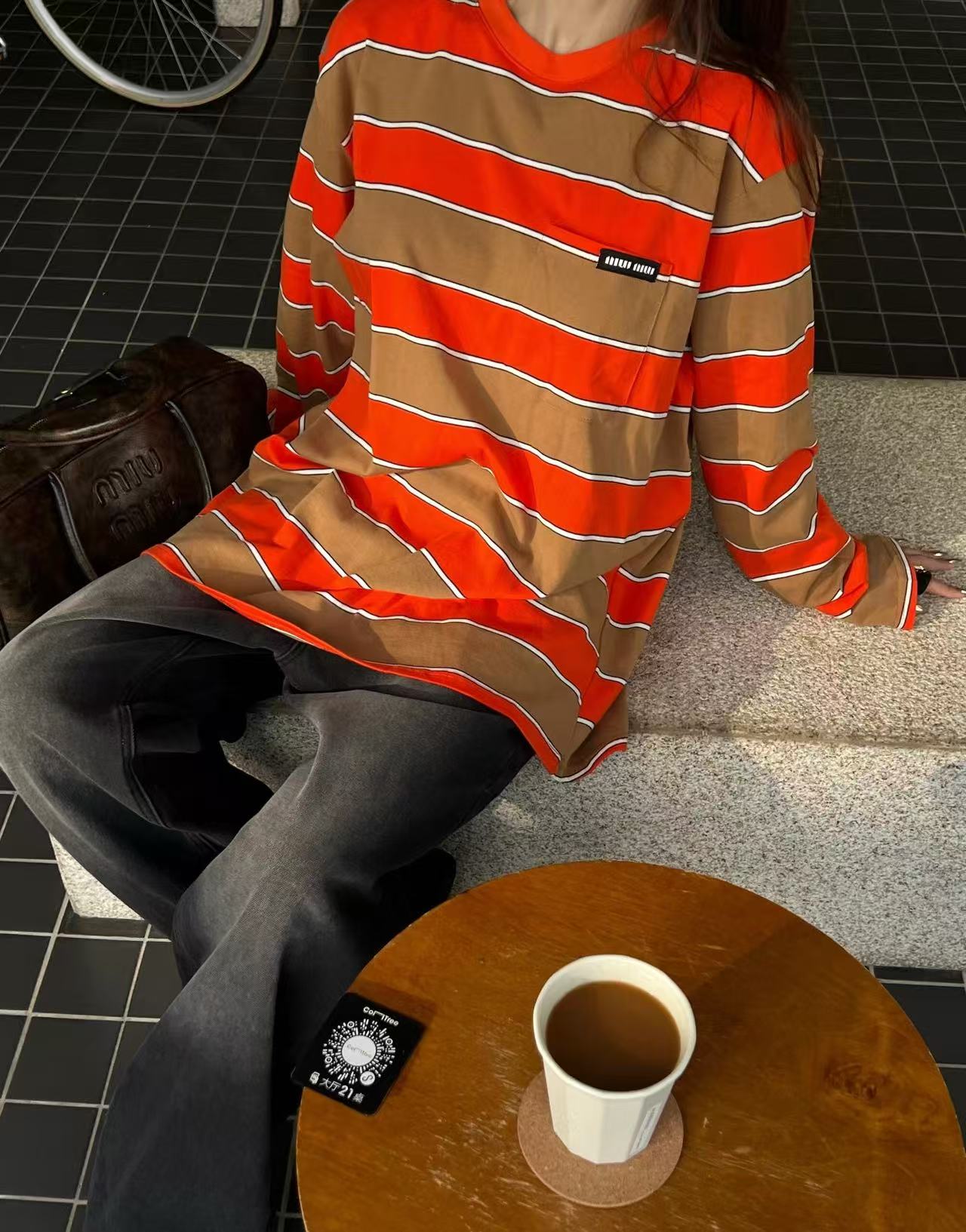 雙十一重磅特惠福利- Miu家 橙棕撞色條紋長袖