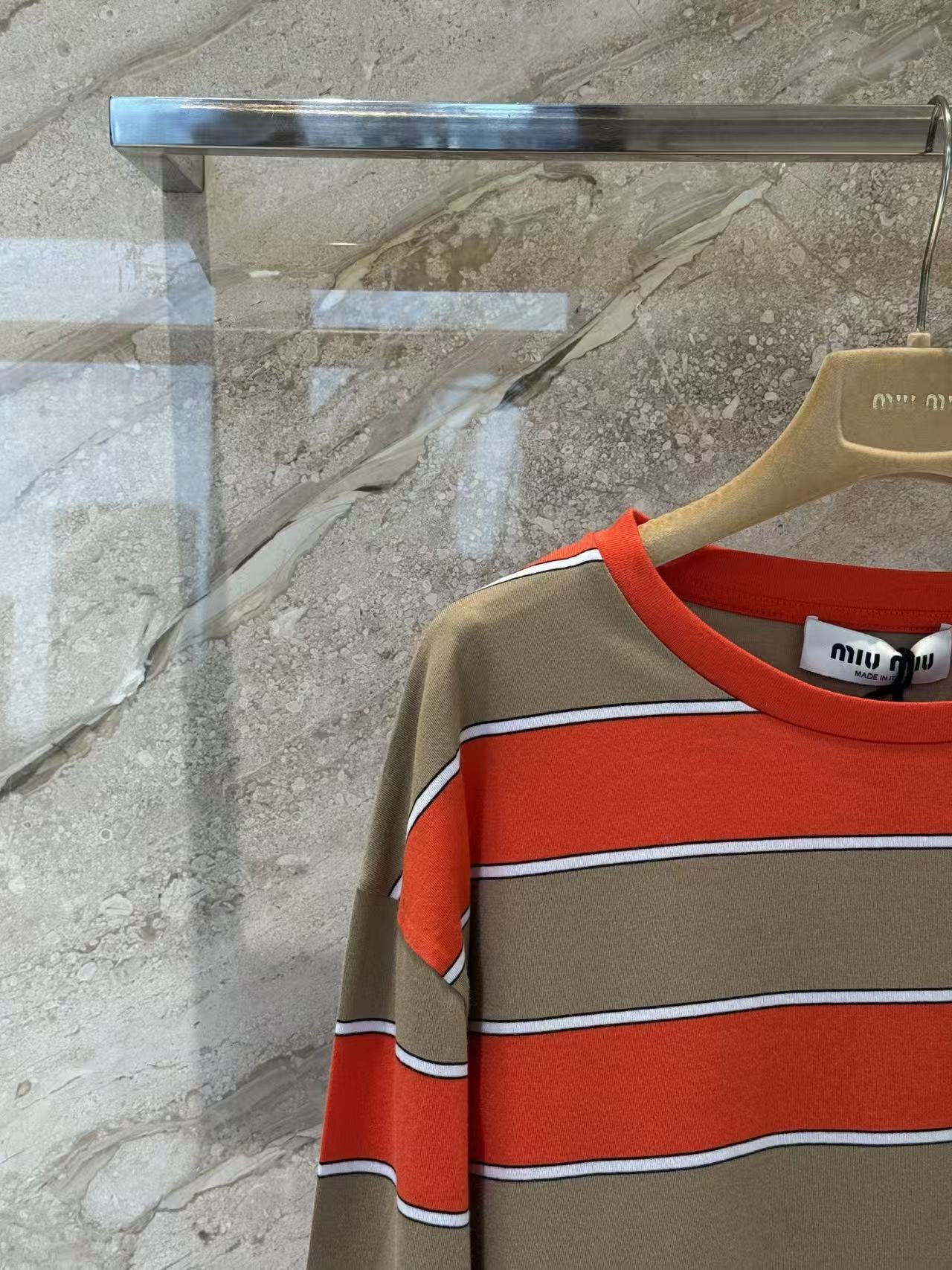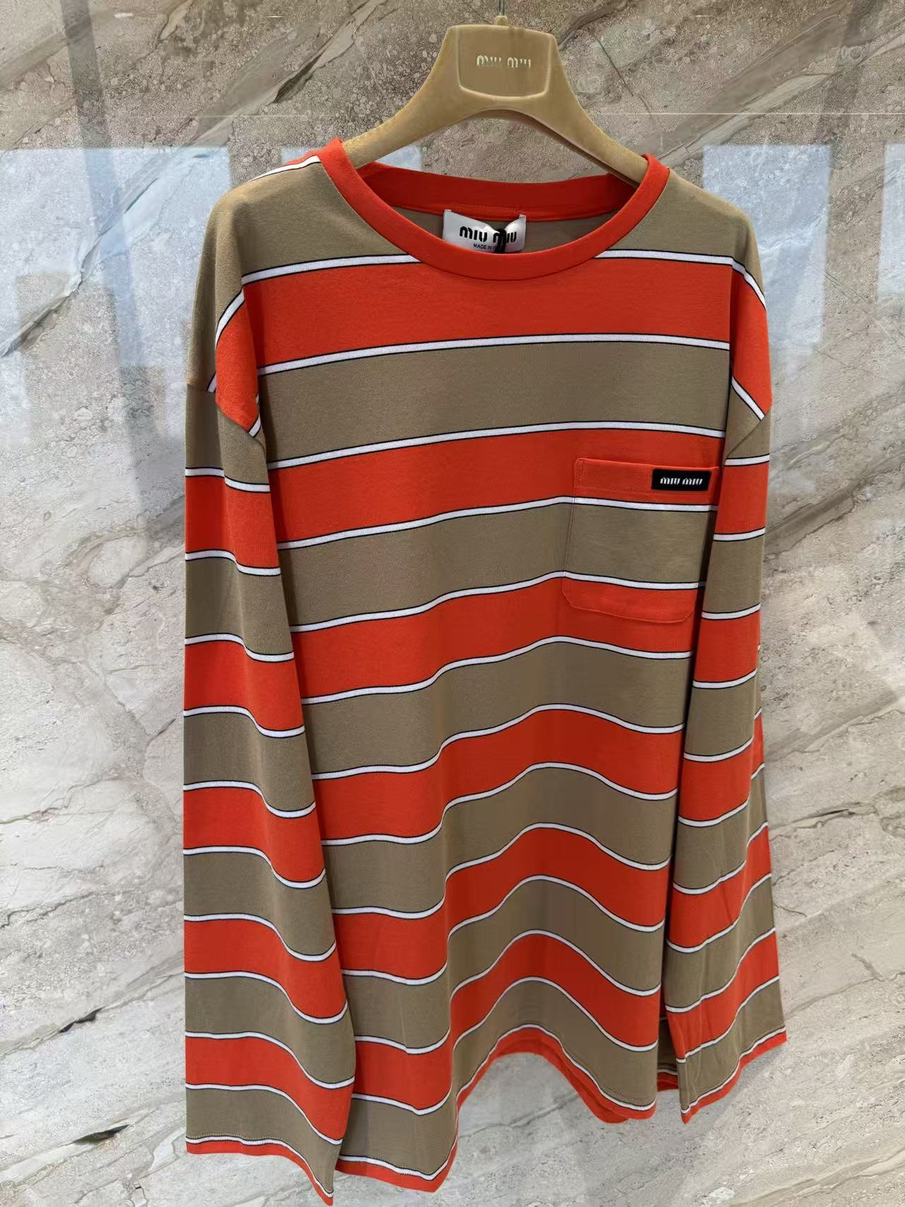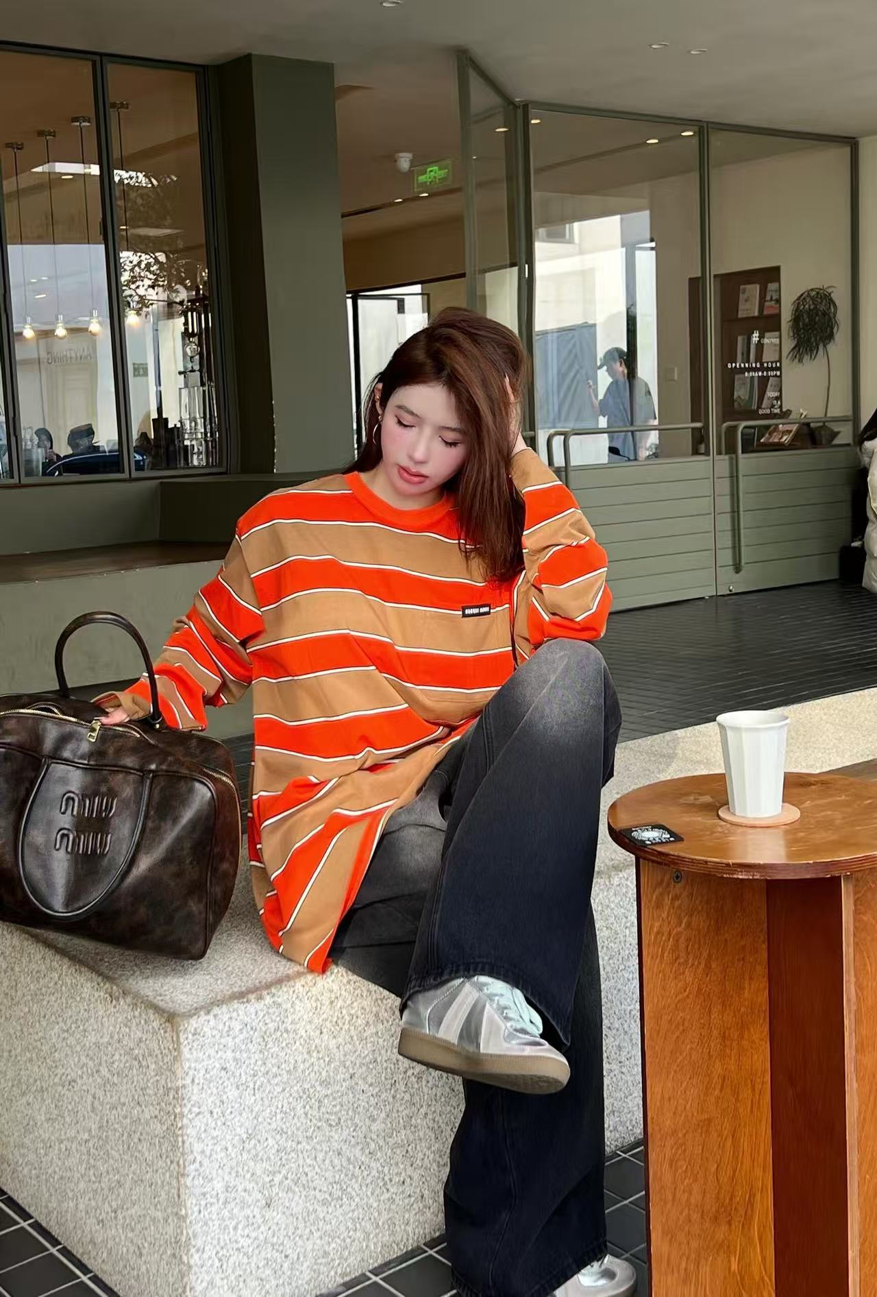 雙十一重磅特惠福利- Miu家 橙棕撞色條紋長袖