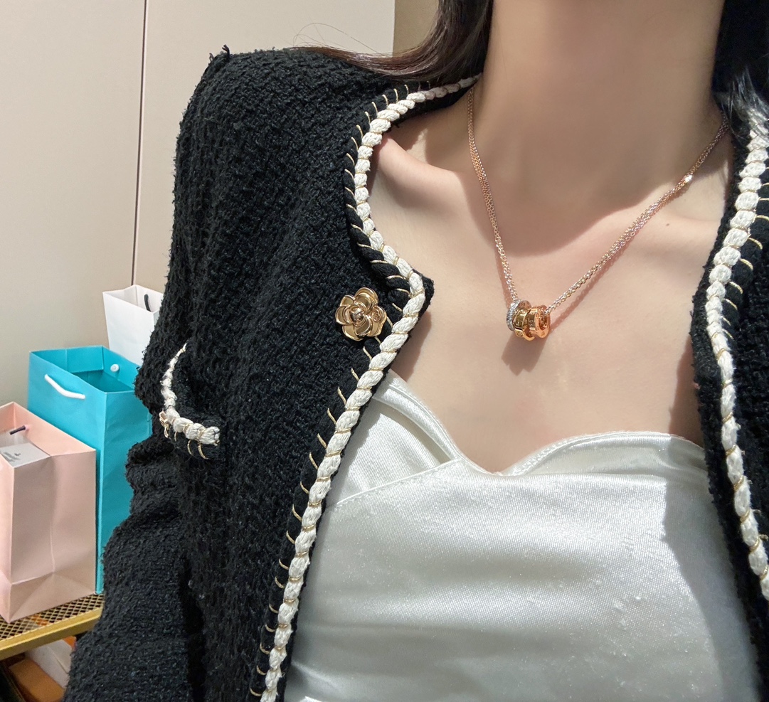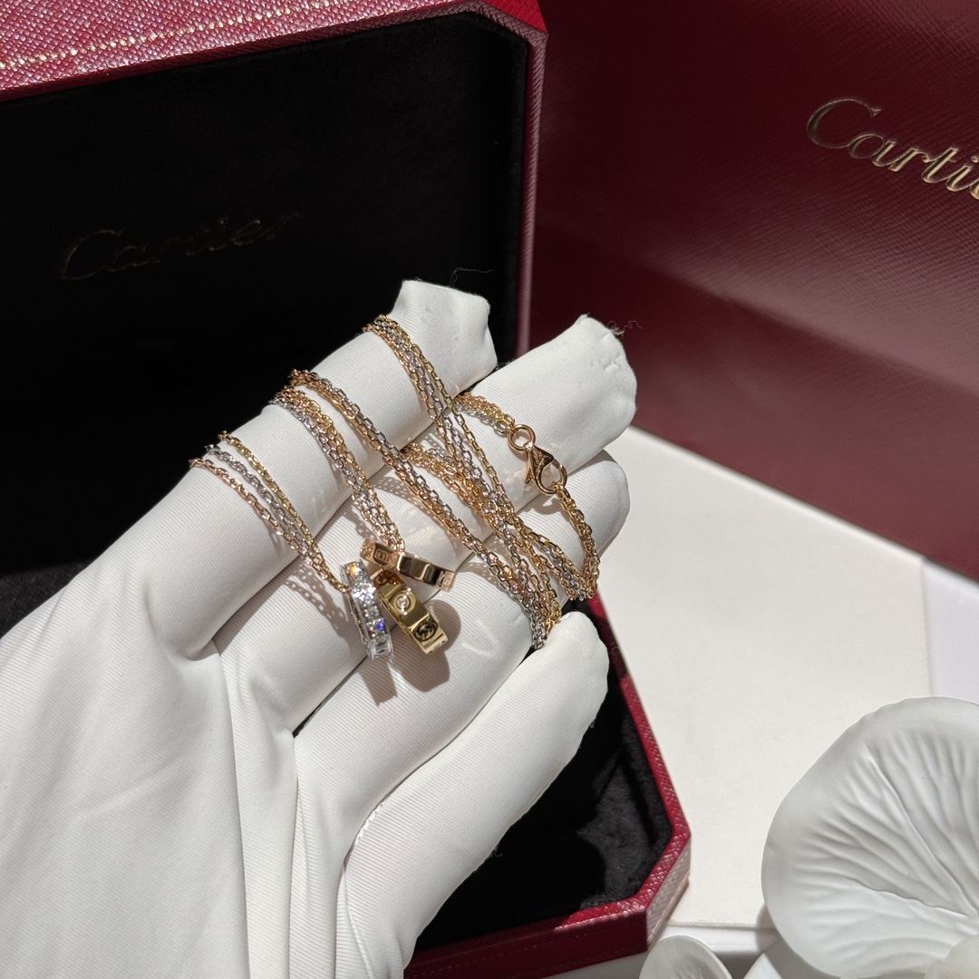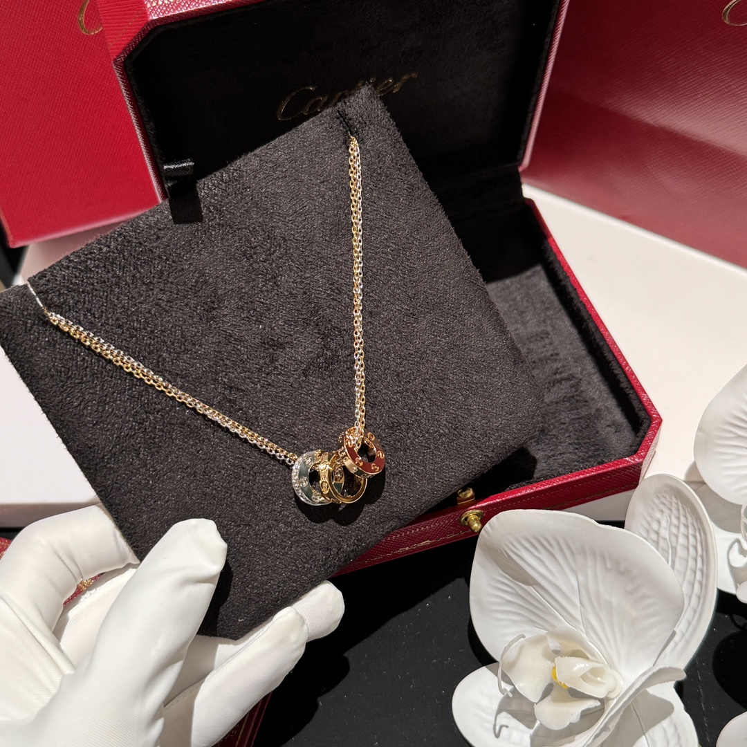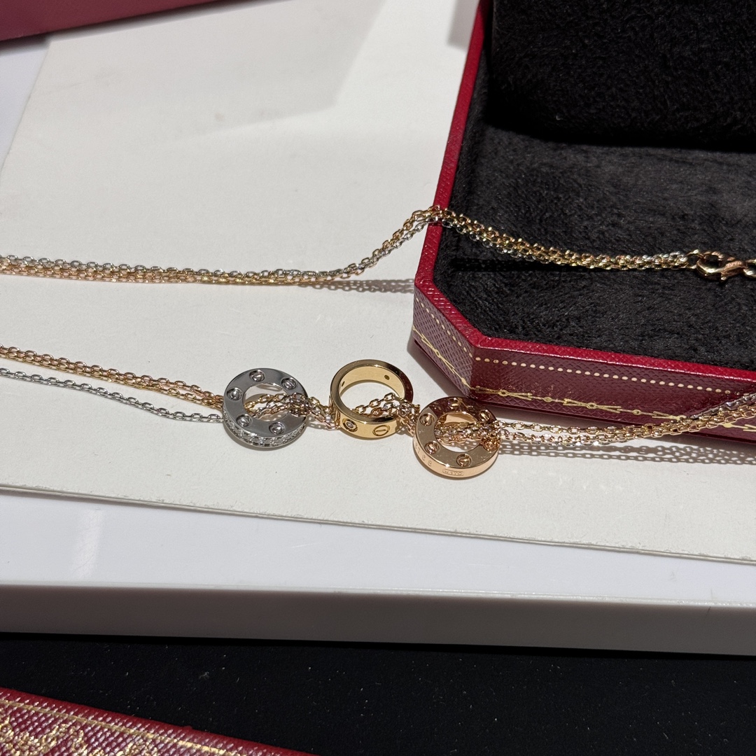 這條項鍊真的屬於那種一戴上就會被注意到的經典款。靈感來自LOVE 系列,將玫瑰金、白金、黃金三種色調巧妙融合,低調卻非常有存在感,是越看越耐看的設計。