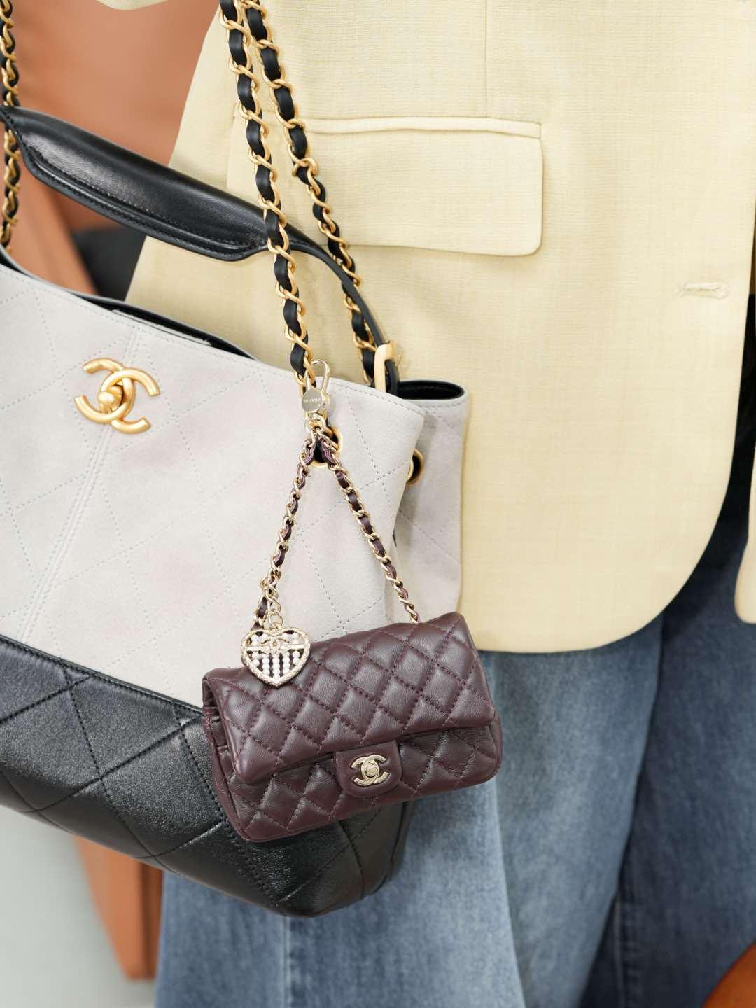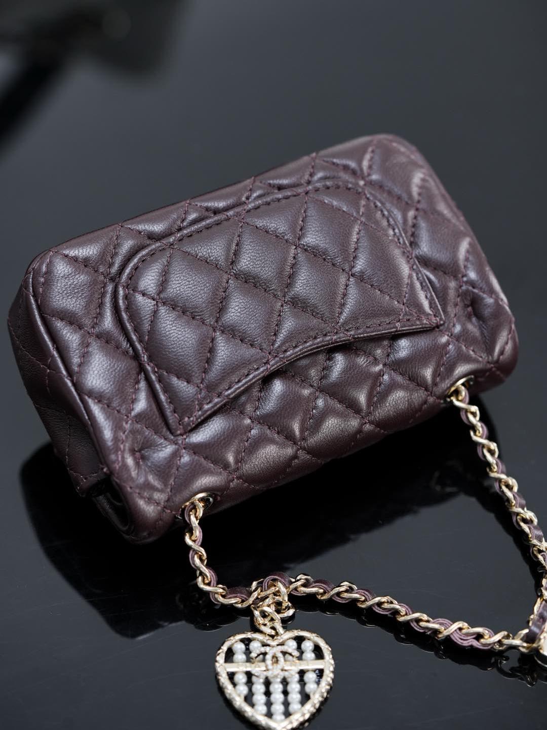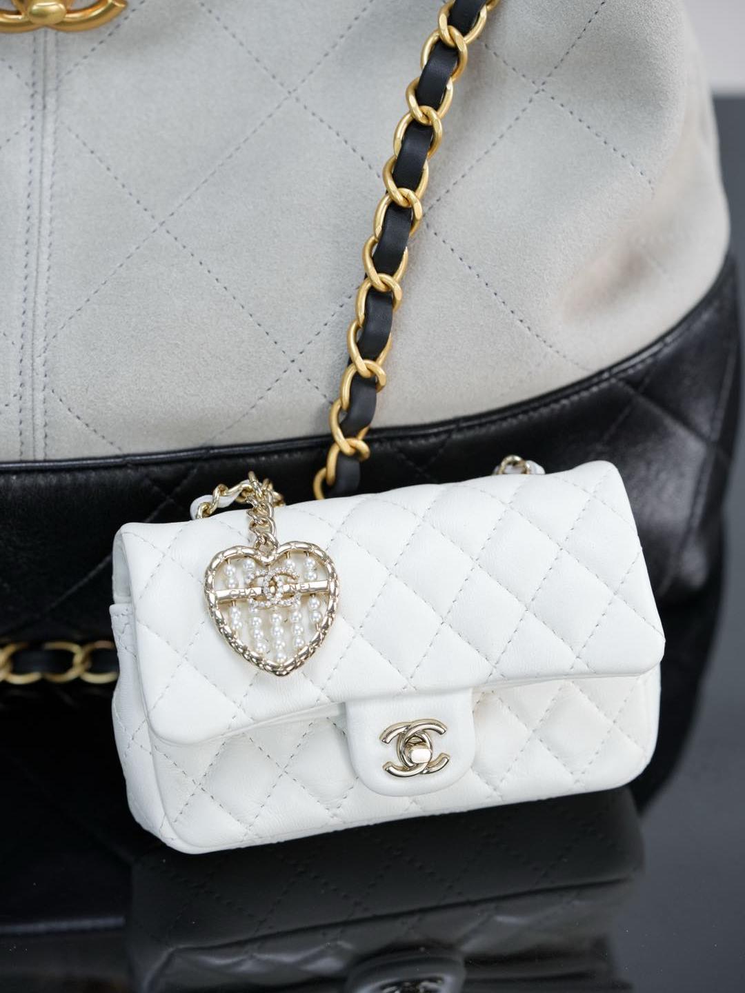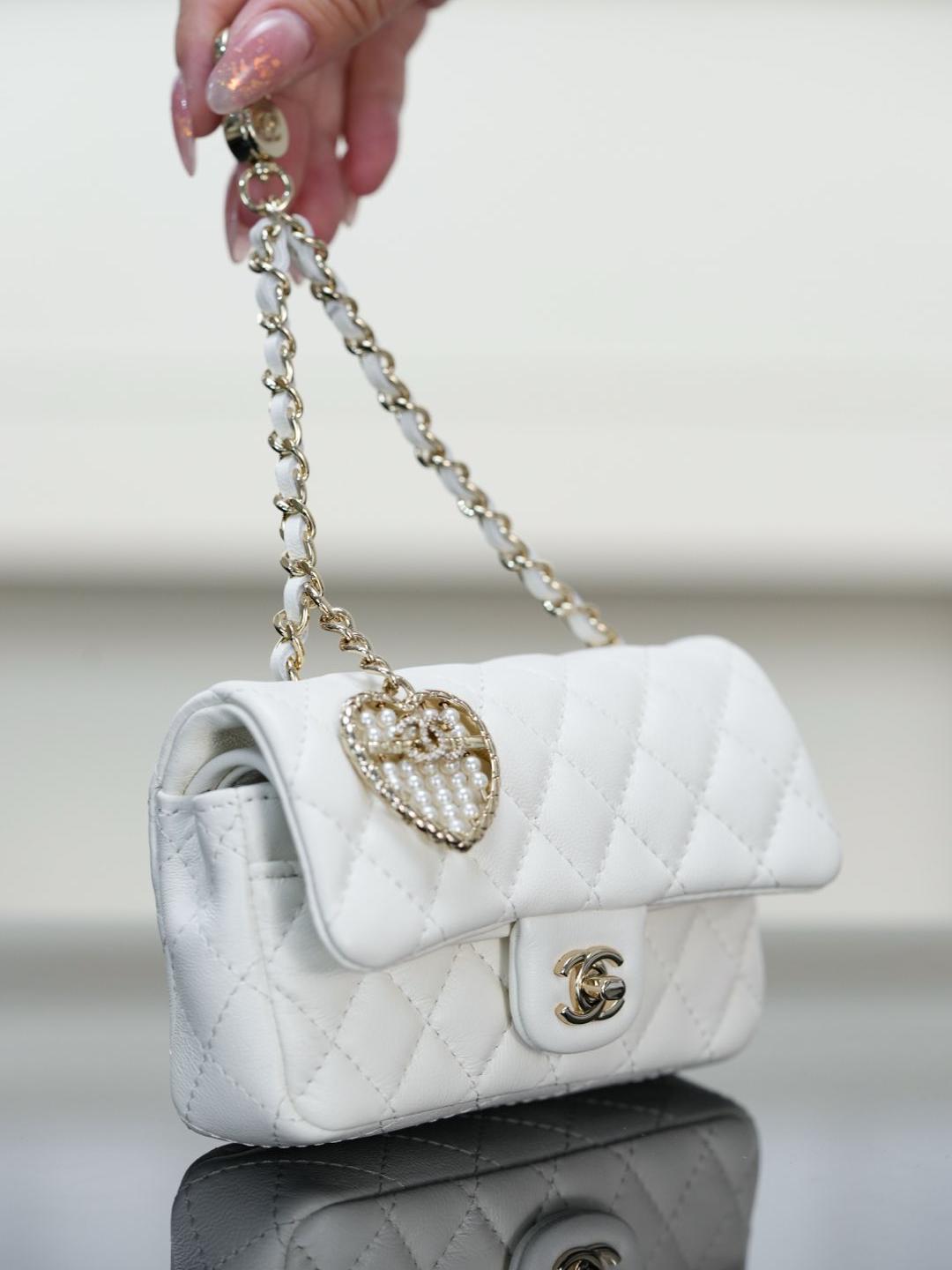 這款 25A mini「愛心珍珠」CF 掛件,推出白色與酒紅色兩種色選,可愛又精緻,完全是收藏與搭配的夢幻單品。