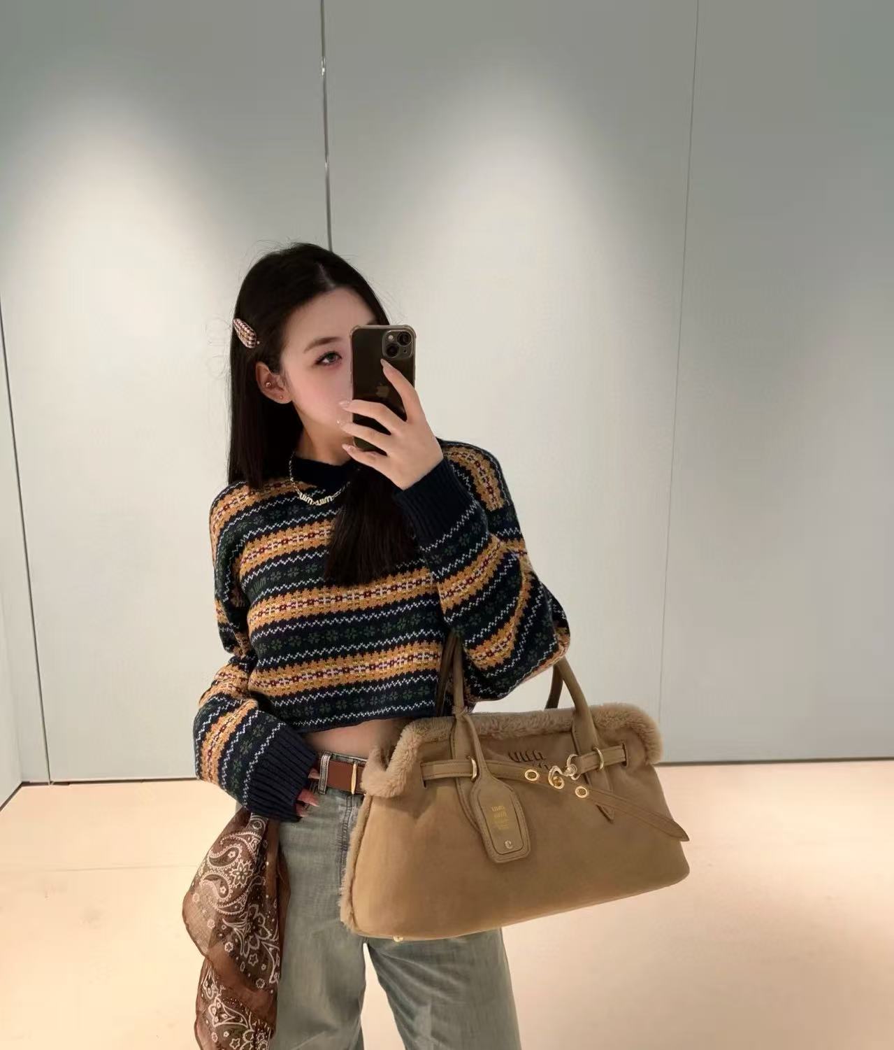 Miu家 蘇格蘭風羊毛 V 領短款毛衣