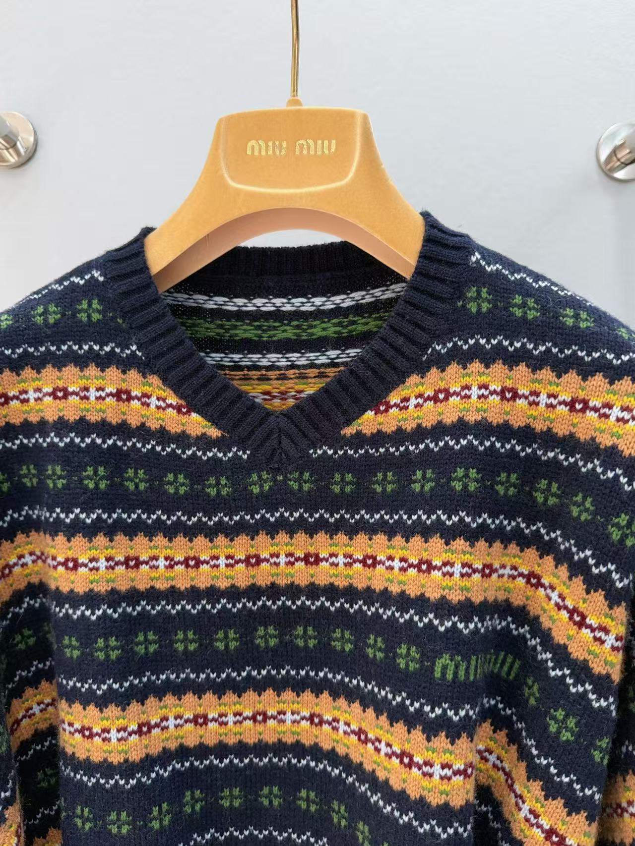 2025早秋 Miu家 蘇格蘭風羊毛 V 領短款毛衣