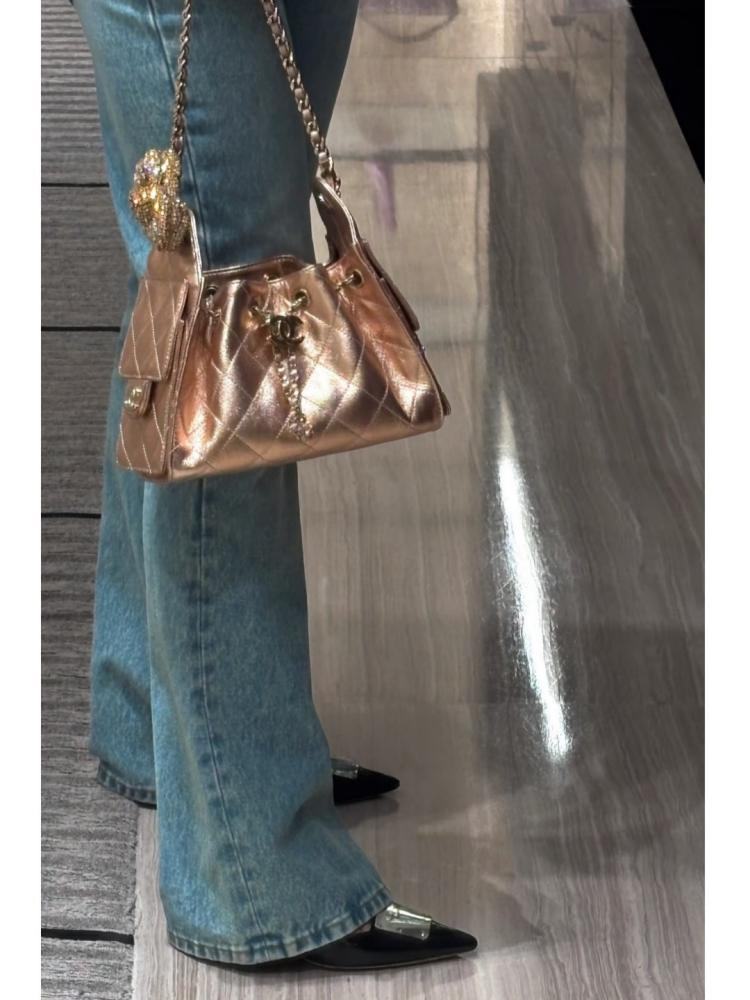 這款一上新就迅速成為討論焦點,真的很難不心動。Mini 尺寸讓整體比例看起來更加精緻俐落,背起來輕巧又有存在感,非常符合春夏穿搭的節奏。