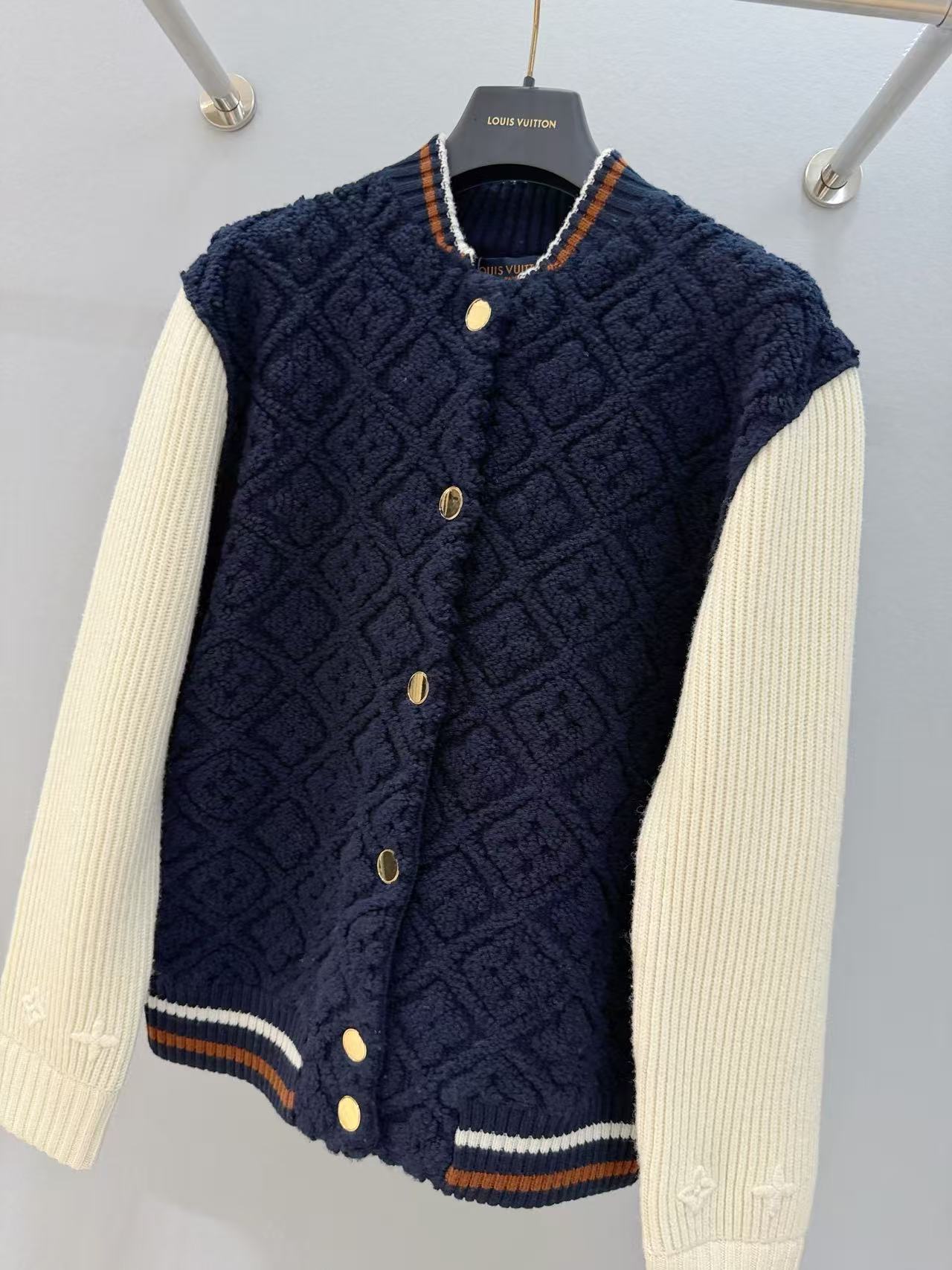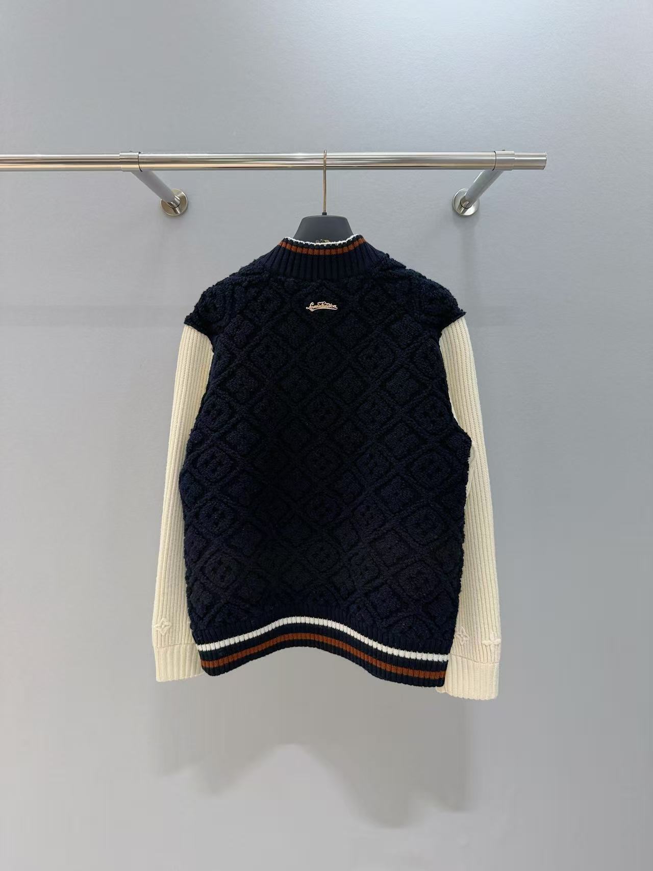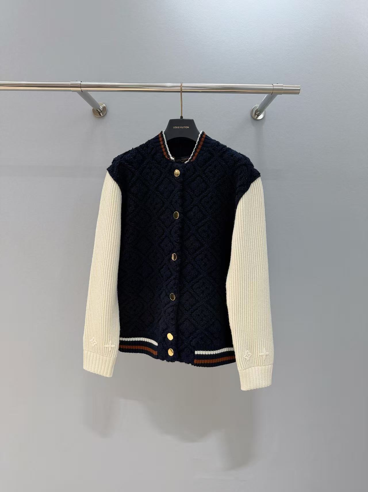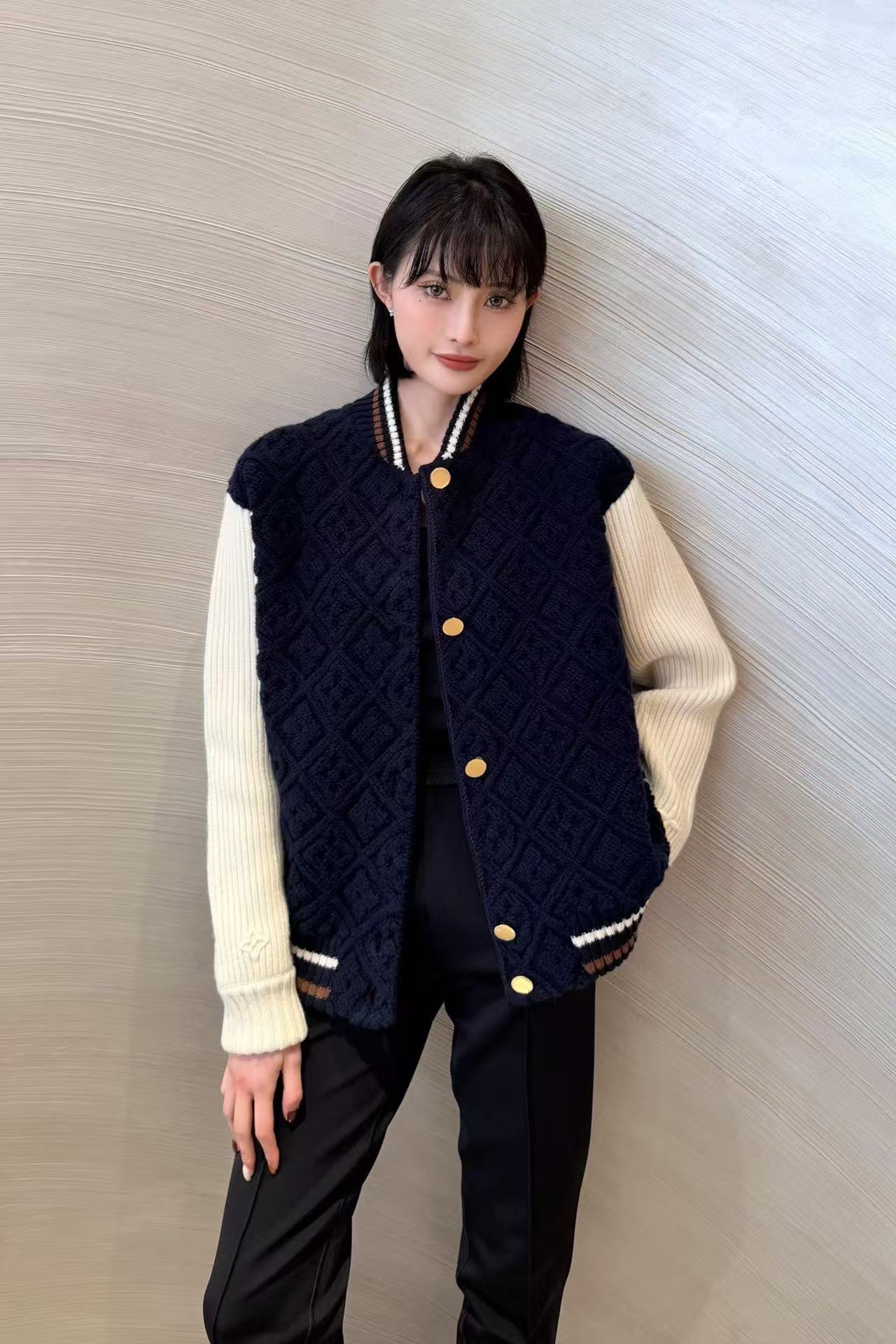 2025秋冬 L家 藏藍老花條紋針織棒球外套