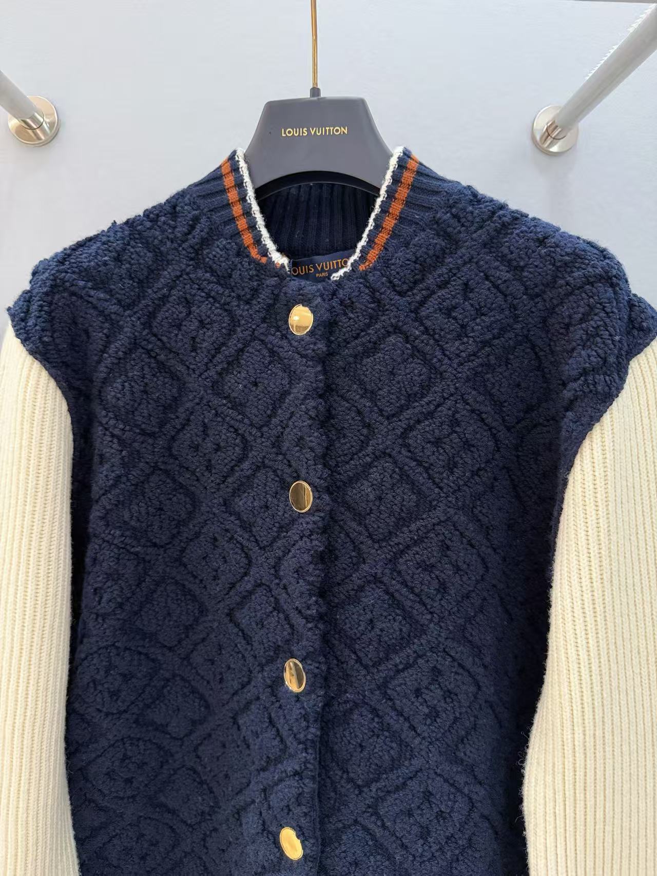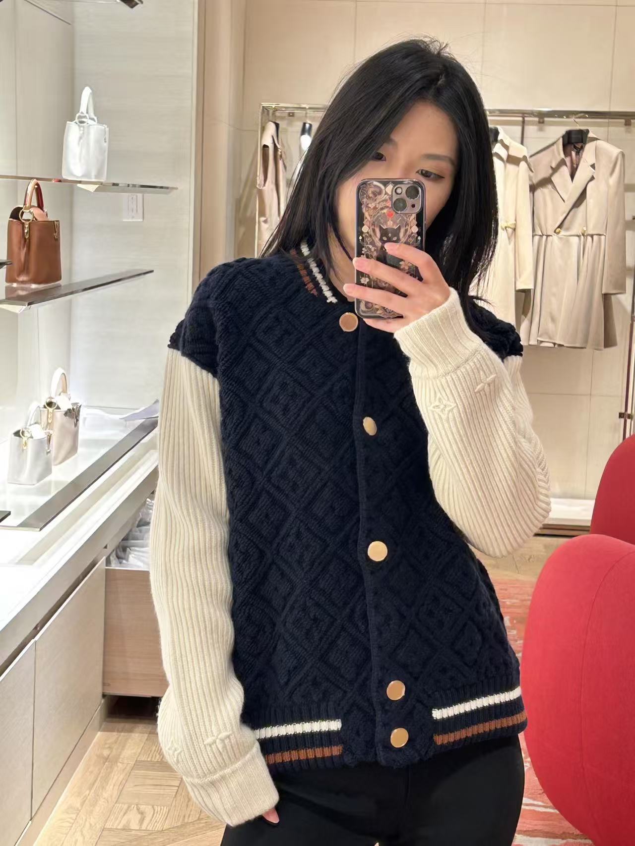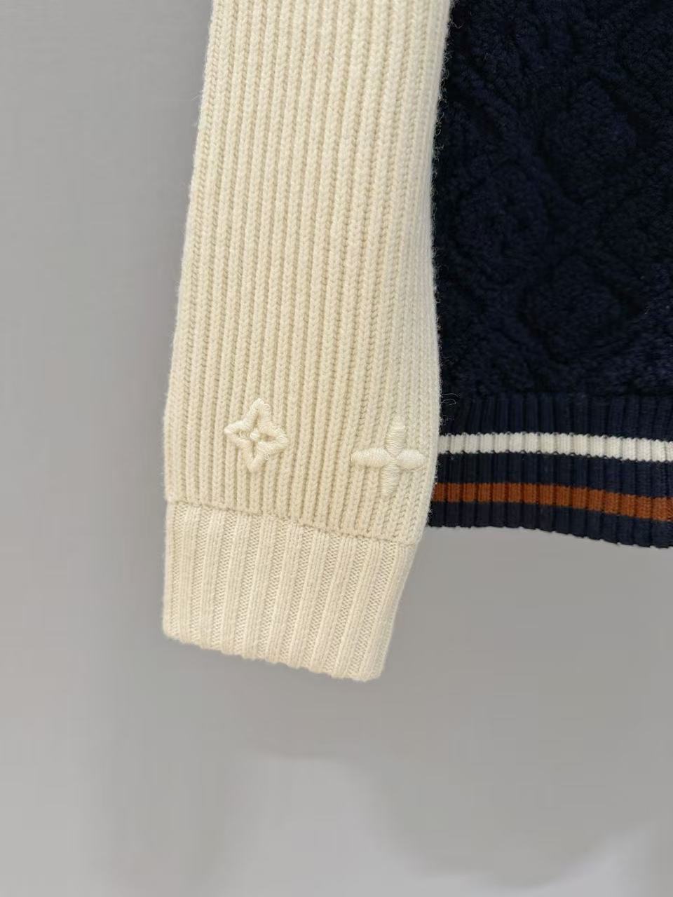 2025秋冬 L家 藏藍老花條紋針織棒球外套