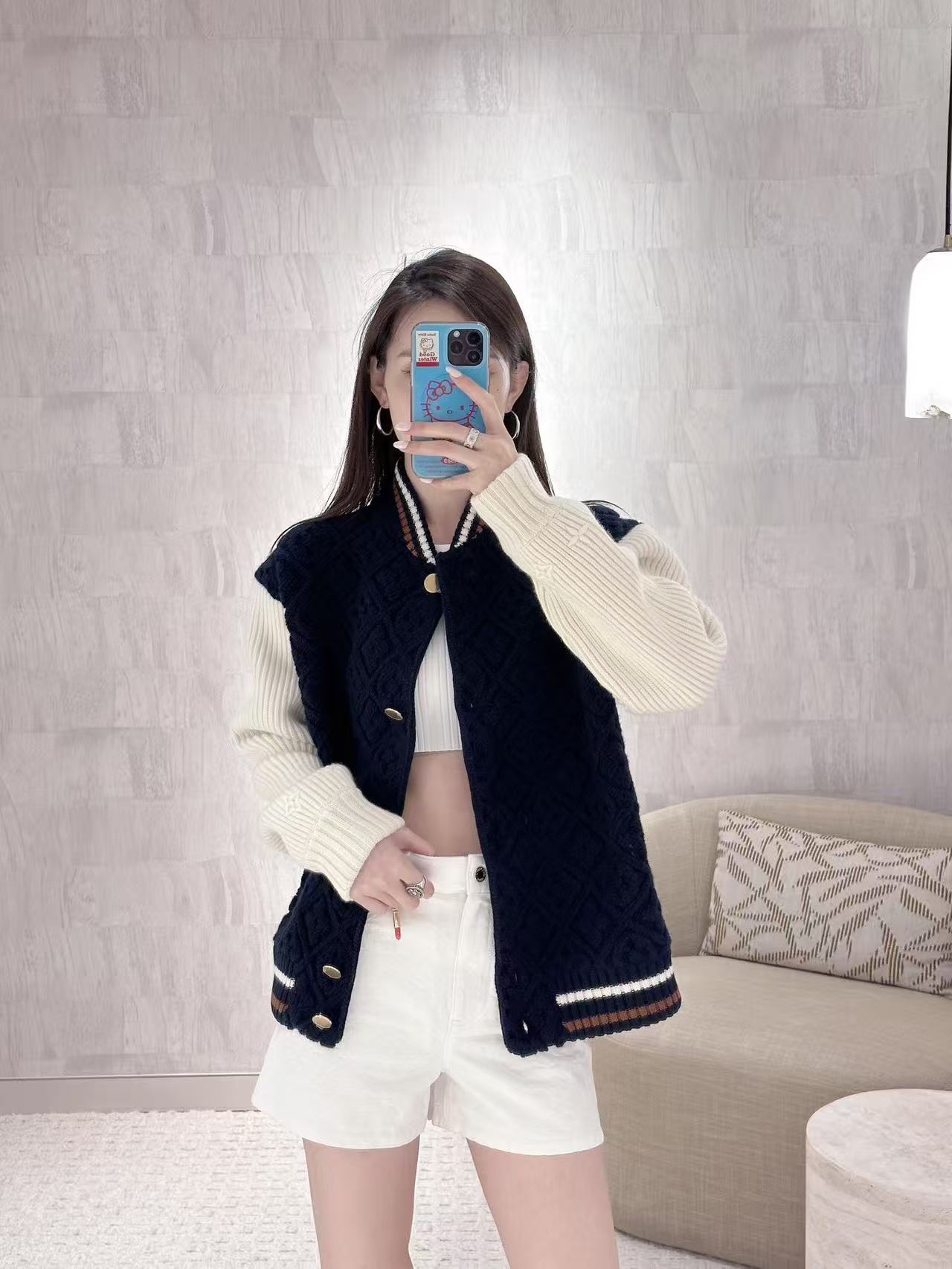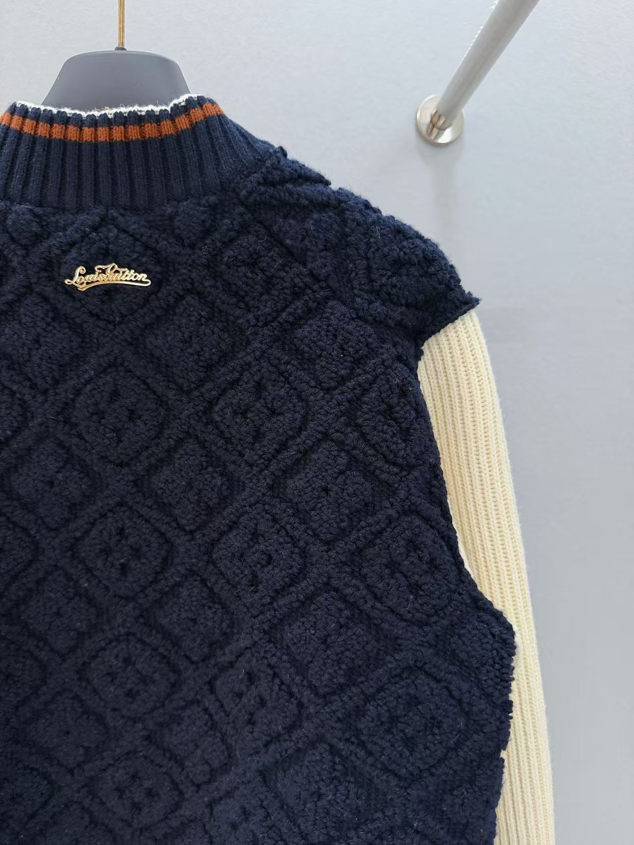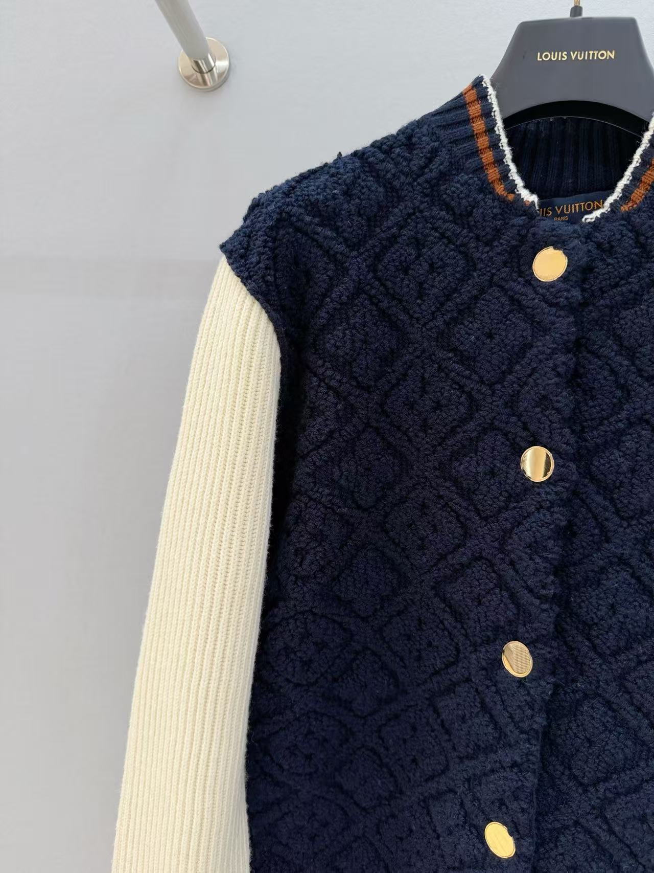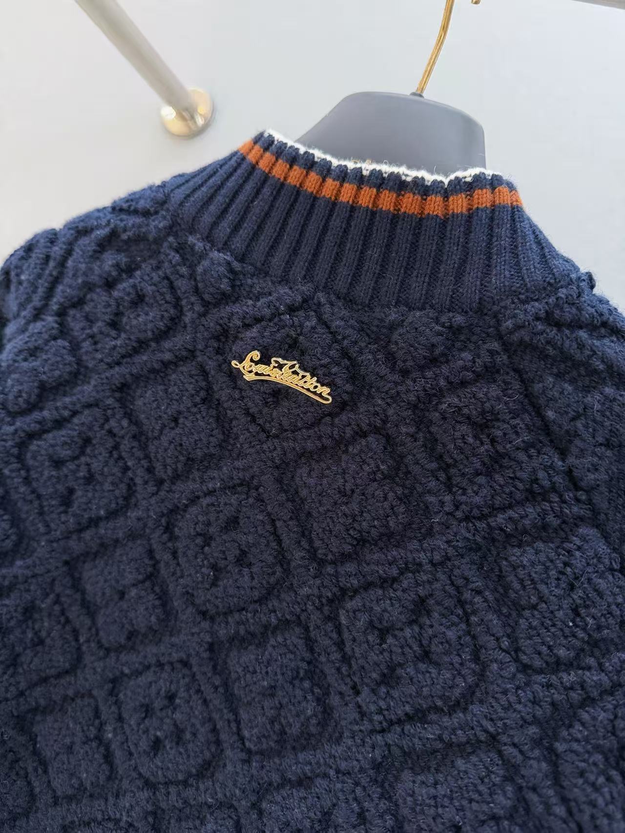 2025秋冬 L家 藏藍老花條紋針織棒球外套