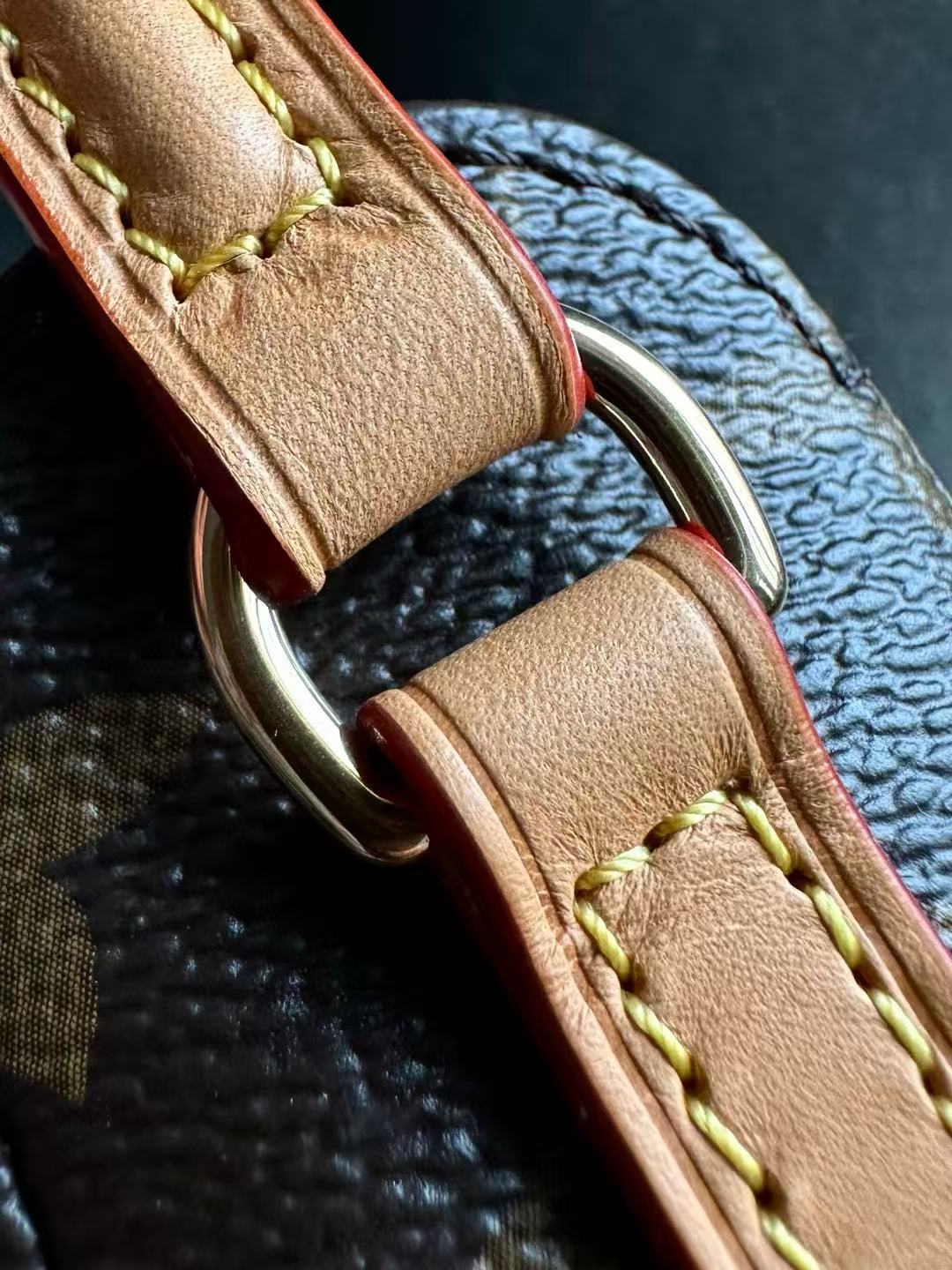 配皮使用原版全植鞣樹膏黃皮,這種皮料的魅力就在於能隨時間吸收油脂與水分,逐漸養成溫潤的蜜蠟色,這正是中古包迷戀的味道。相比之下,新款半植鞣雖然防水不變色,但少了那種「自己養出來」的成就感與靈魂。縫線選用德國進口亞曼莎菲線,膠水則是義大利進口水性白膠,環保、無毒、無味,與歐洲各大精品品牌一致。