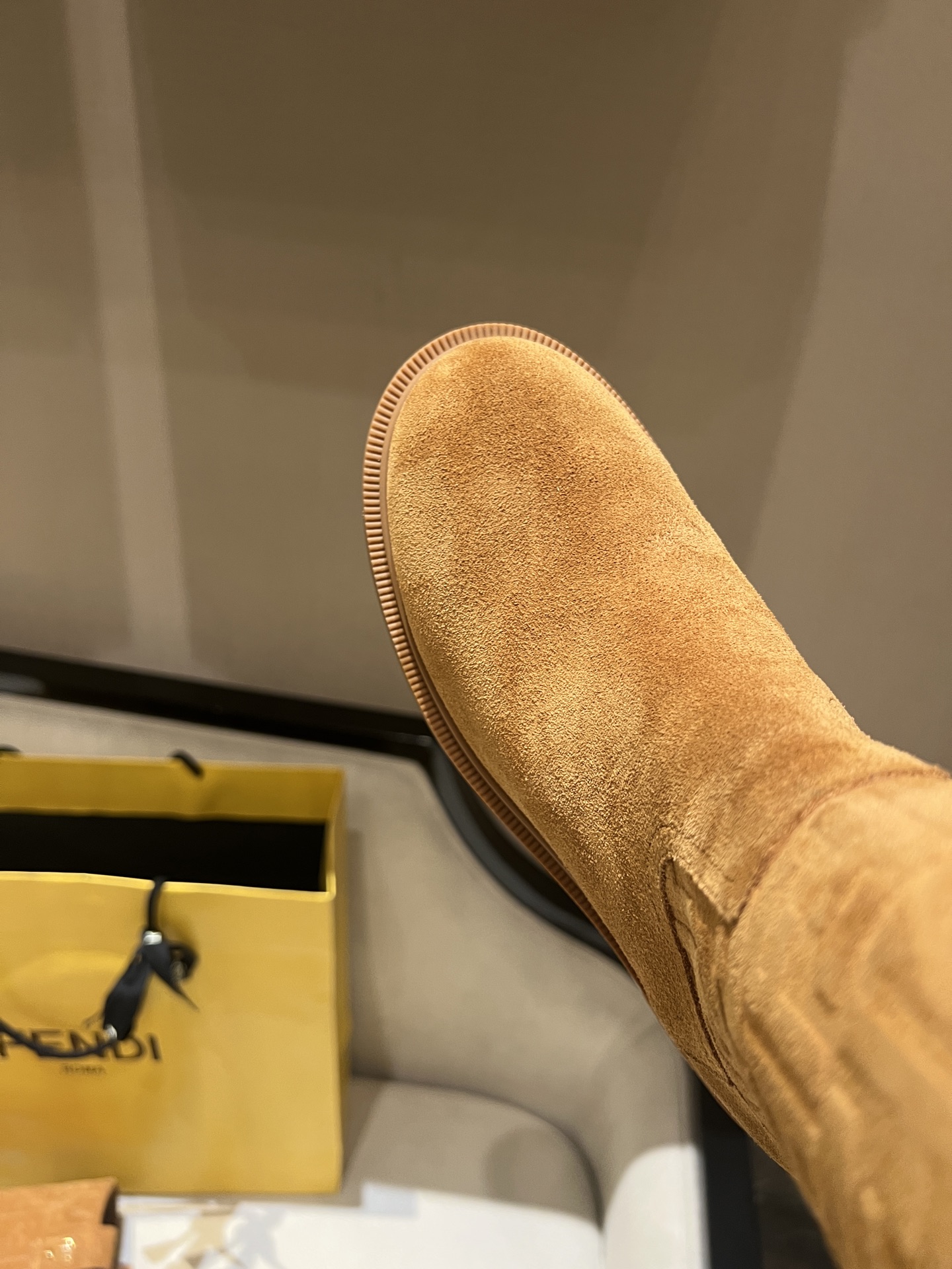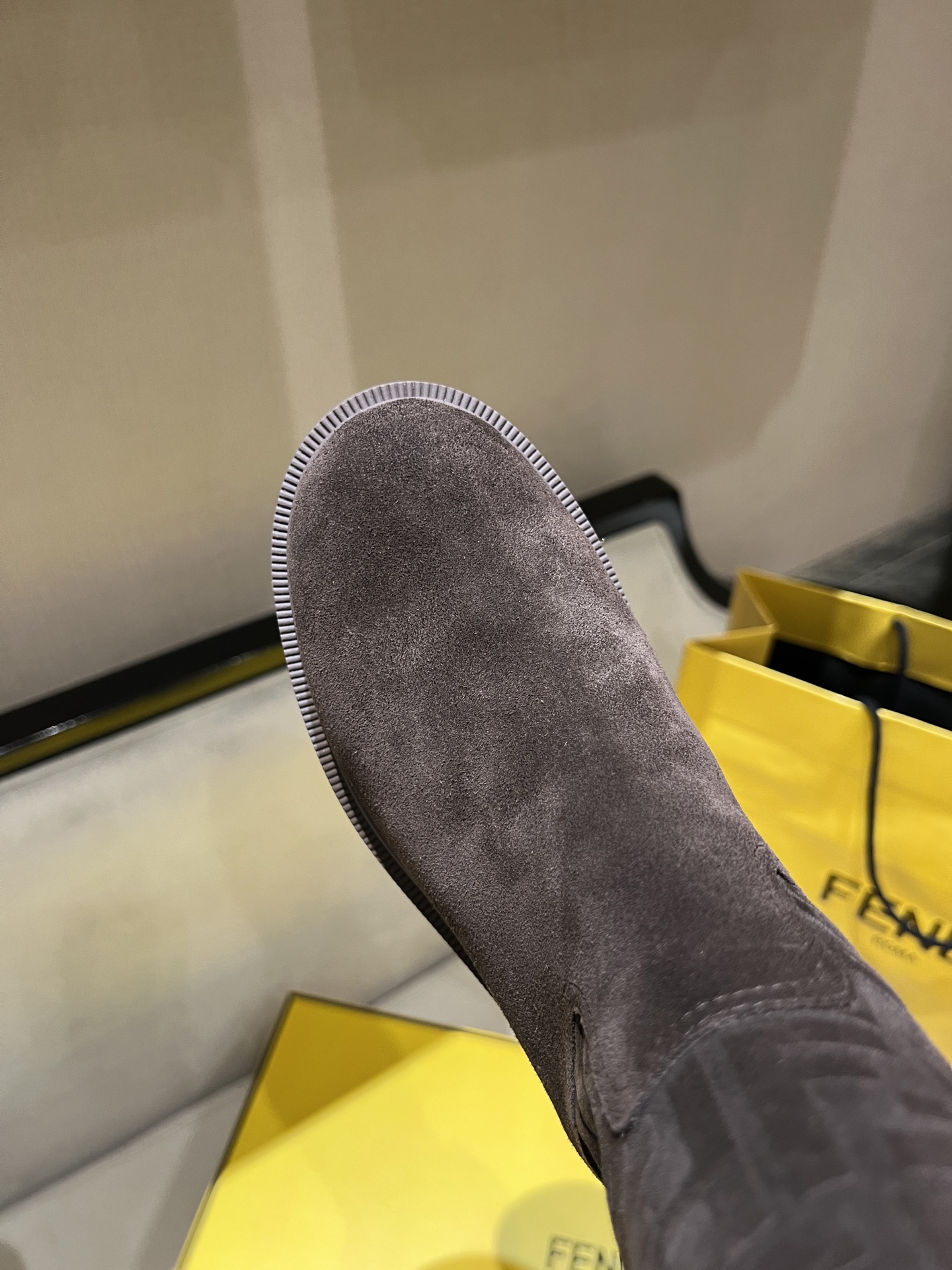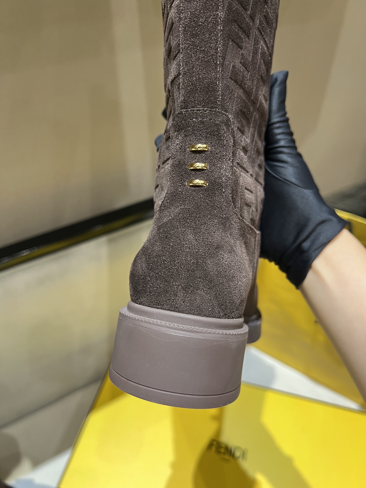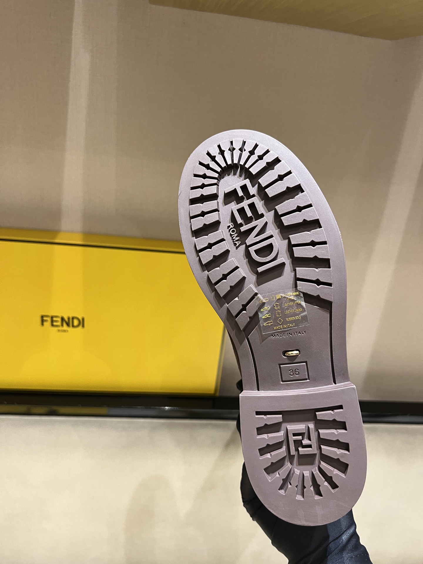 特別值得一提的是,這雙靴子採用獨家開模大底,比例與做工都非常精準。鞋跟側邊再加上 F* 字樣點綴,細節滿分。
