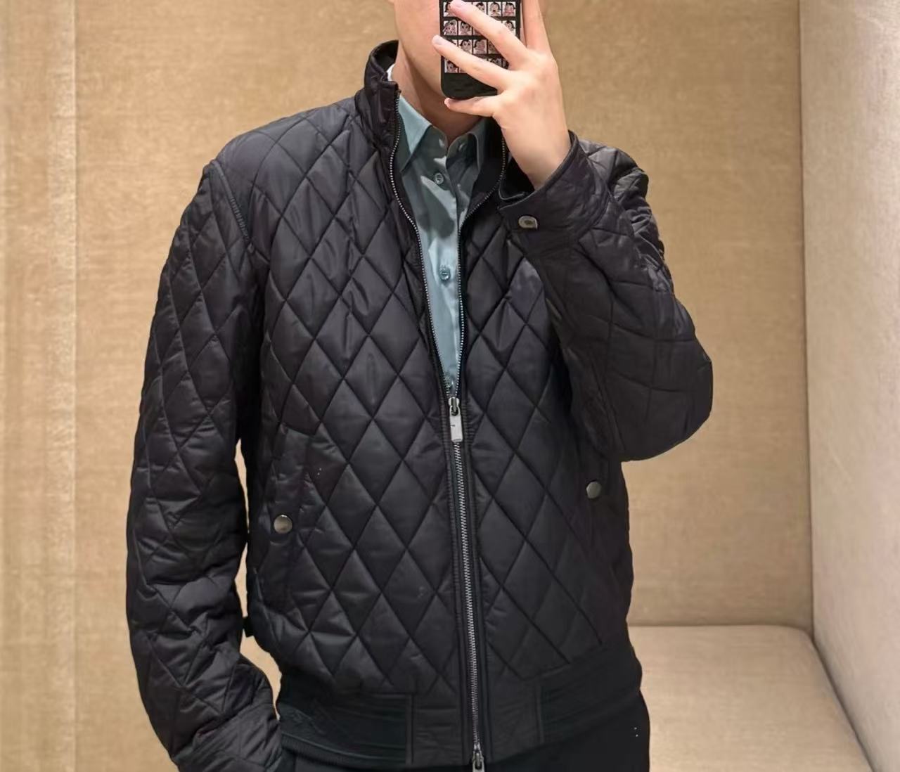 精準剪裁:這件棉衣的對格對位剪裁,完美展現了品牌的工匠精神,讓整件外套看起來更加簡潔俐落。