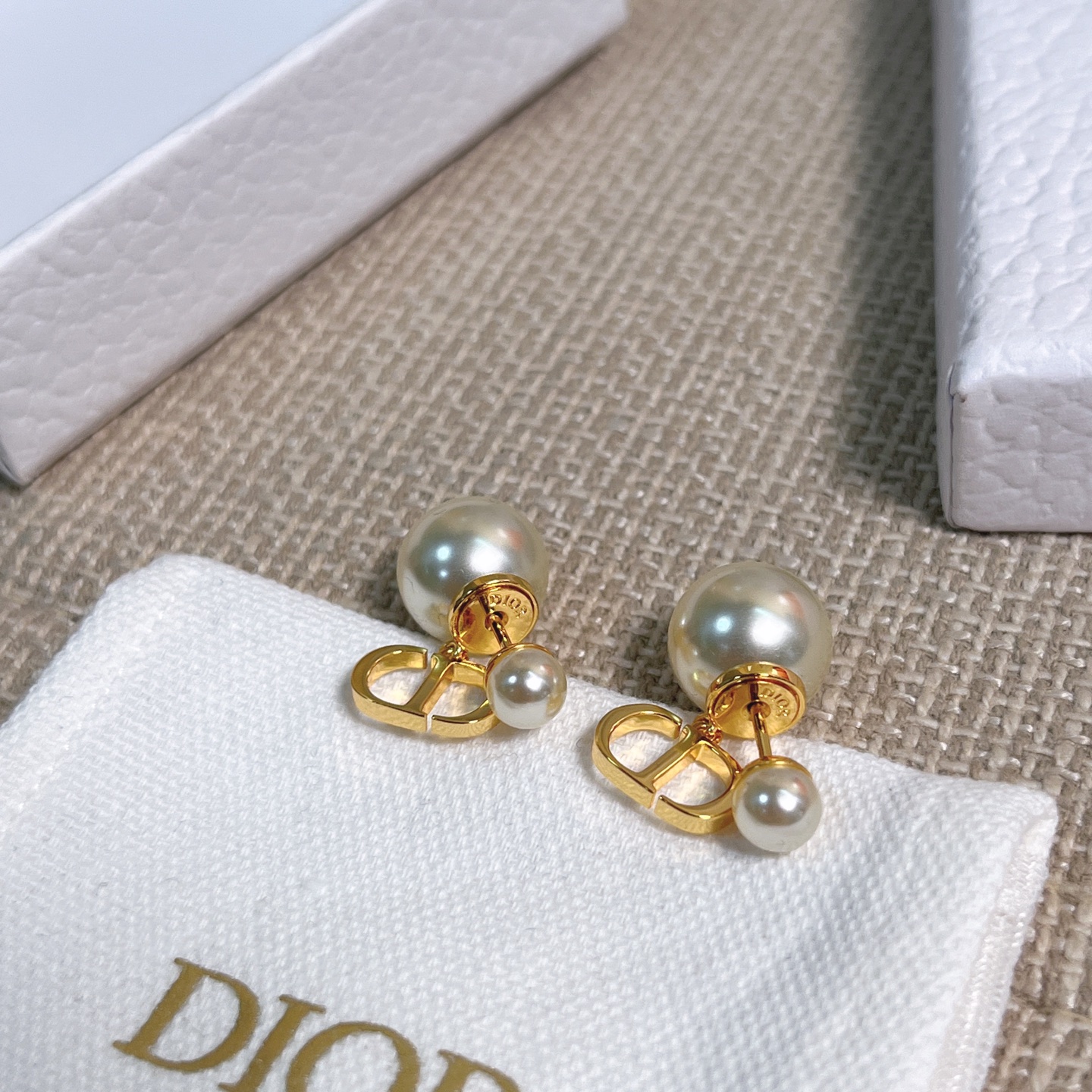 2025秋冬新品 D家 無鑽小CD雙珠耳環