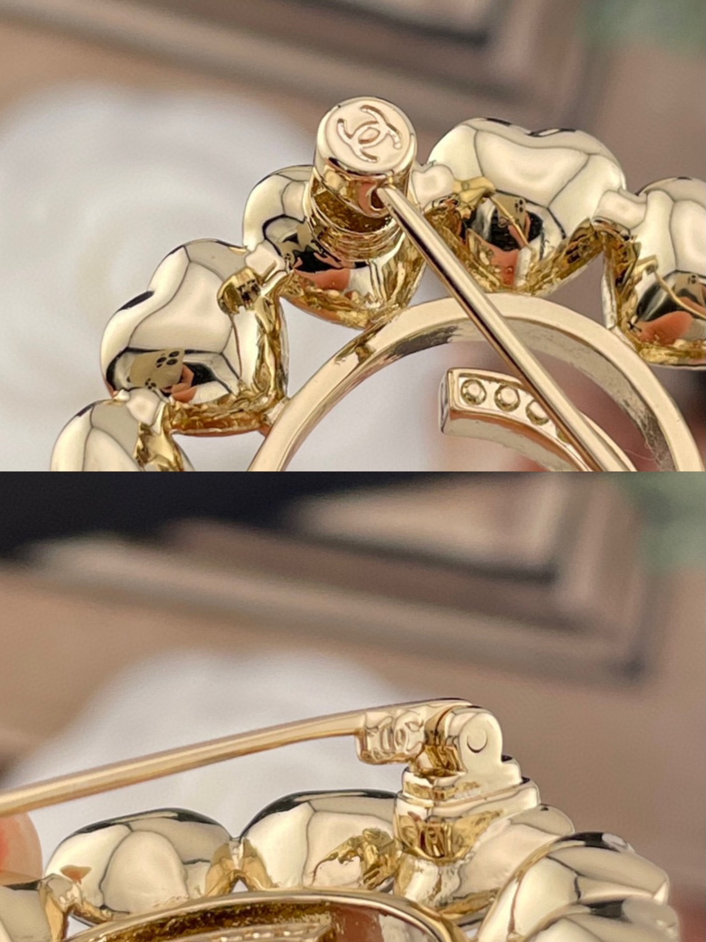 胸針黃銅材質,並搭配特別定制的進口平底愛心鑽,細緻工藝呈現極佳光澤度與牢固度。