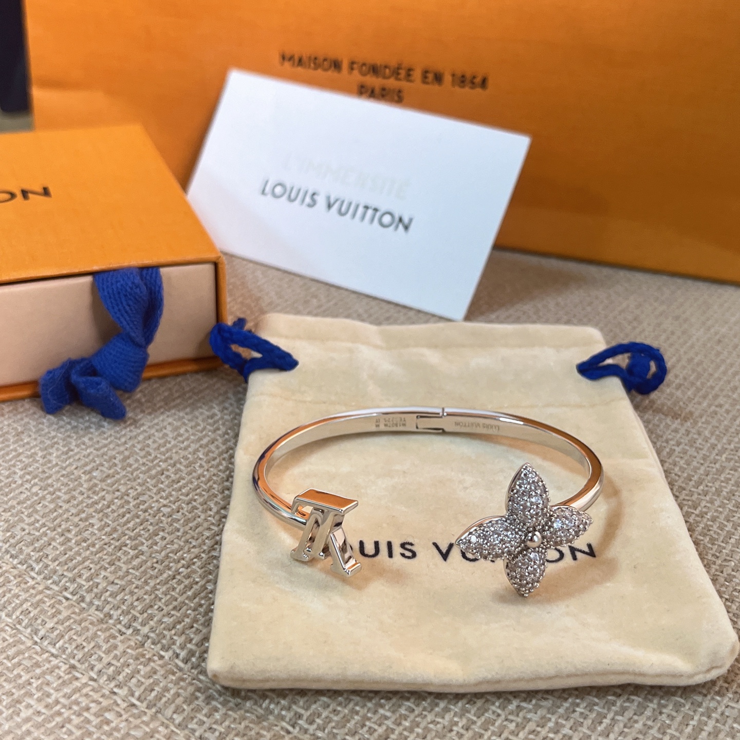 四片花瓣以滿鑽鑲嵌呈現,細緻排列的晶鑽在光線下折射出耀眼光澤,中央點綴 LV 字母標誌,低調中帶有極高辨識度。整體比例拿捏得剛剛好,不浮誇卻足夠吸睛。