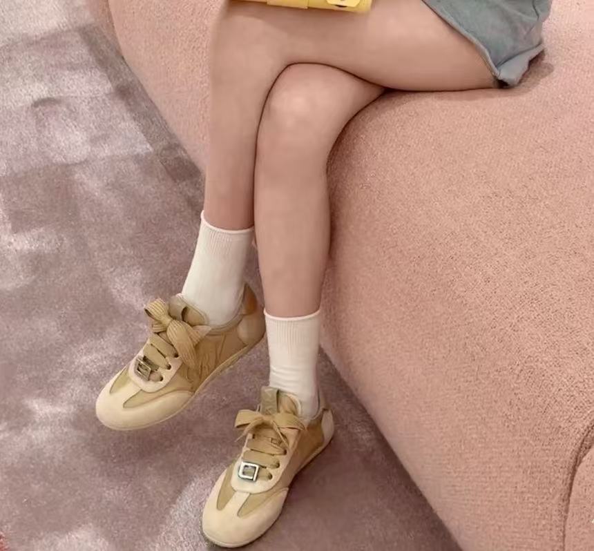 這雙鞋子的版型也是一絕!圓頭設計對腳型非常友好,完全不會有壓迫感。鞋頭微微凸起的設計,可愛又大氣,讓你看起來更有型。而且繫帶簡便易穿,對高腳背的女孩來說簡直是福音!鞋口的包邊也進一步保證了上腳的舒適感,完全不會磨腳。