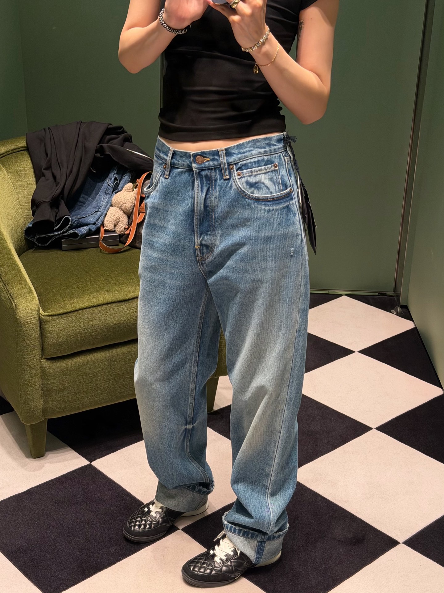 復古水洗藍的色調也非常加分,帶點隨性卻不失質感,無論搭配簡單白T、襯衫或針織上衣,都能呈現出自然又有型的日常穿搭。