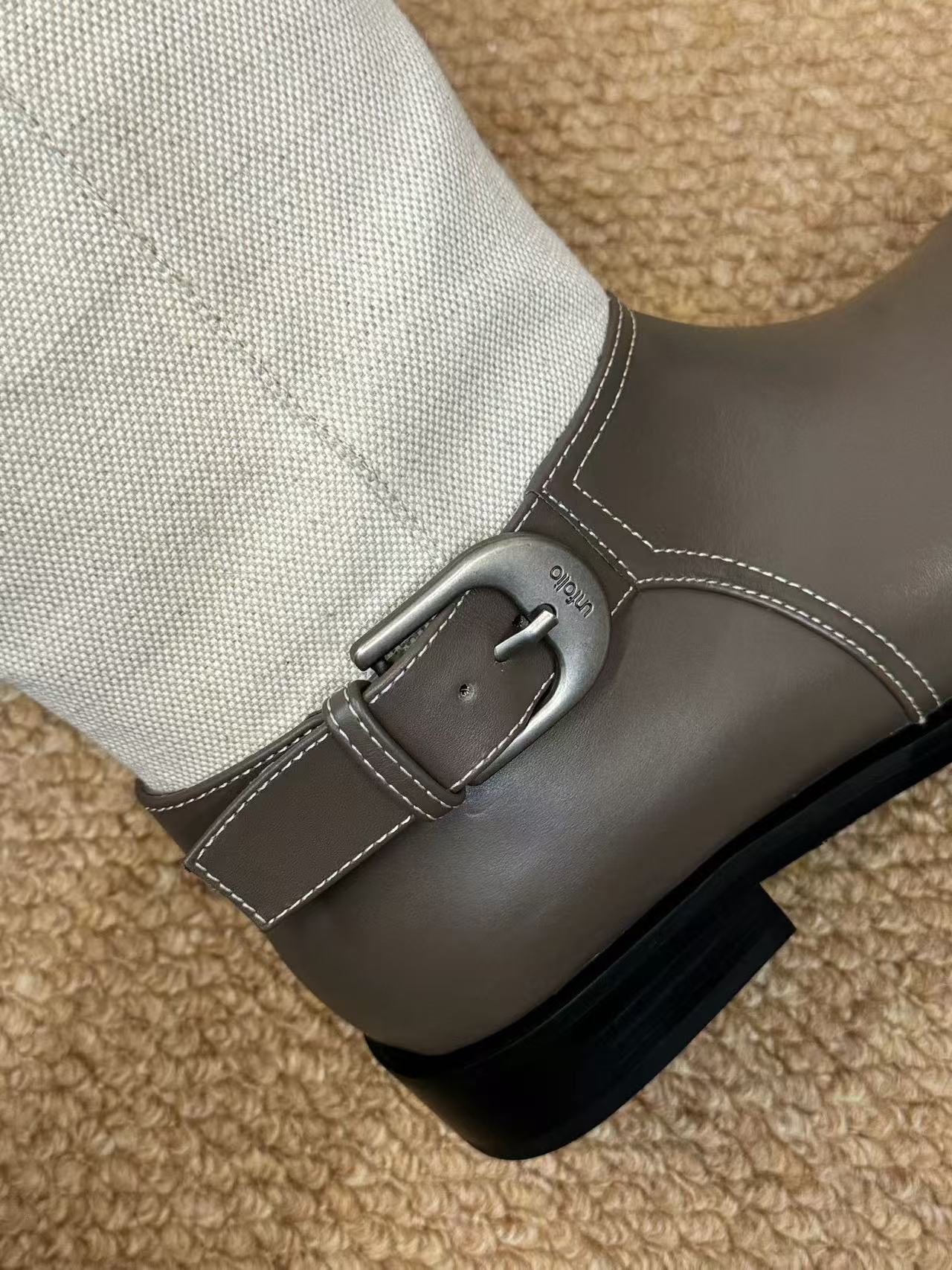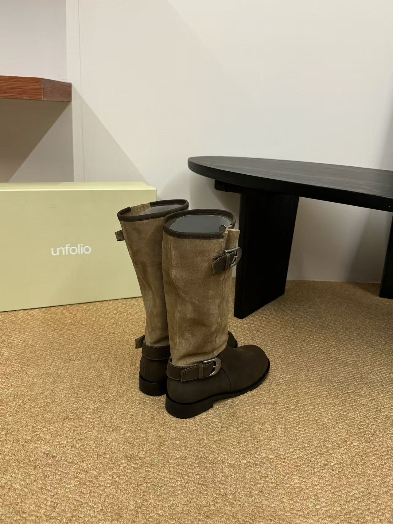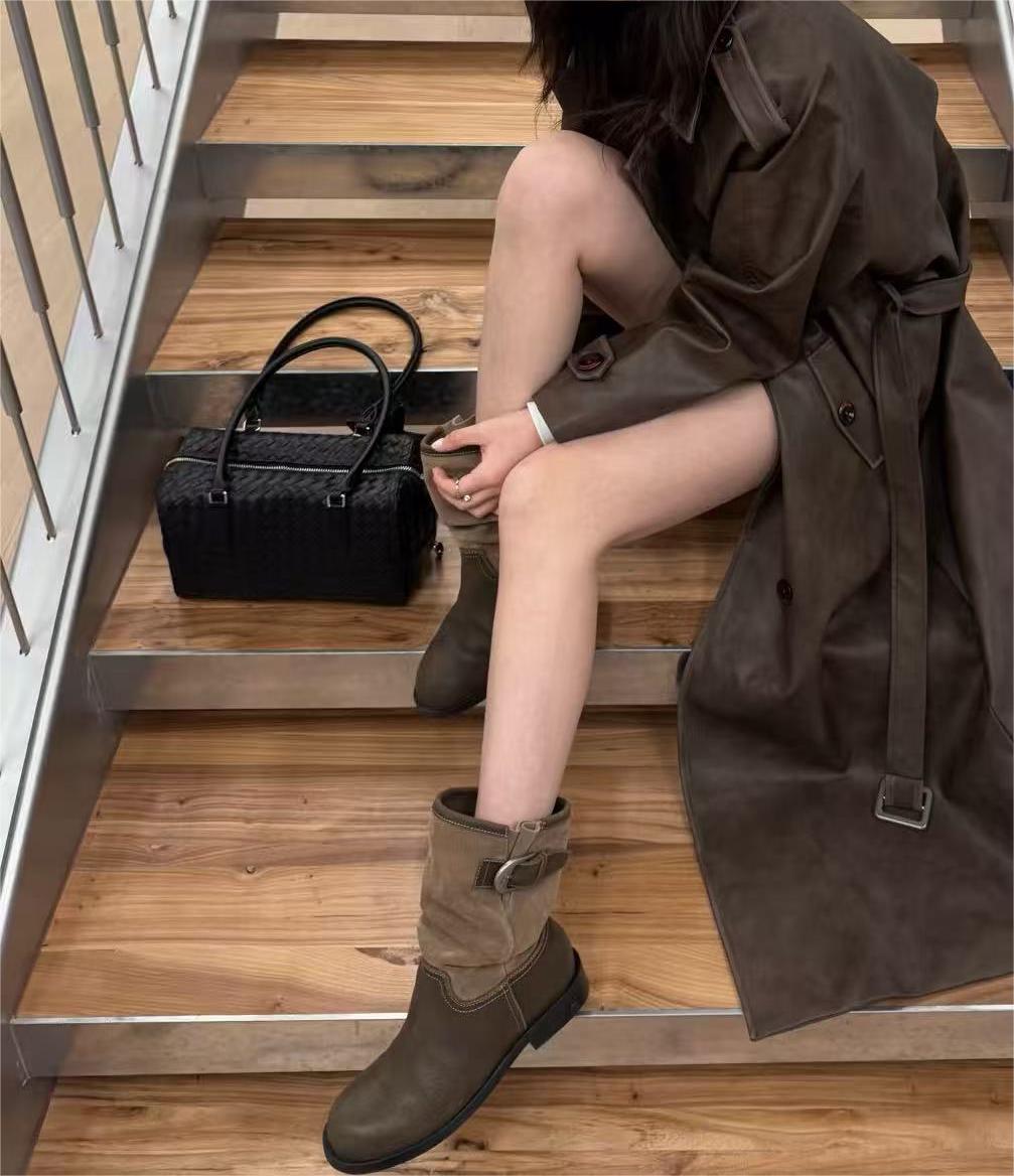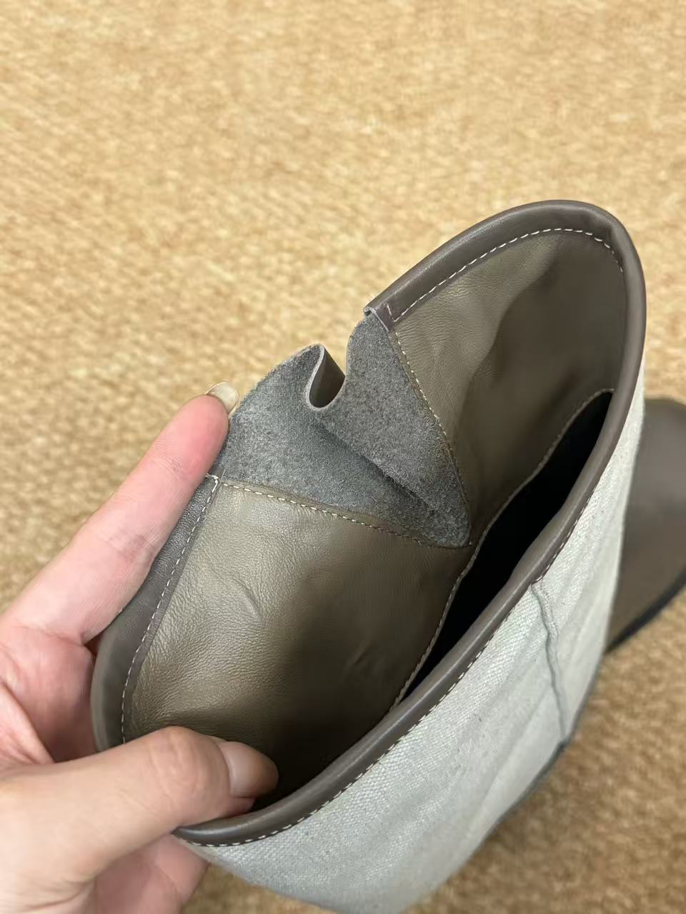 牛反絨觸感細膩到犯規,羊裡包腳零負擔,橡膠大底防滑又耐走。及膝線條拉長腿部比例,側面零多餘設計,低調卻自帶氣場。