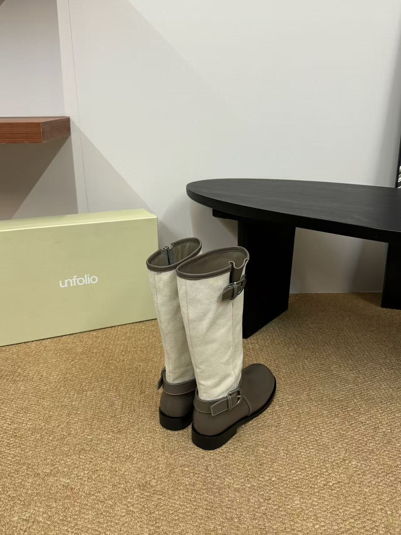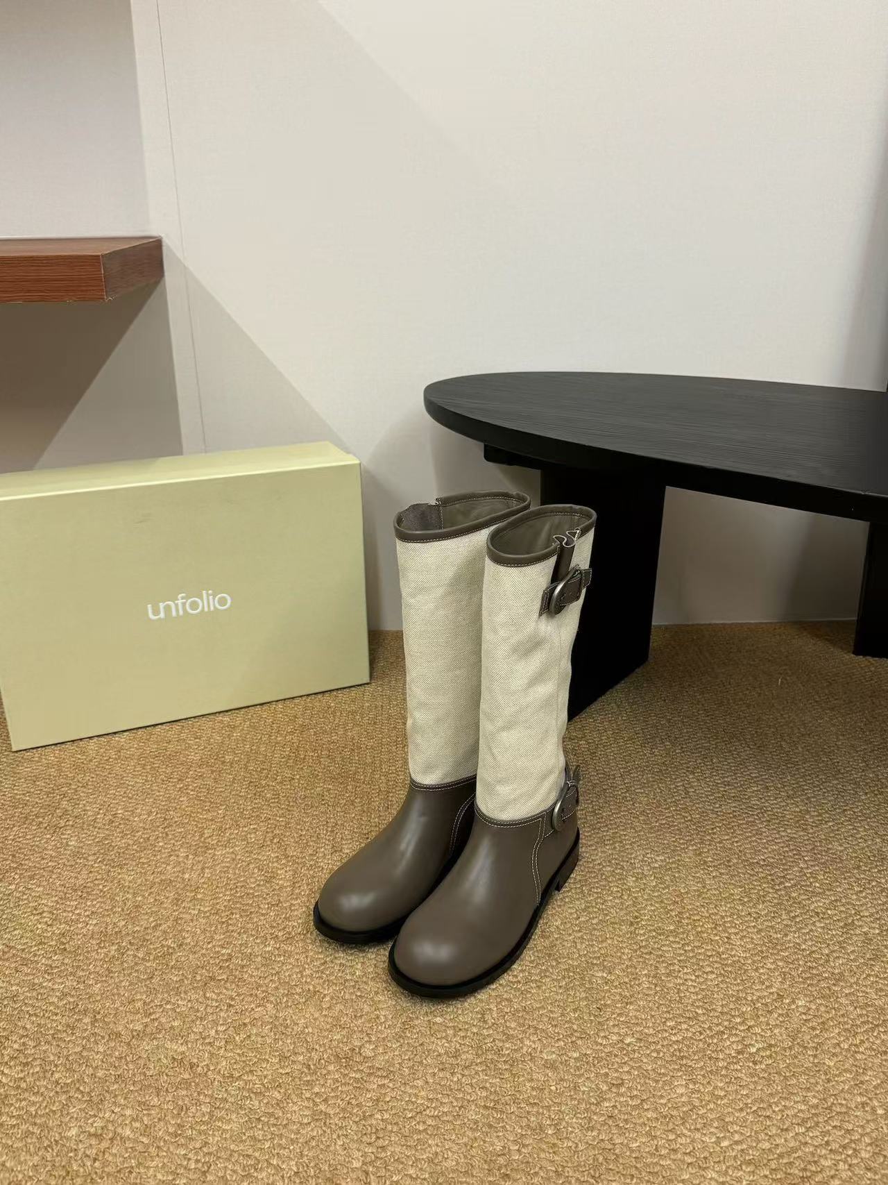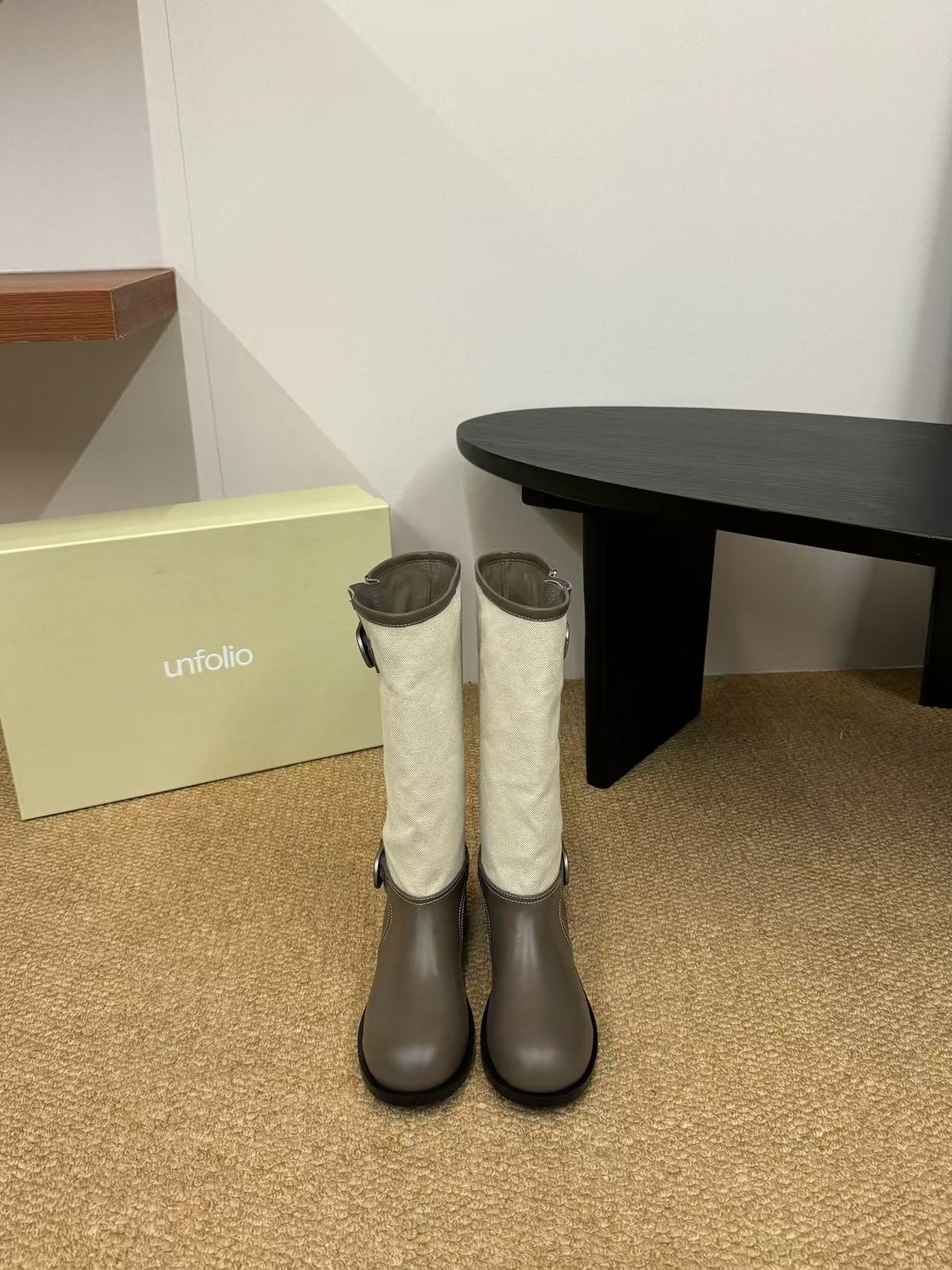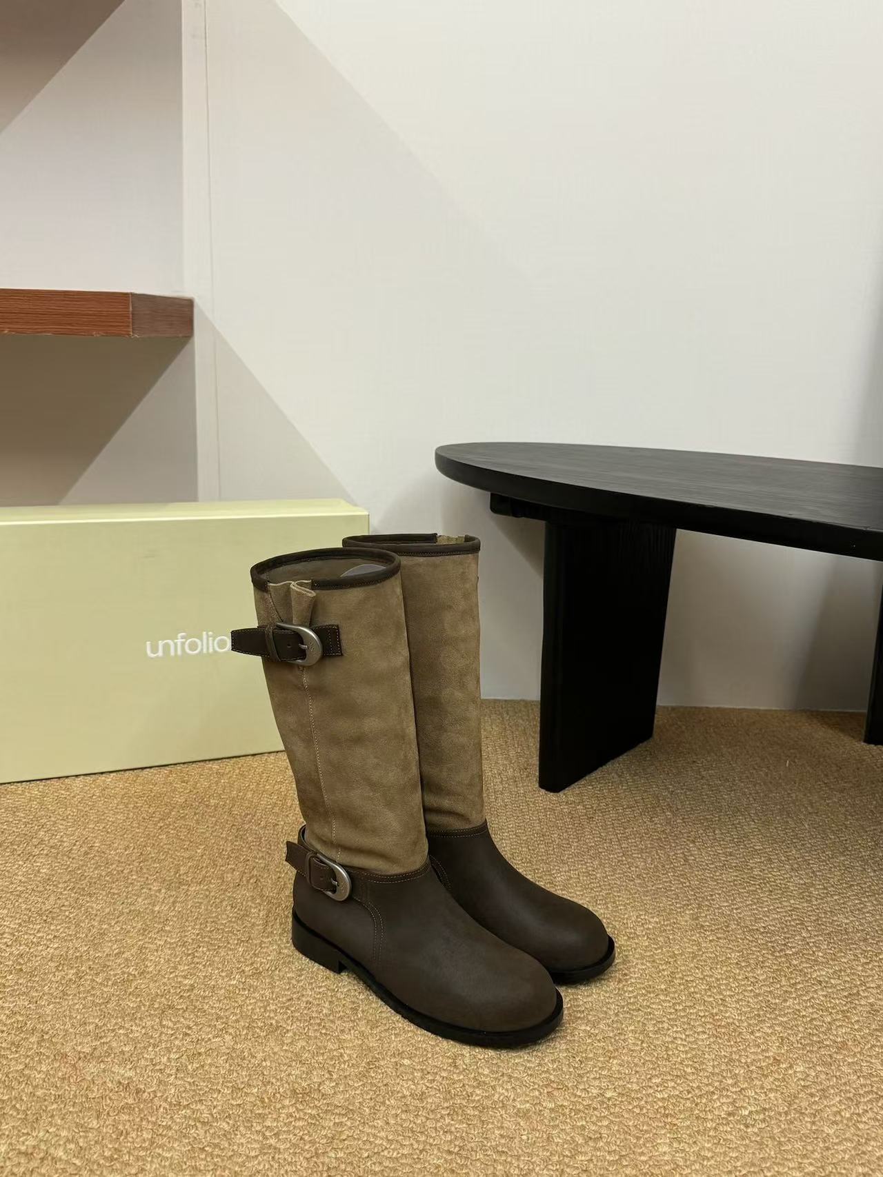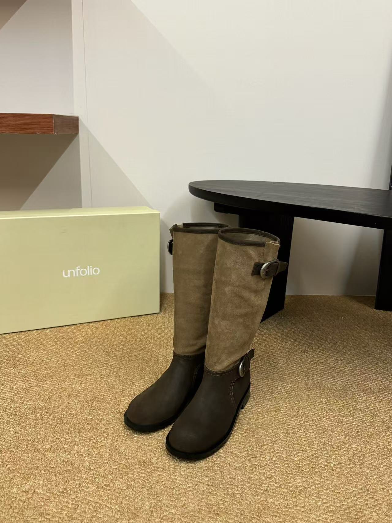 牛反絨觸感細膩到犯規,羊裡包腳零負擔,橡膠大底防滑又耐走。及膝線條拉長腿部比例,側面零多餘設計,低調卻自帶氣場。