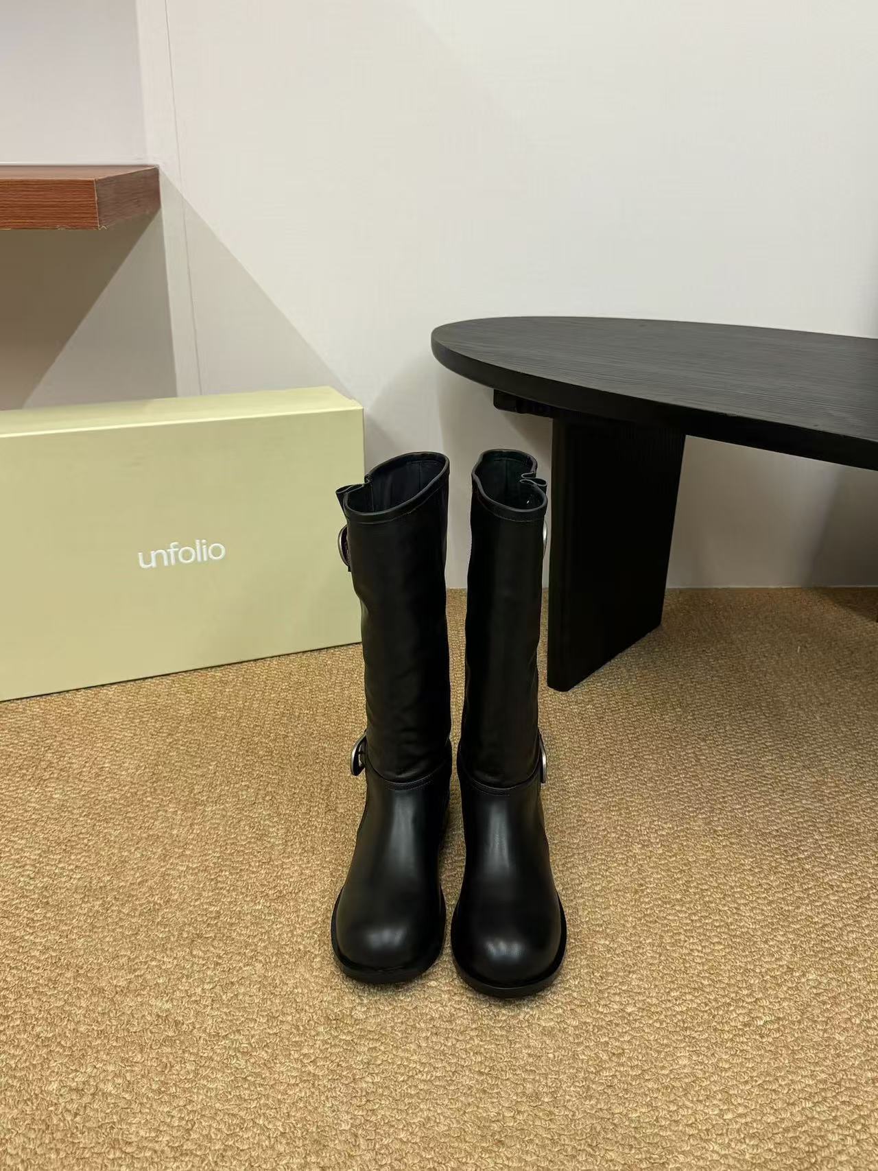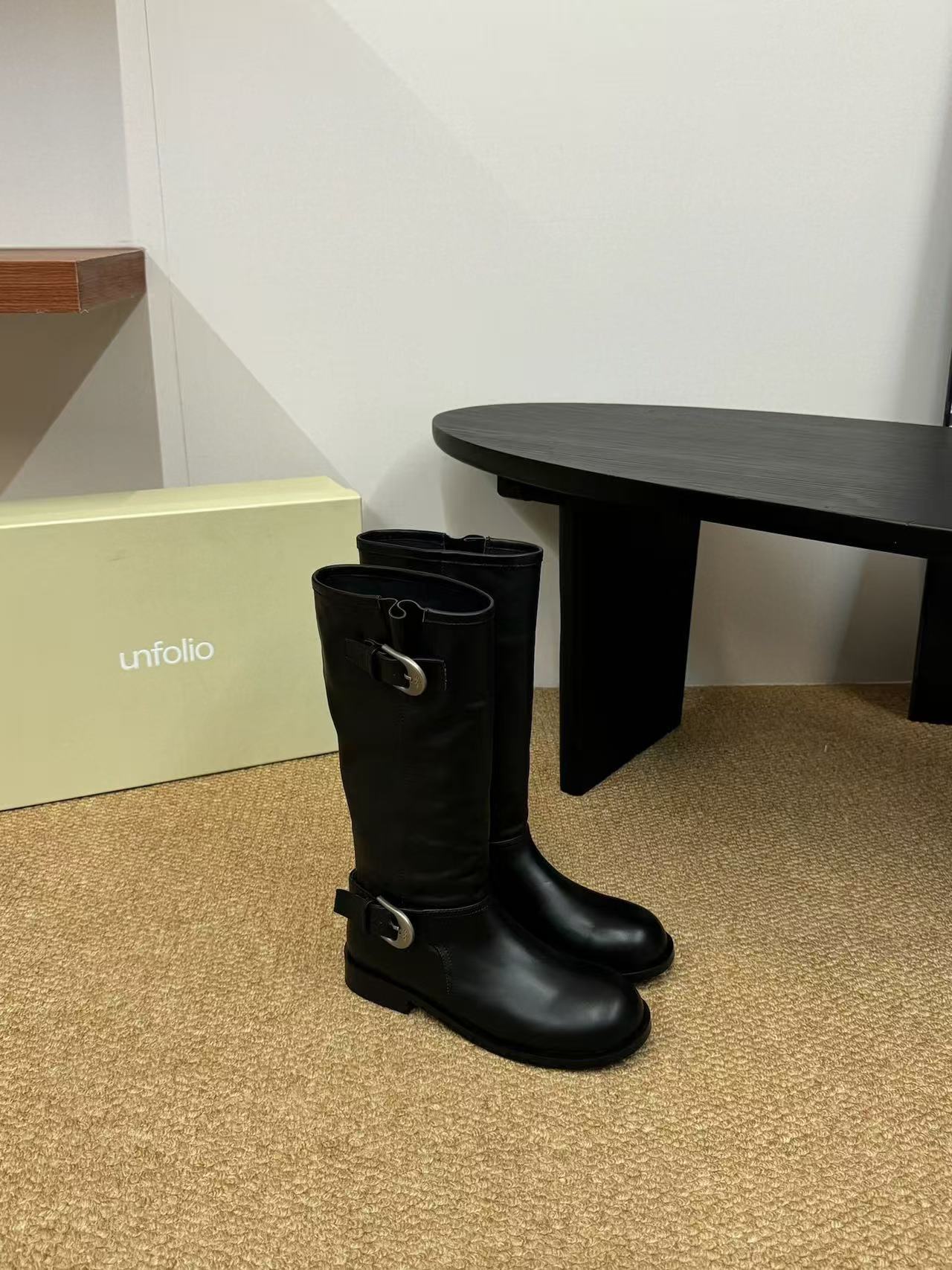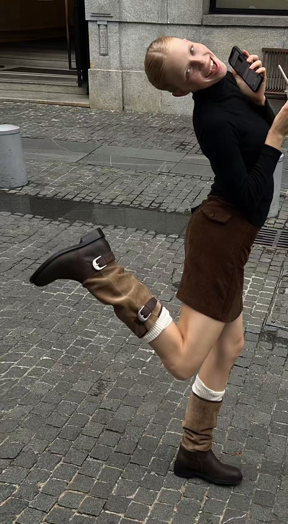 這雙騎士長靴 直接把「鬆弛高級感」穿上腳!告別傳統硬挺束縛,改用 堆疊褶皺 注入呼吸感,靴筒隨步伐自然垂墜,像給硬朗騎士披上柔軟皮革戰衣,颯爽中藏著慵懶。