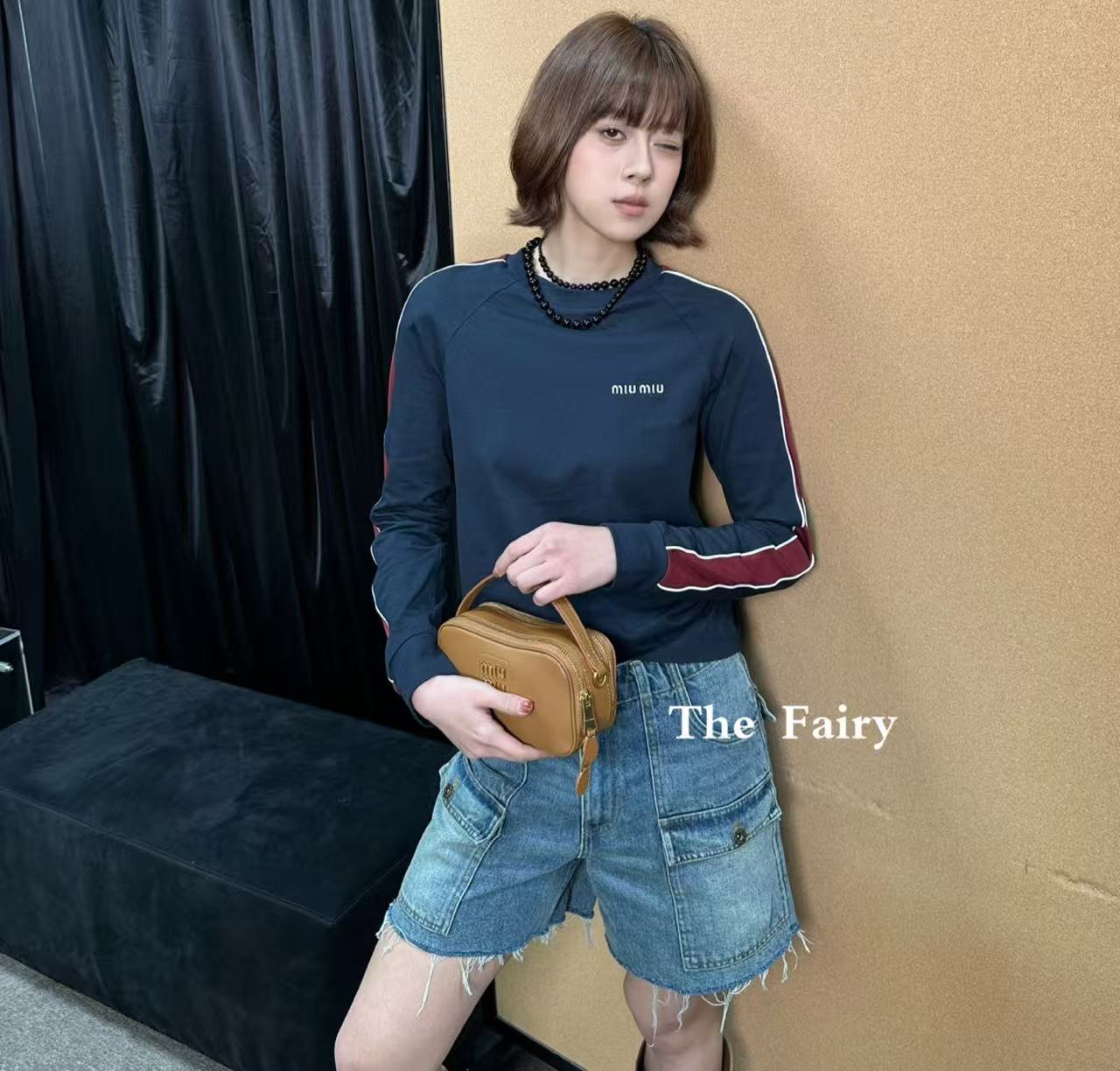運動元素與少女感的結合始終是目光焦點。這次分享的 新品棉質圓領長袖 T 恤,巧妙地將復古賽車元素融入都會穿搭。