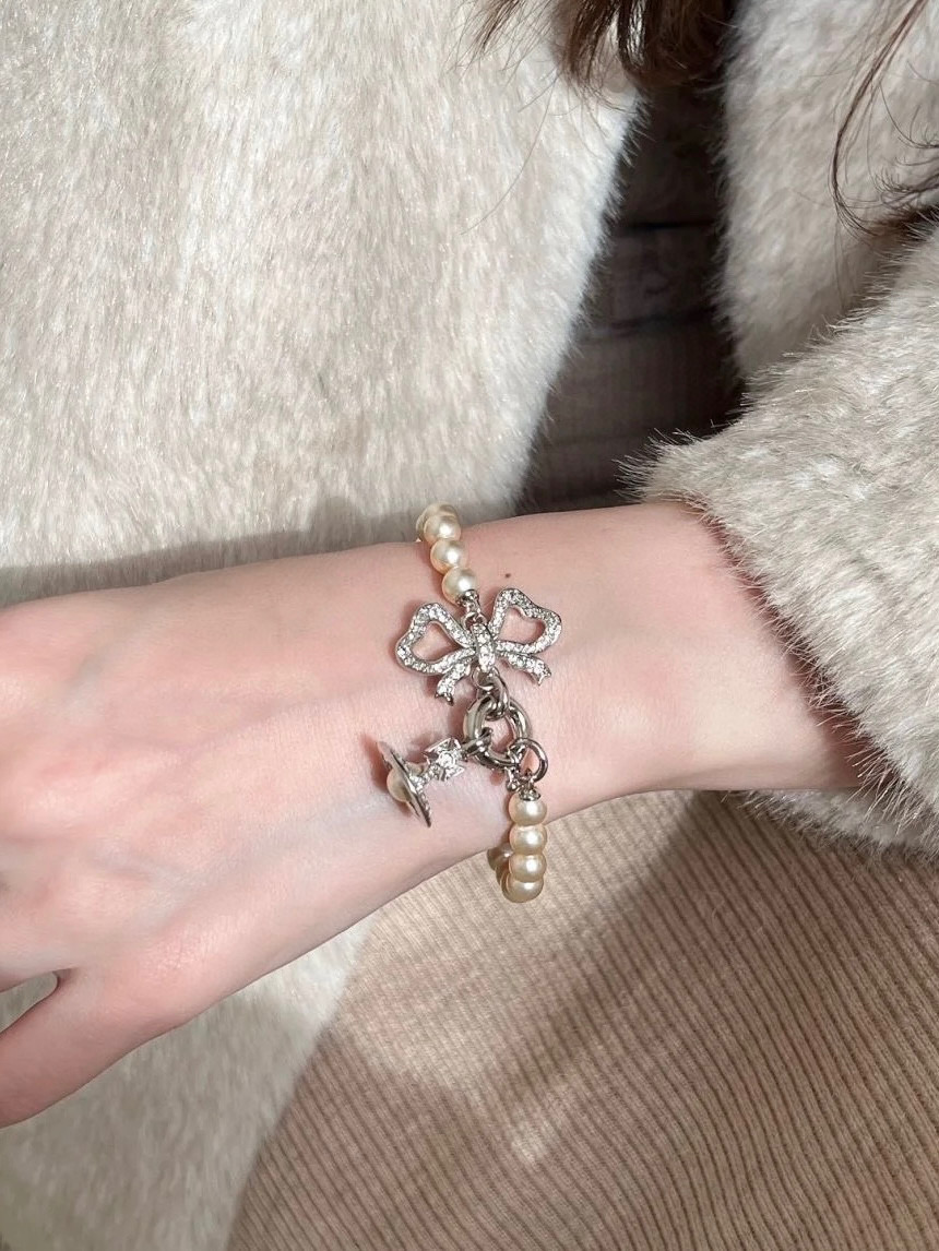 2025秋冬新品 VW家 蝴蝶結土星珍珠手鍊