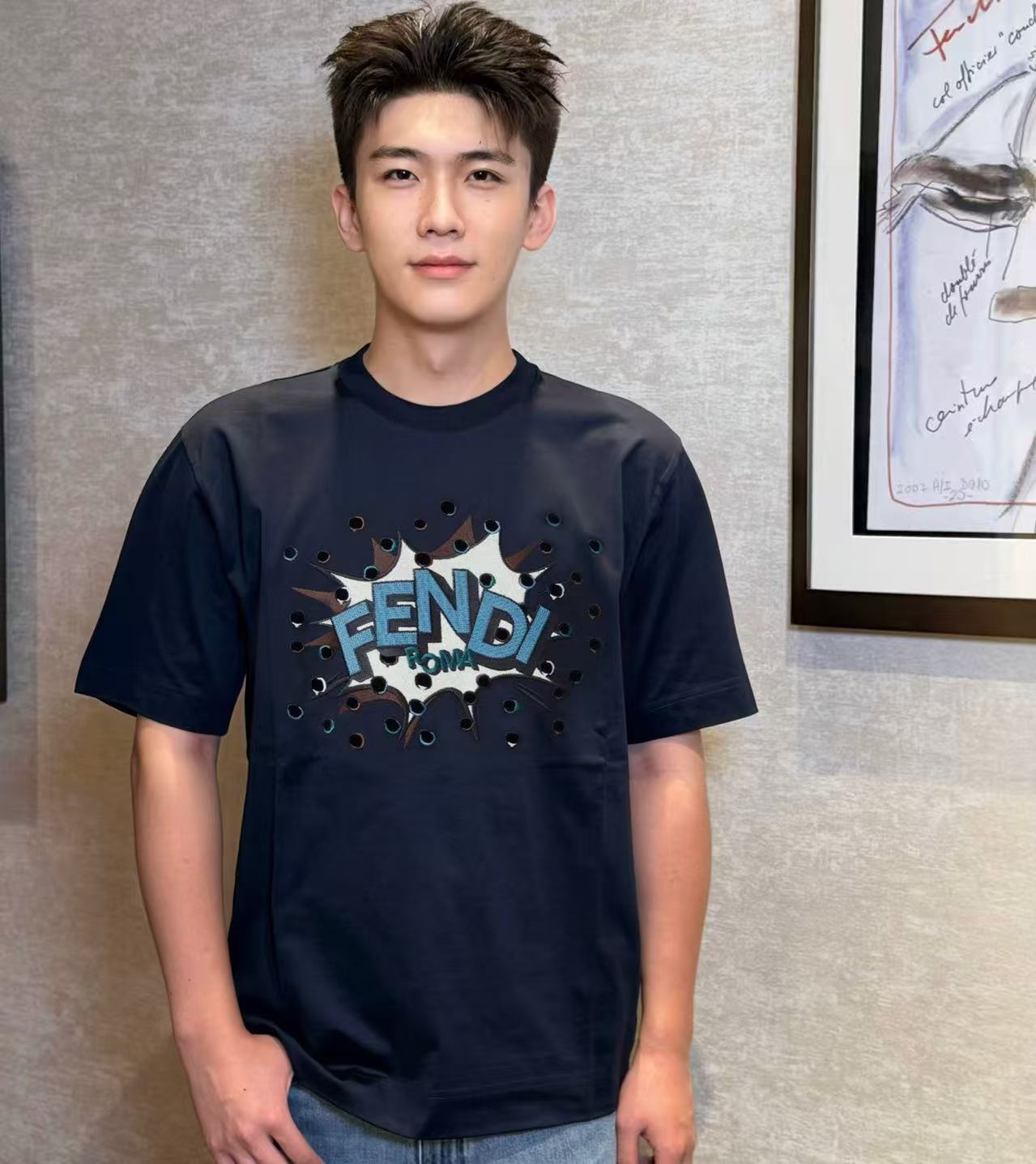 遠看就是一件超乾淨的重磅深藍T,近看才發現胸前那塊「Boompop」撞色貼布繡得立體到爆炸,層次感直接拉滿,隨手一穿就自帶義大利街頭藝術家的隨性貴氣,帥到讓路人自動幫你拍照~