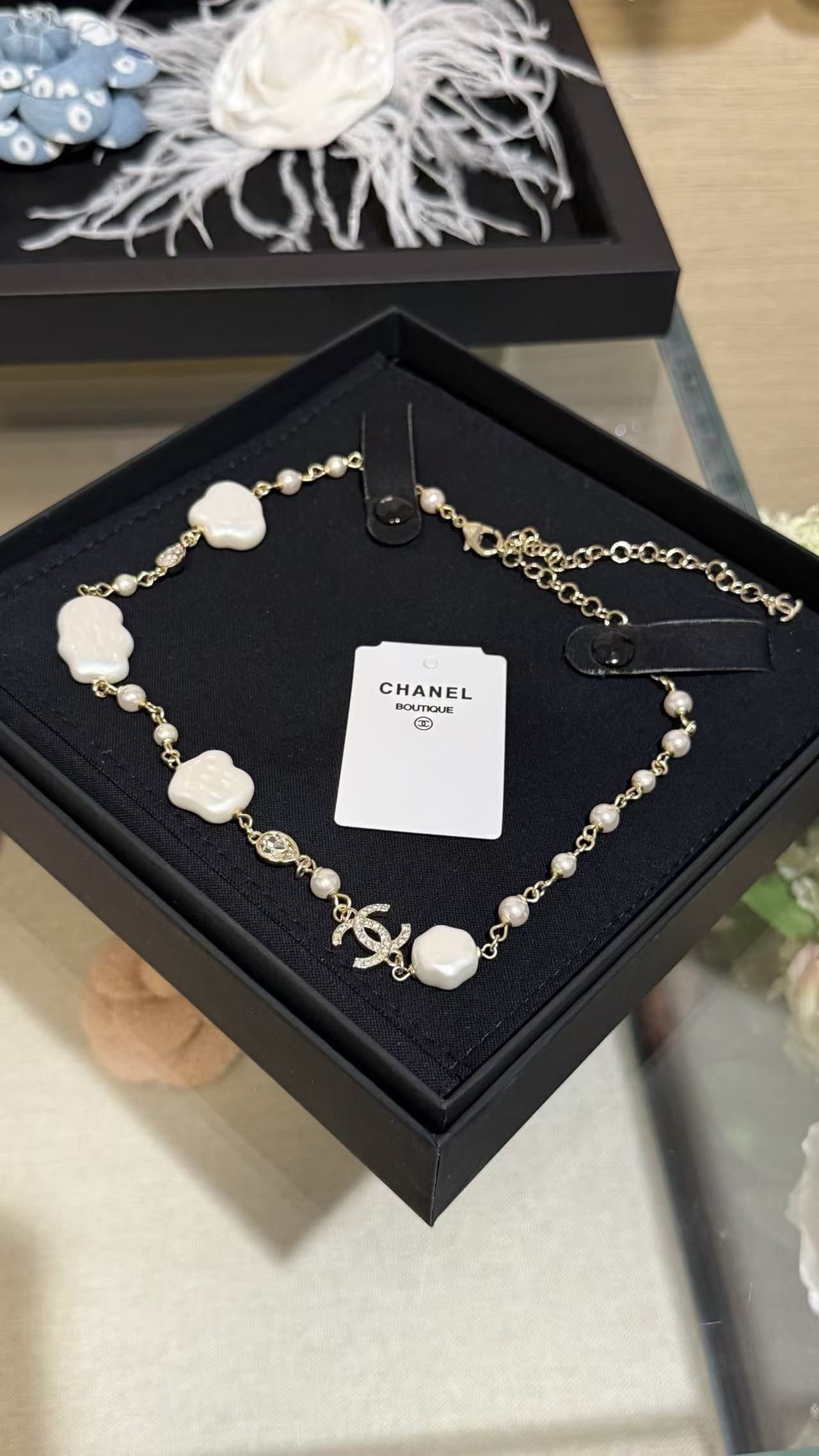 2025秋冬 C家 淺金雲朵滿鑽短項鍊|水滴雙C+珍珠層次,貴氣千金感爆棚!