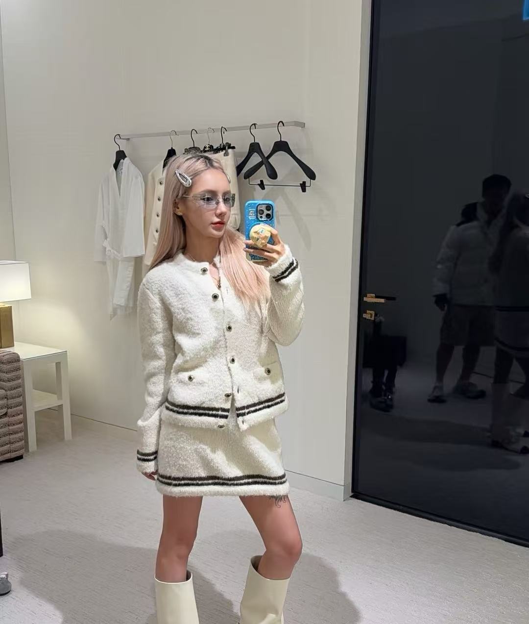 粗花呢保暖舒適,建議搭配高領內搭或靴子,輕鬆打造優雅休閒風。