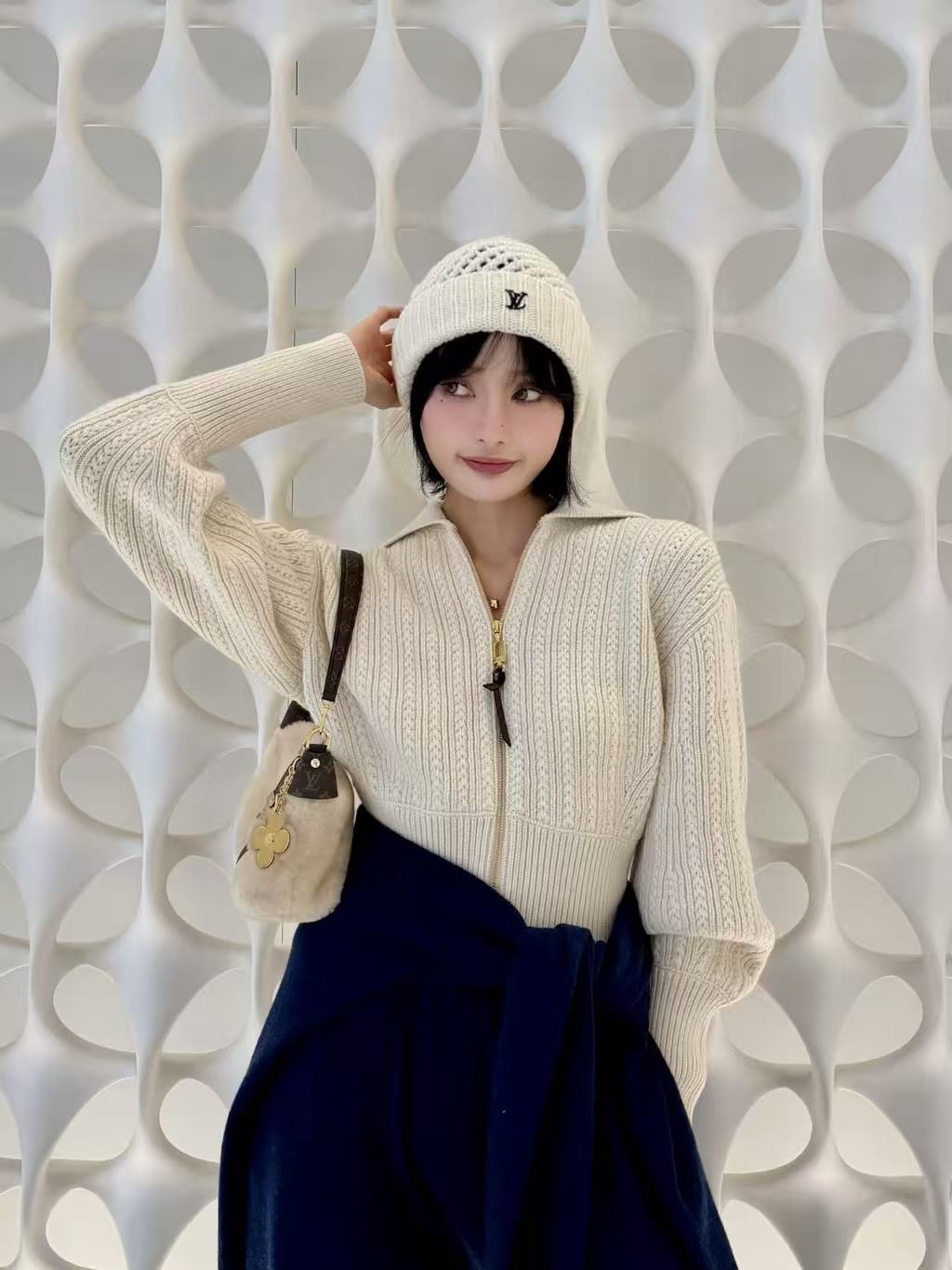 2025秋冬 L家 豎麻花紋拉鍊針織開衫