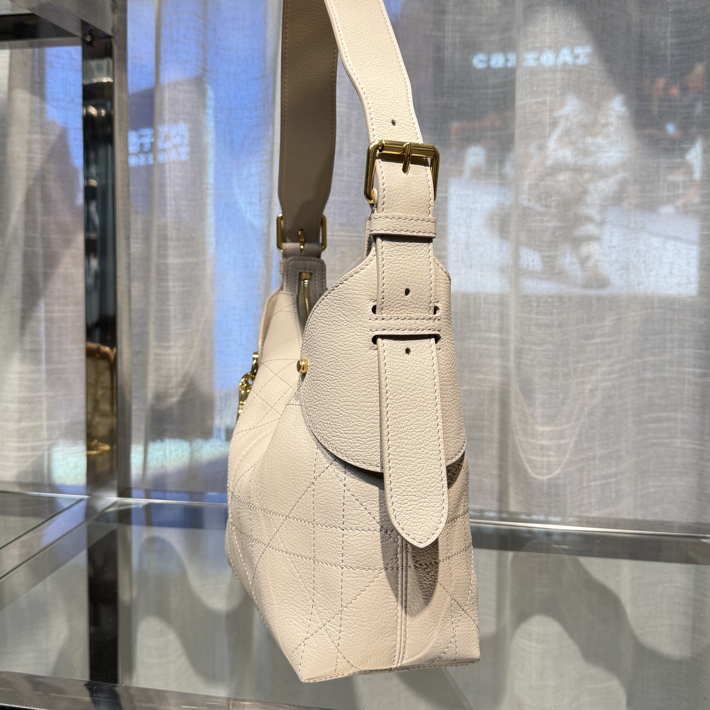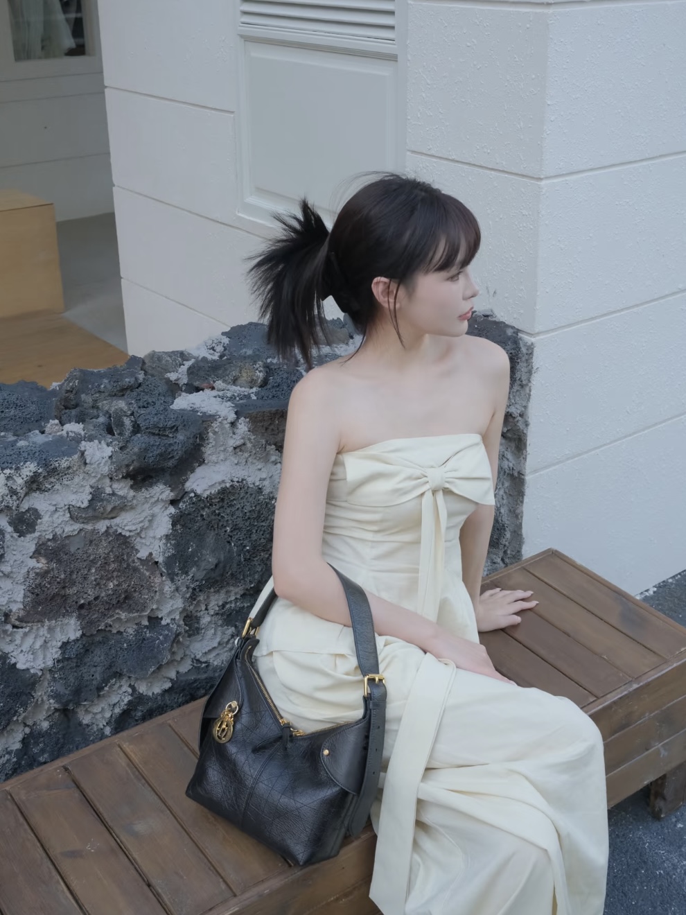 包身比例拿捏得恰到好處,小巧卻能容納日常所需,背起來不僅顯臉小,更是整體造型的亮點之一。