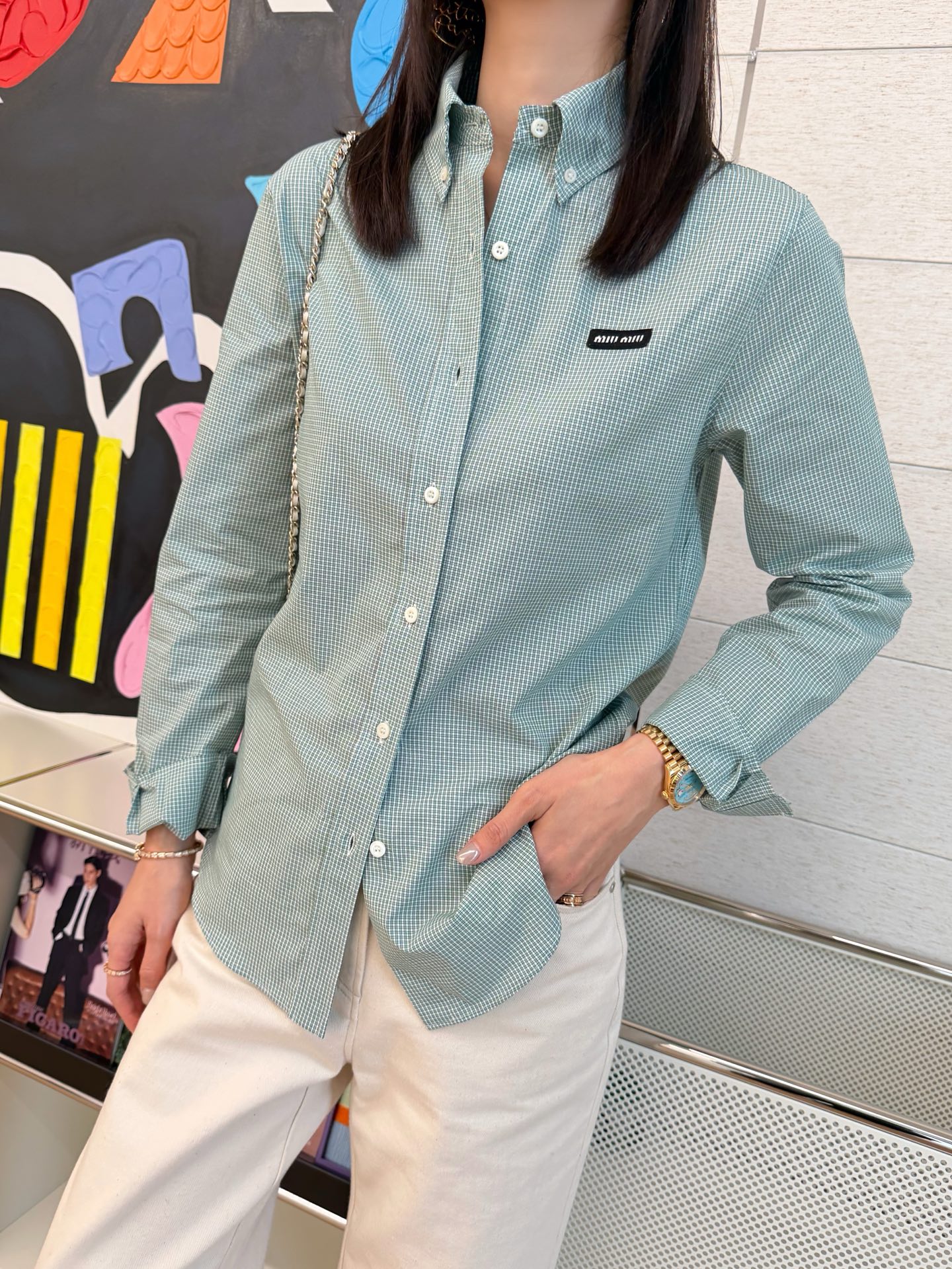 2025秋冬新品 Miu家 綠格紋襯衫