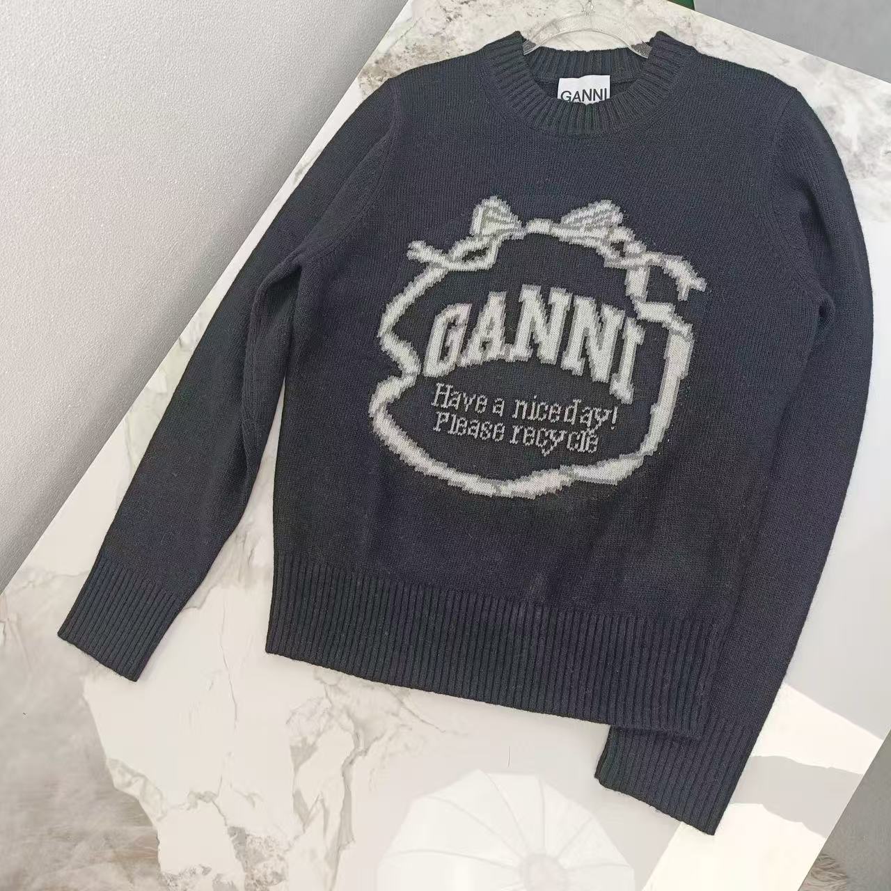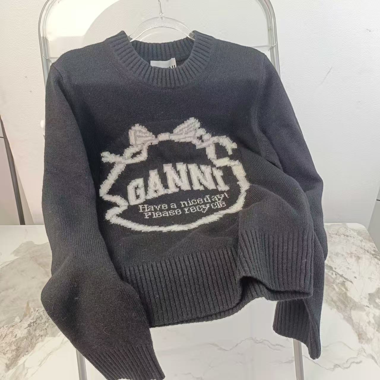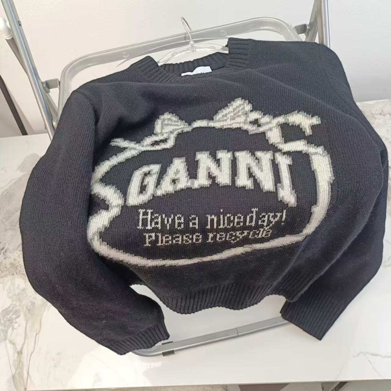 2025秋冬新品 Ganni家 蝴蝶結字母羊毛毛衣