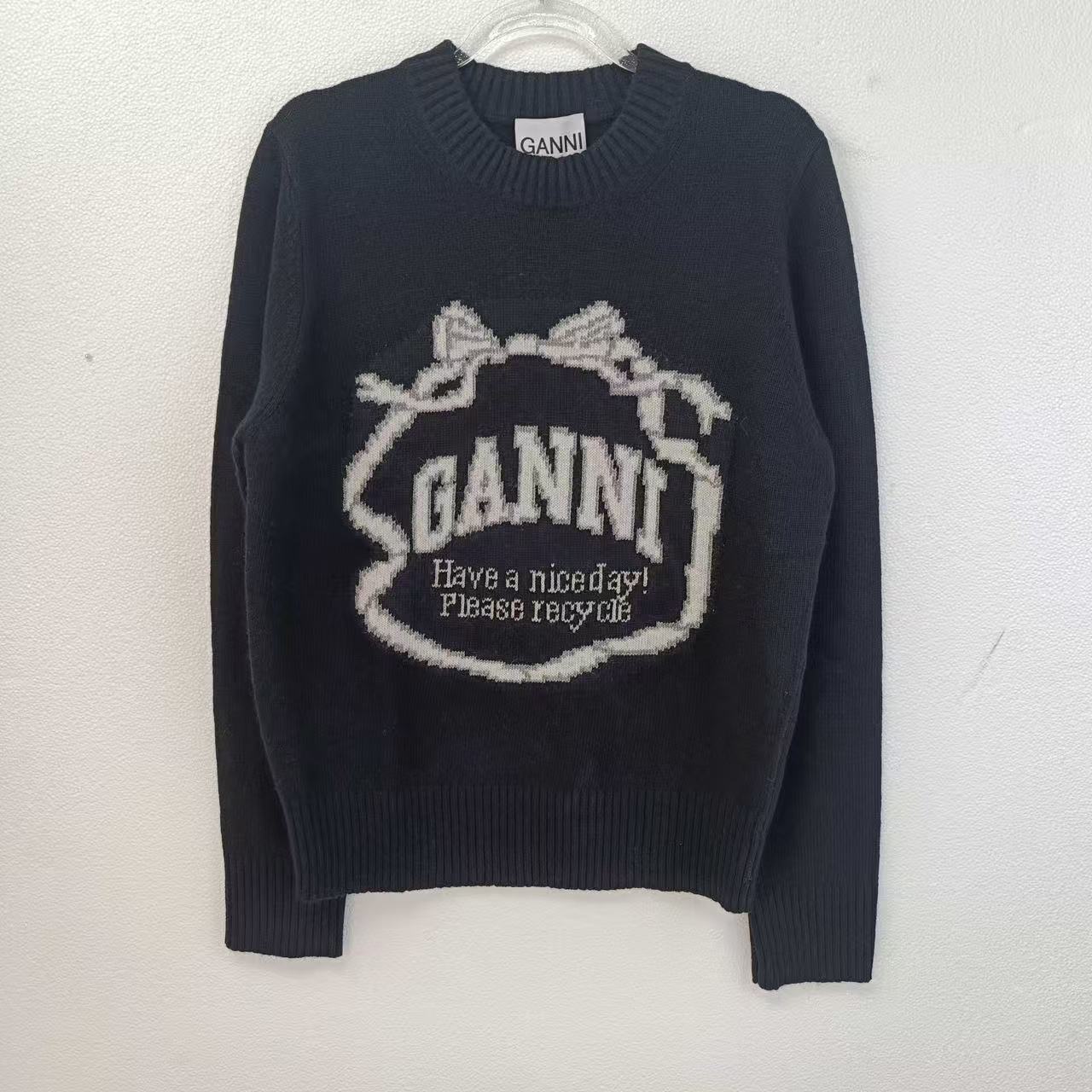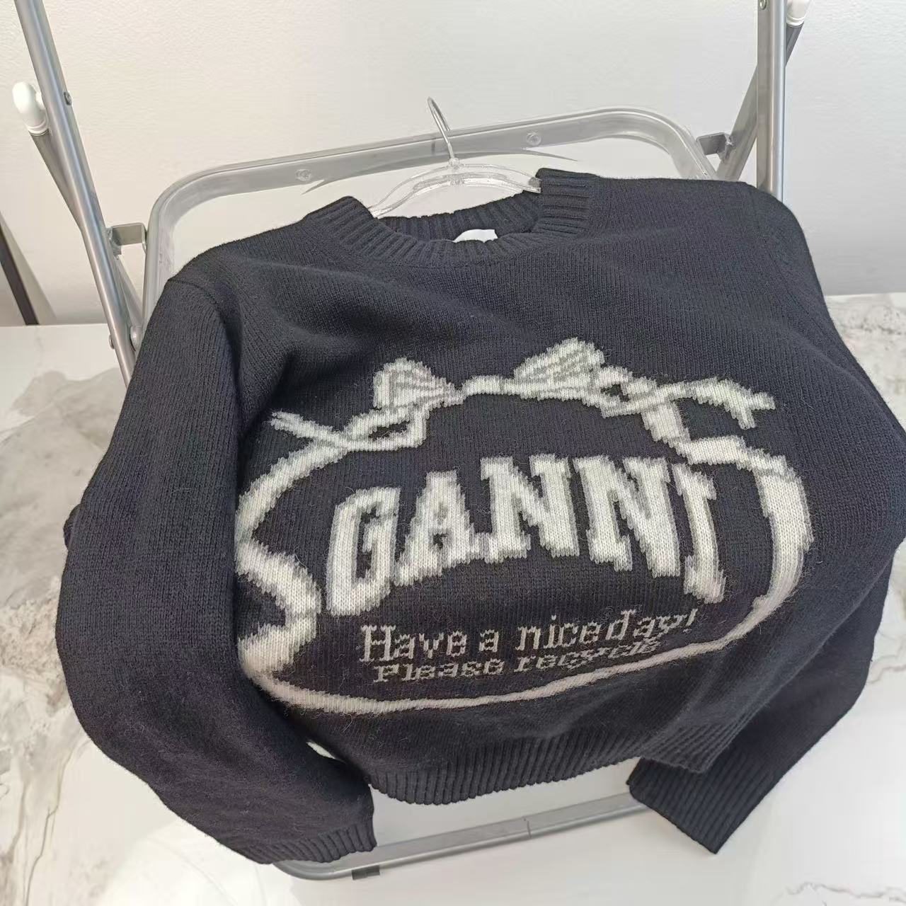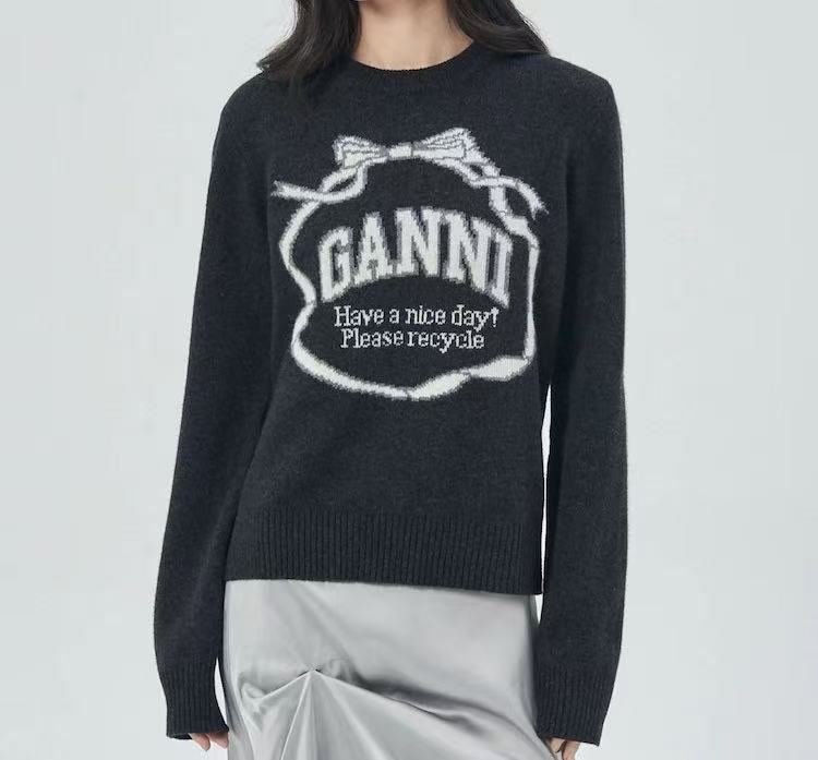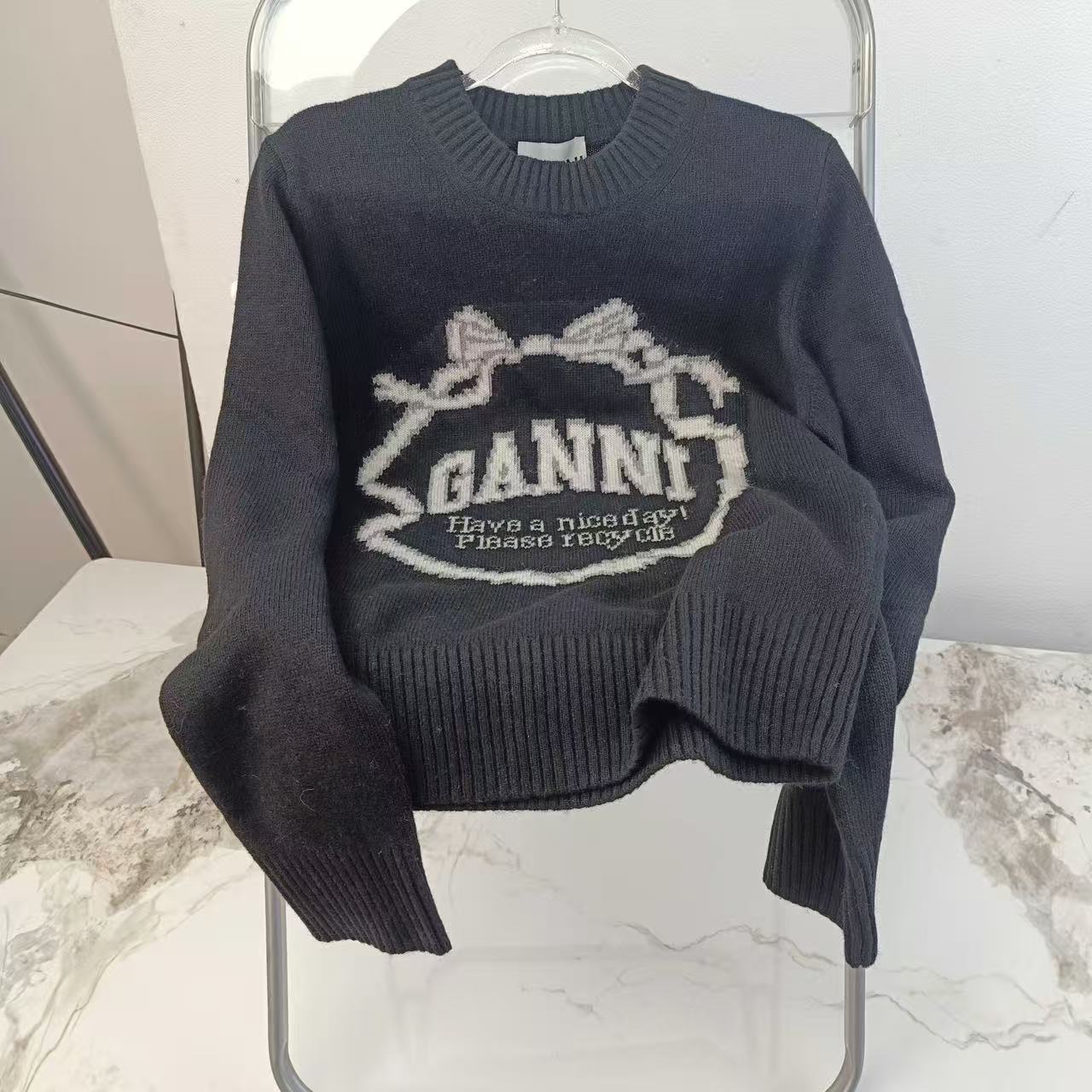 2025秋冬新品 Ganni家 蝴蝶結字母羊毛毛衣