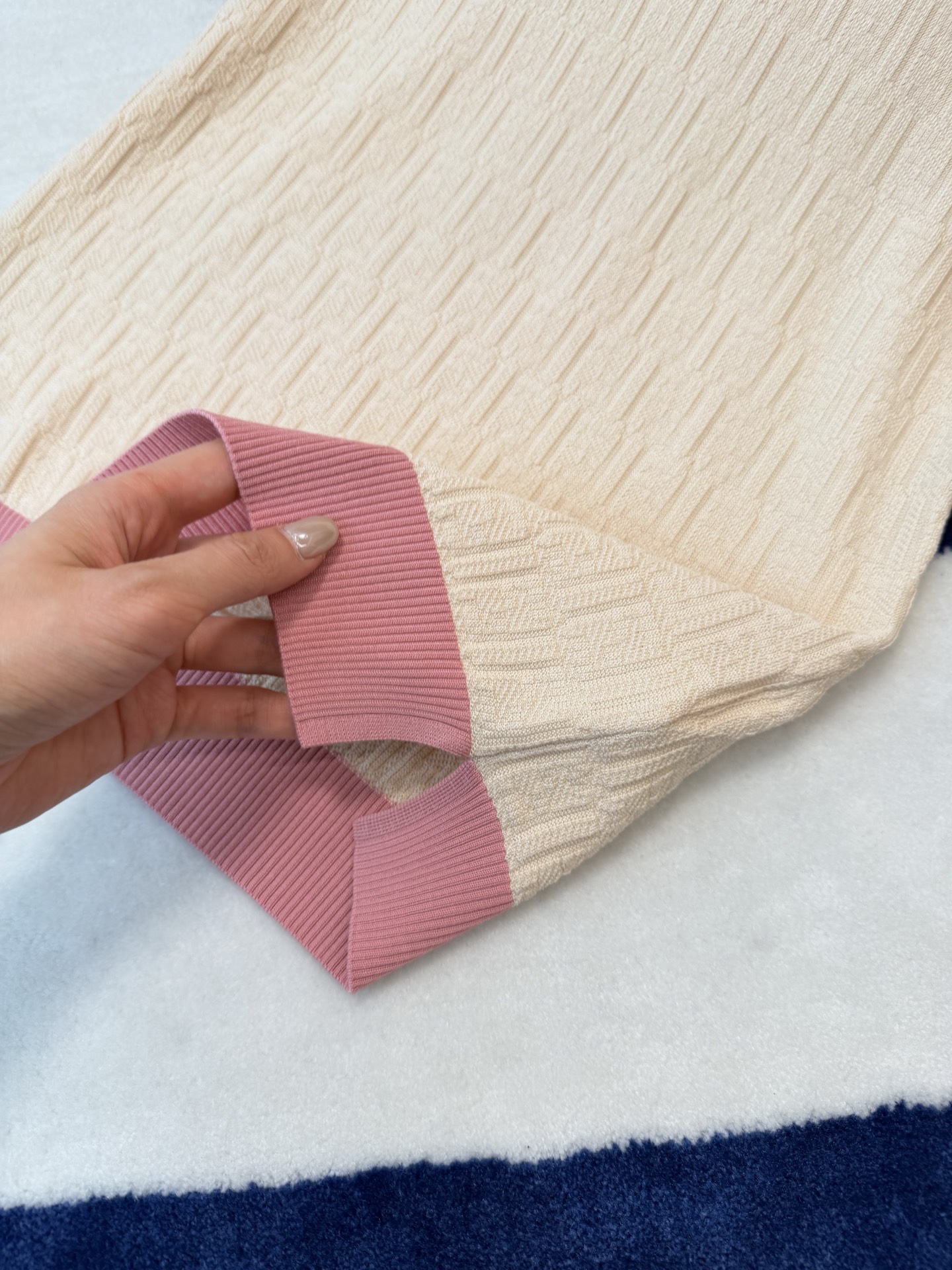 這件屬於那種「看似簡單,但穿上會默默被稱讚」的類型。整體設計走極簡路線,卻透過細膩的撞色搭配,讓視覺更有層次感,輕鬆穿出溫柔又帶點高級的氛圍。