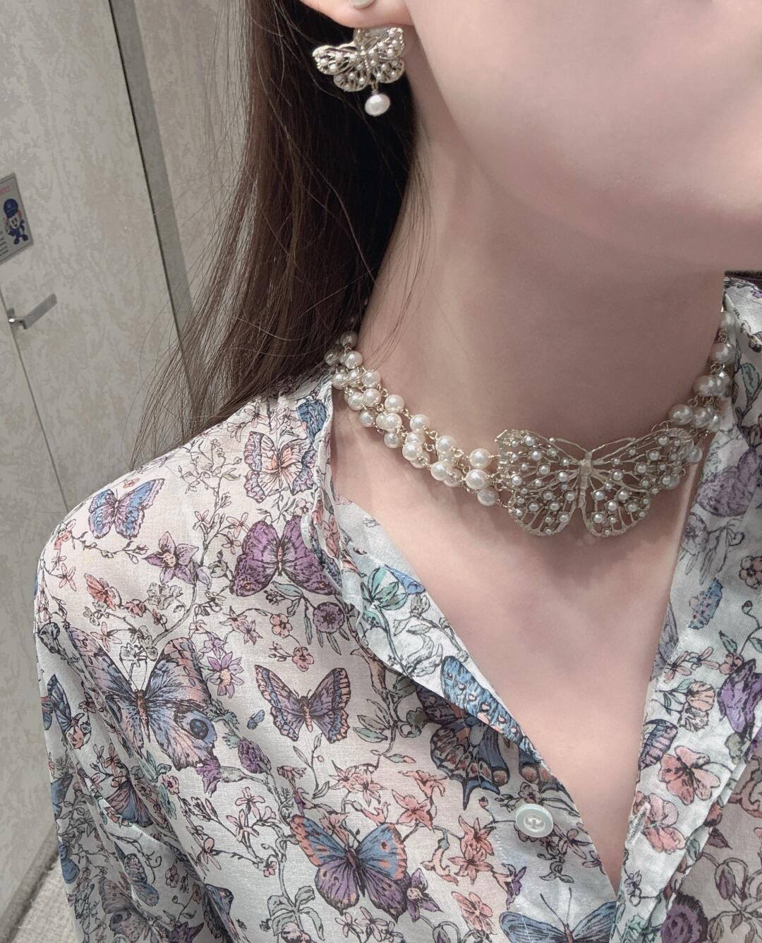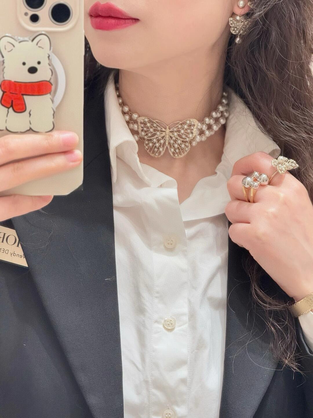 四層珍珠的層次感,不僅讓頸部線條更修長,也充滿了高級珠寶的氛圍,配上蝴蝶元素,更添浪漫感。是那種「第一眼就心動、第二眼更離不開」的單品,特別推薦給喜歡小心機配件的女生。