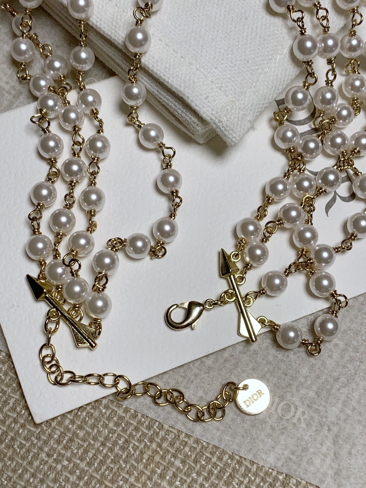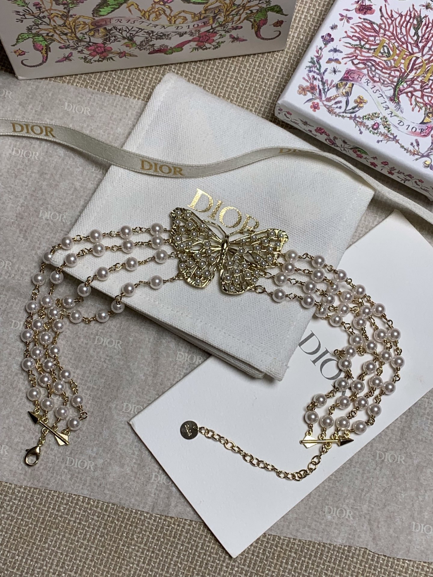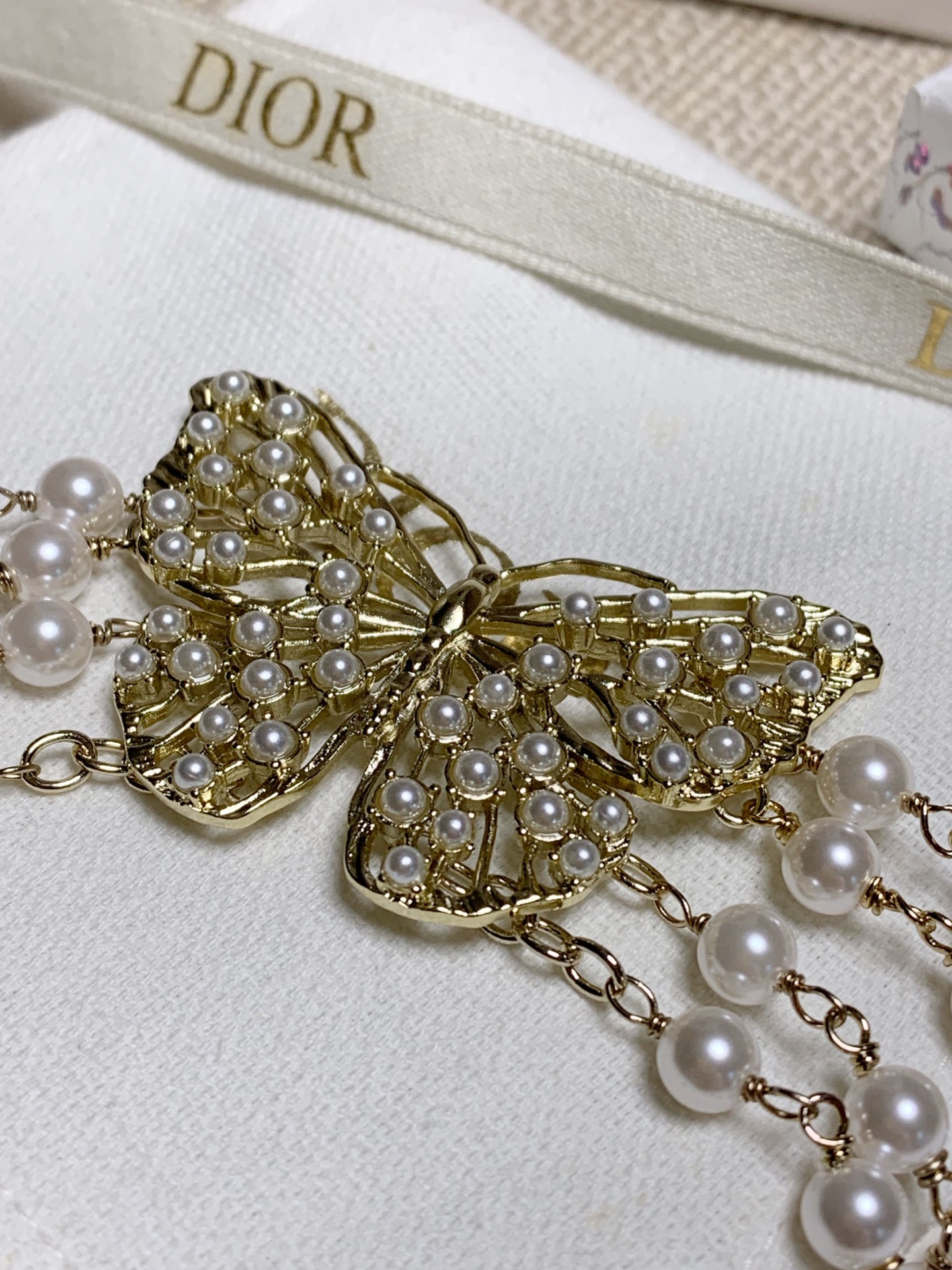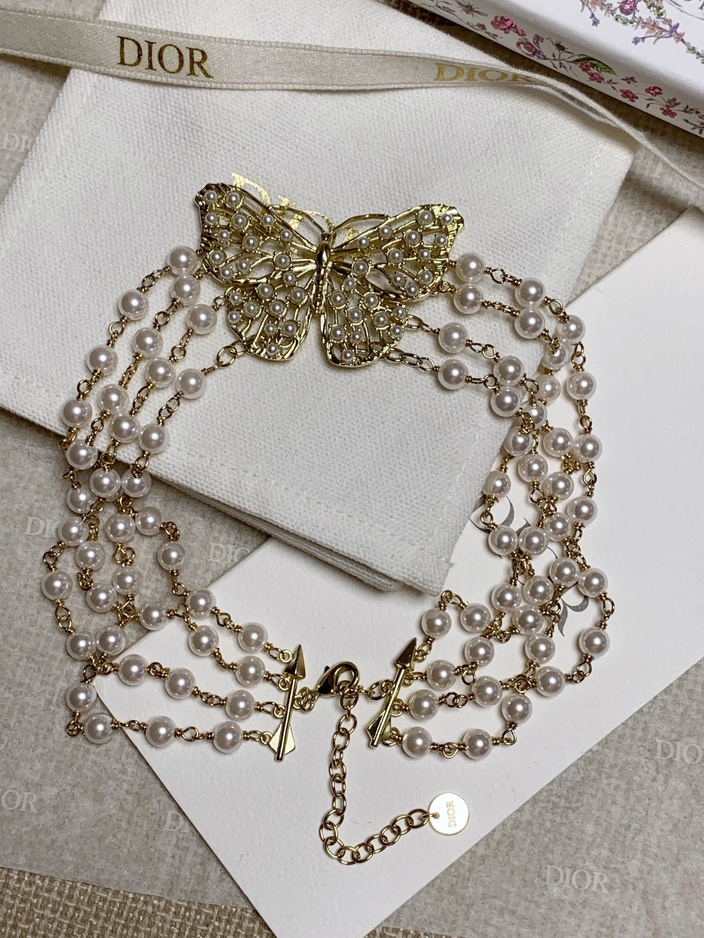 2025早秋新款 D家 四層珍珠鏤空CD蝴蝶項鍊