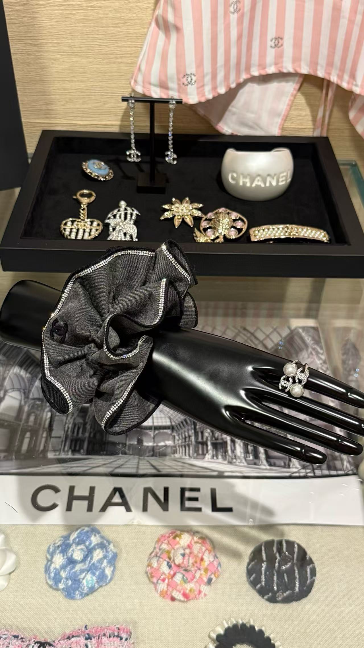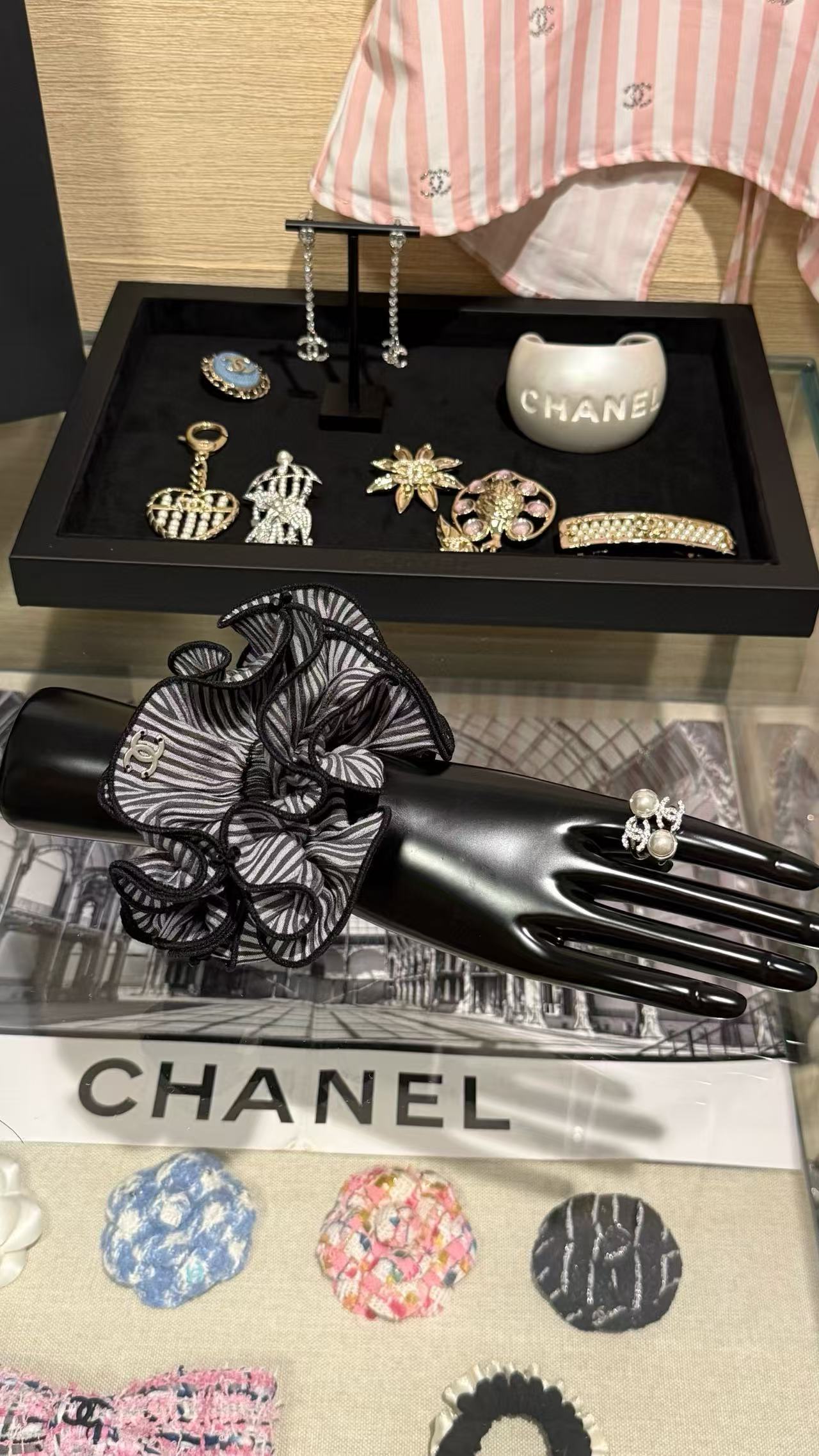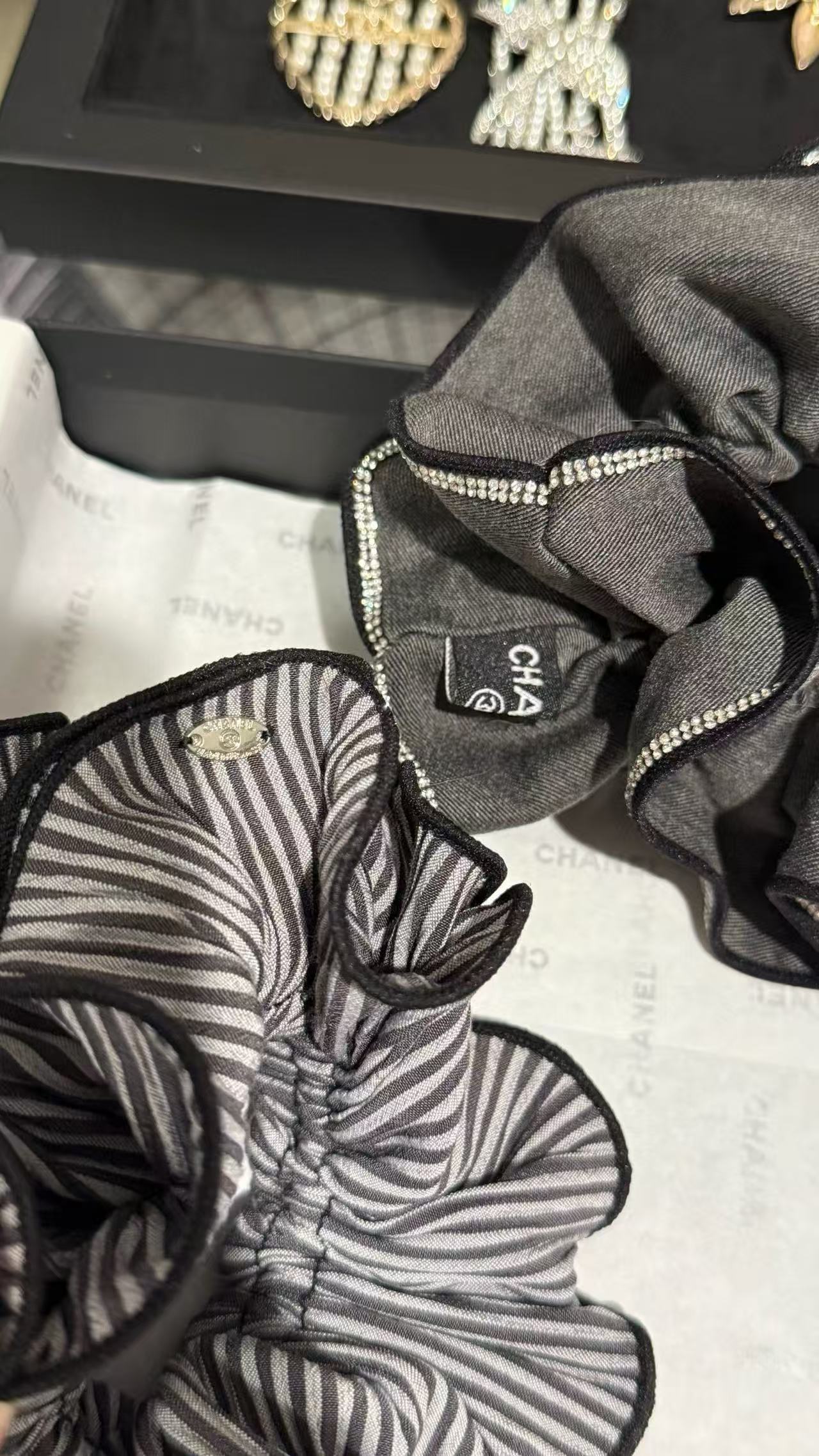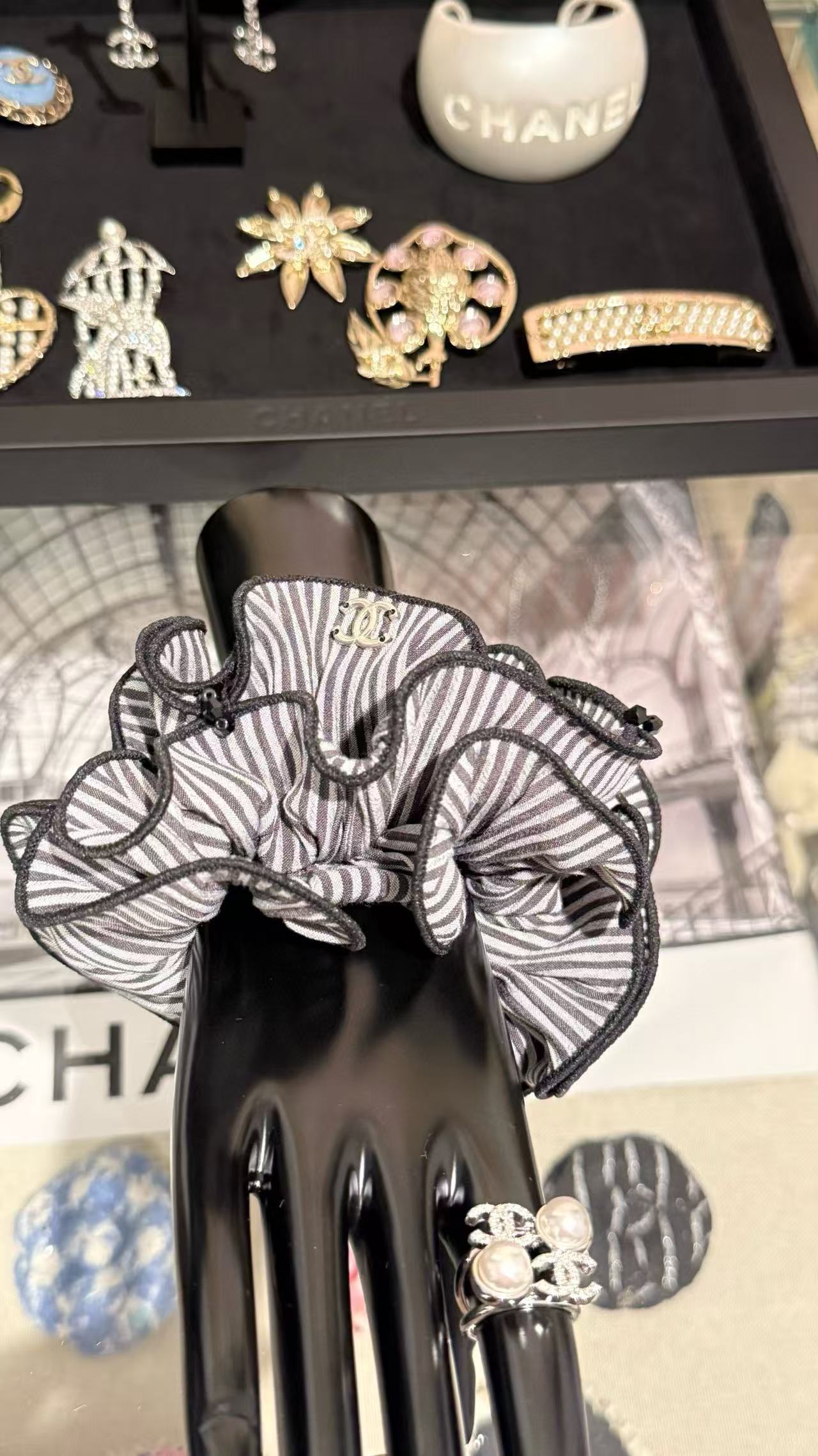 這系列髮圈以浪漫荷葉邊設計為亮點,柔美線條襯托 C家標誌性雙C logo,散發法式優雅氣息。