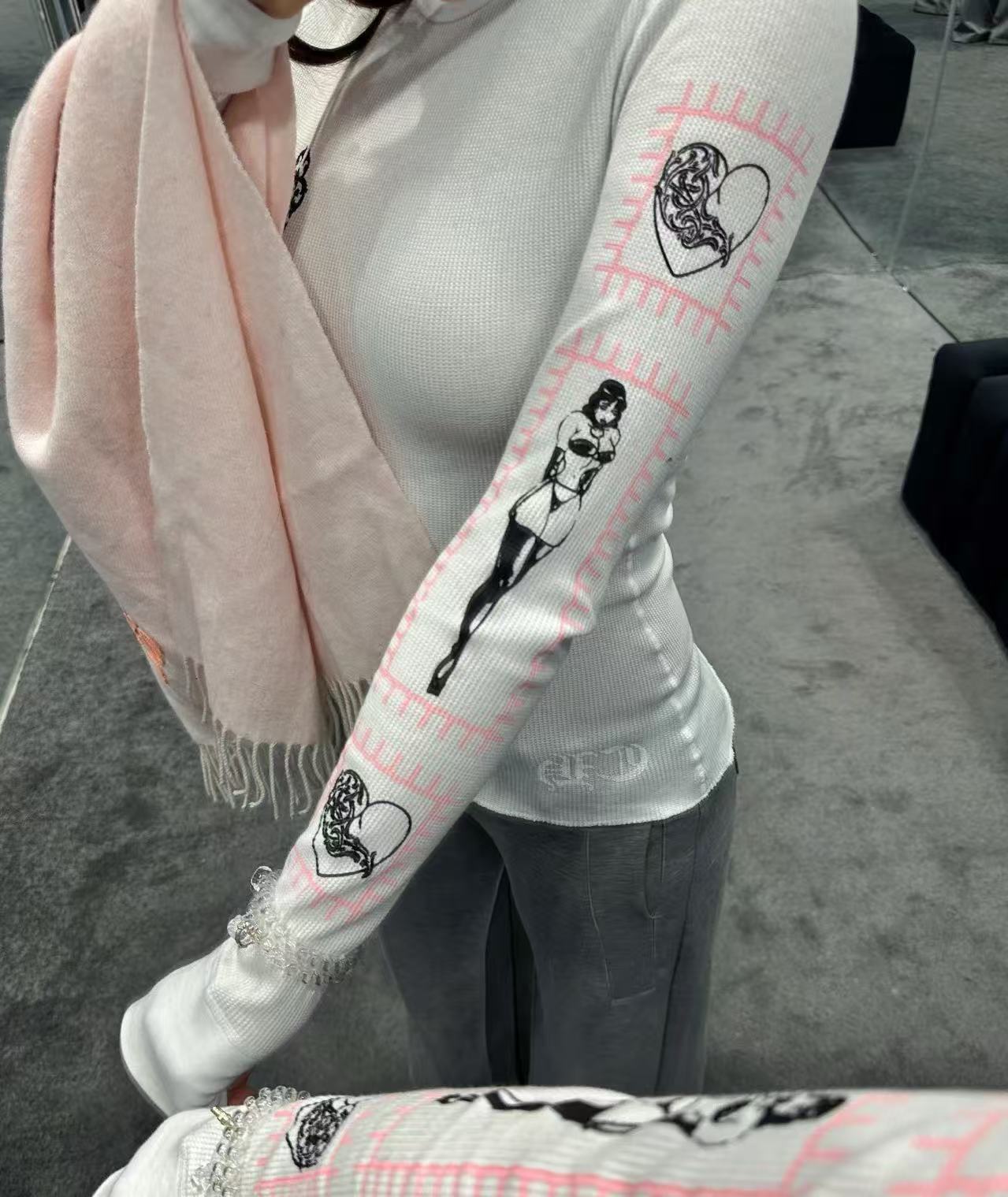 Ch克羅心 華夫格印製長袖