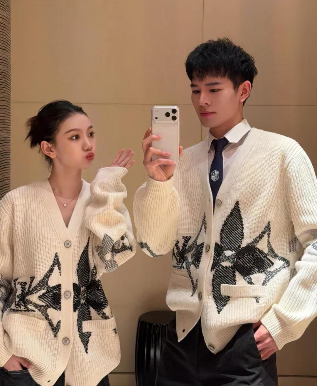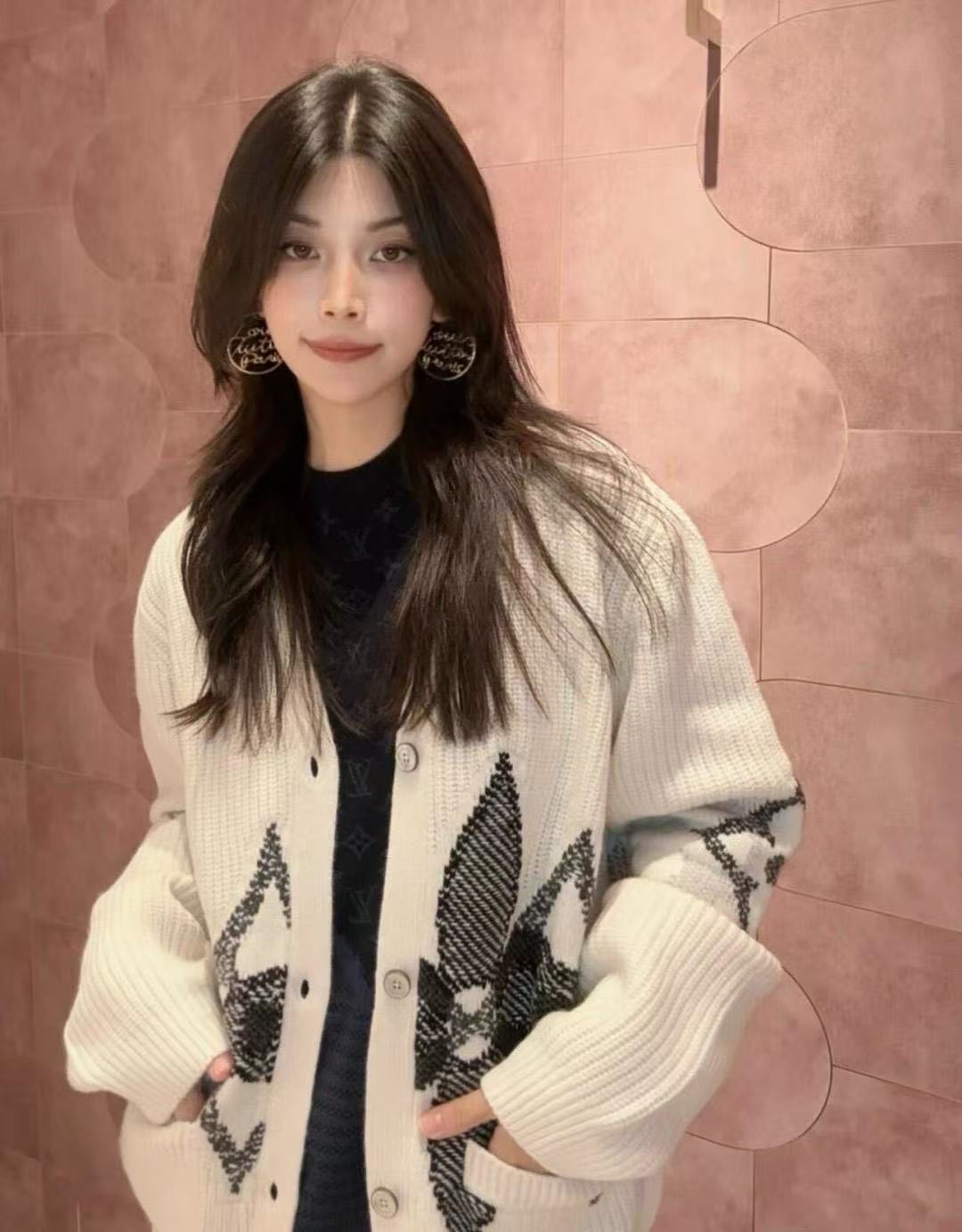2025秋冬 L家 老花提花針織開衫