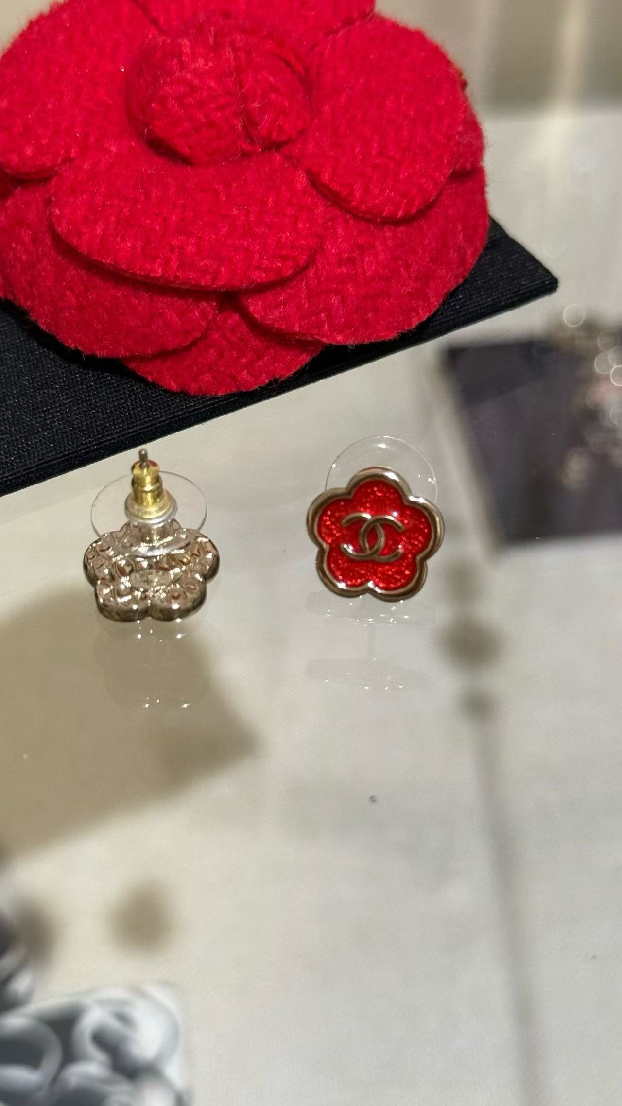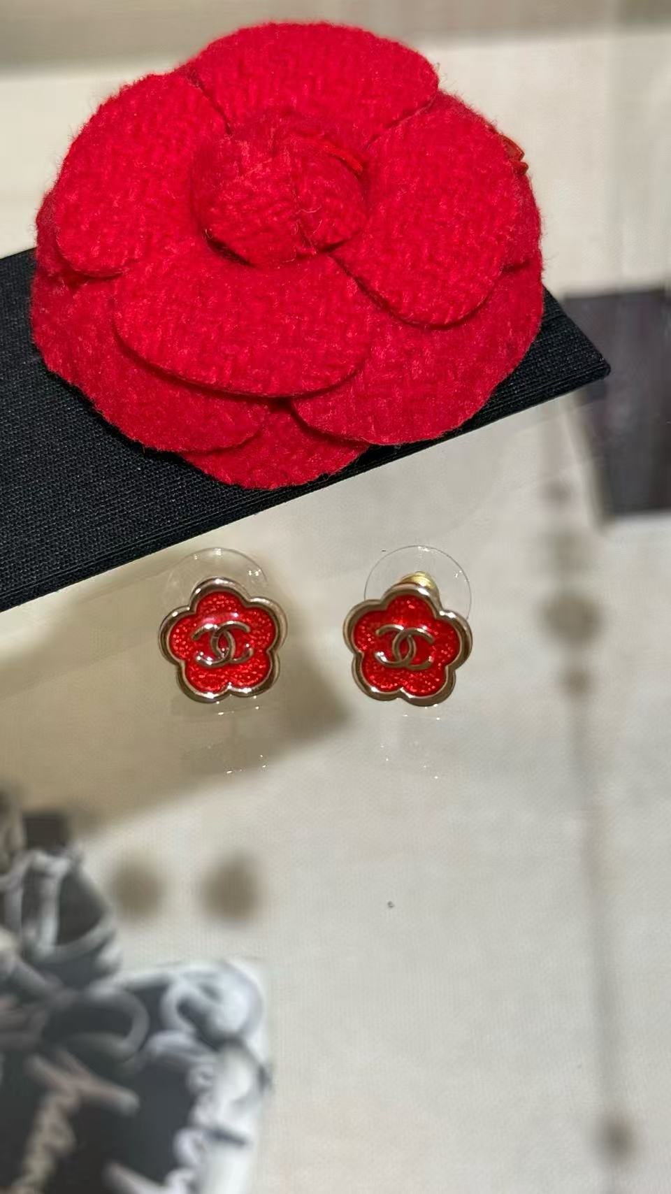 2025早秋 C家 红色珐琅滴釉山茶花耳環