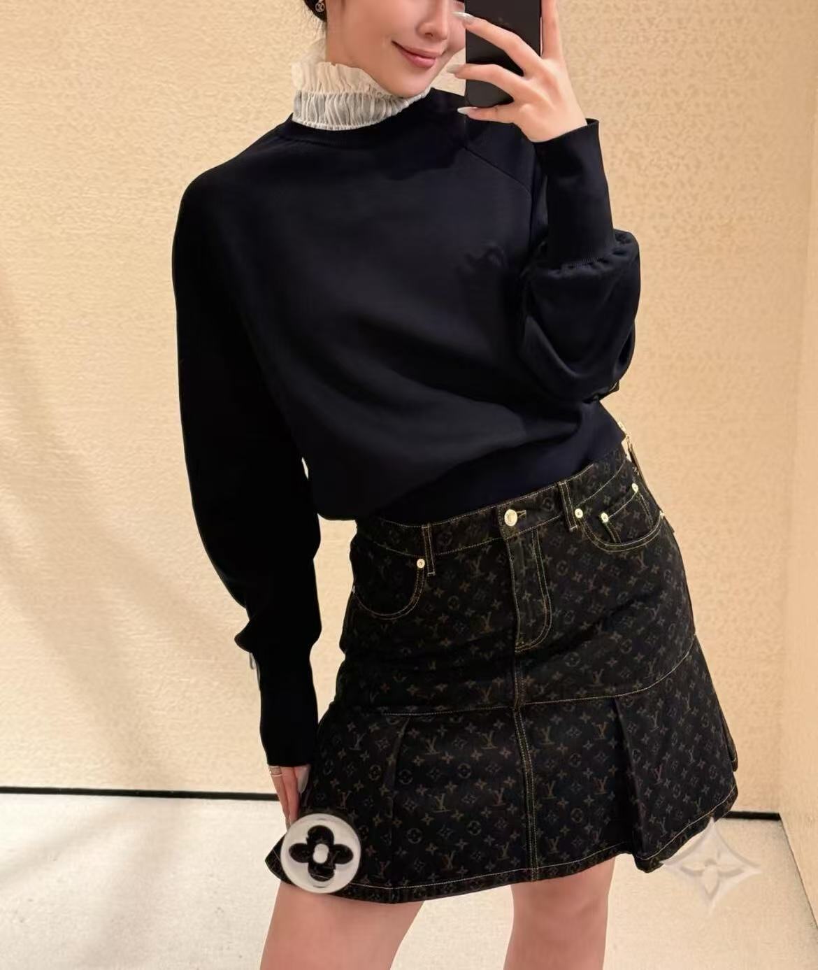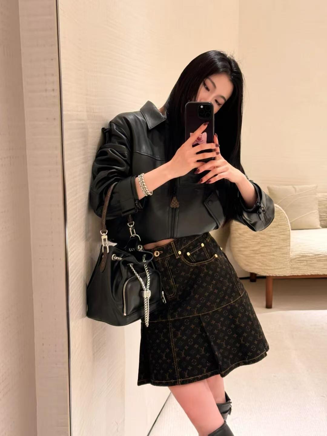 秋冬重磅特惠福利-L家 Monogram牛仔百褶半裙