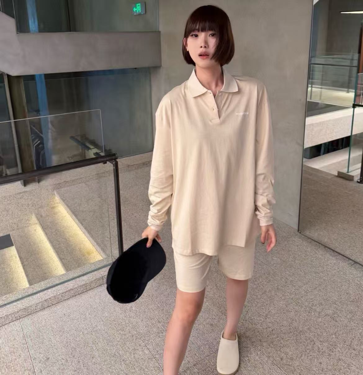 2025早秋新品 Miu家 字母刺繡長袖polo衫